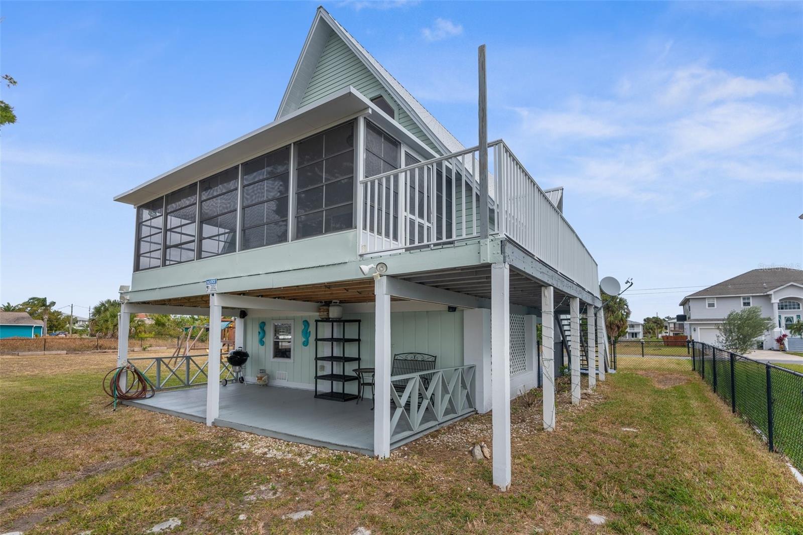 One or more photo(s) has been virtually staged. Price IMPROVED.. Affordable waterfront living! This 3 bedroom, 2 bath ''A'' frame stilt home is an absolute gem! The cottage is on a wide canal (the widest in the area) with over 60' of frontage with a dock in beautiful Hernando Beach. It has access to the Gulf via lift for boats, pontoons and jetskis under 25'ft max. It has 1440 sq. ft of living area and an additional closed-in porch (300+ sq ft) w/a.c overlooks the water, the western exposure allows for serene views. Below is a 26x10 deck with direct access to the dock, enclosed and fully fenced. possibilities for thisl space are endless and exceptionally priced—great investment property, NO HOA, NO CDD, NO rental restrictions. Updates include fresh exterior paint, quartz countertops, new backsplash, tankless electric water heater, water filtration system, roof over in 2014, mini splits throughout, full storage on main level. Great restaurants and entertainment just minutes away, close to major roadways US 19, & SR 50, Pine Island and Roger Park beaches, Weeki Wachee Mermaids @Bucaneer Bay! Major restaurants, shopping and local hospitals all within a couple miles. Approx. 45 mins from Tampa airport, about an hour to one of the best beaches in all of the US, Clearwater Beach.