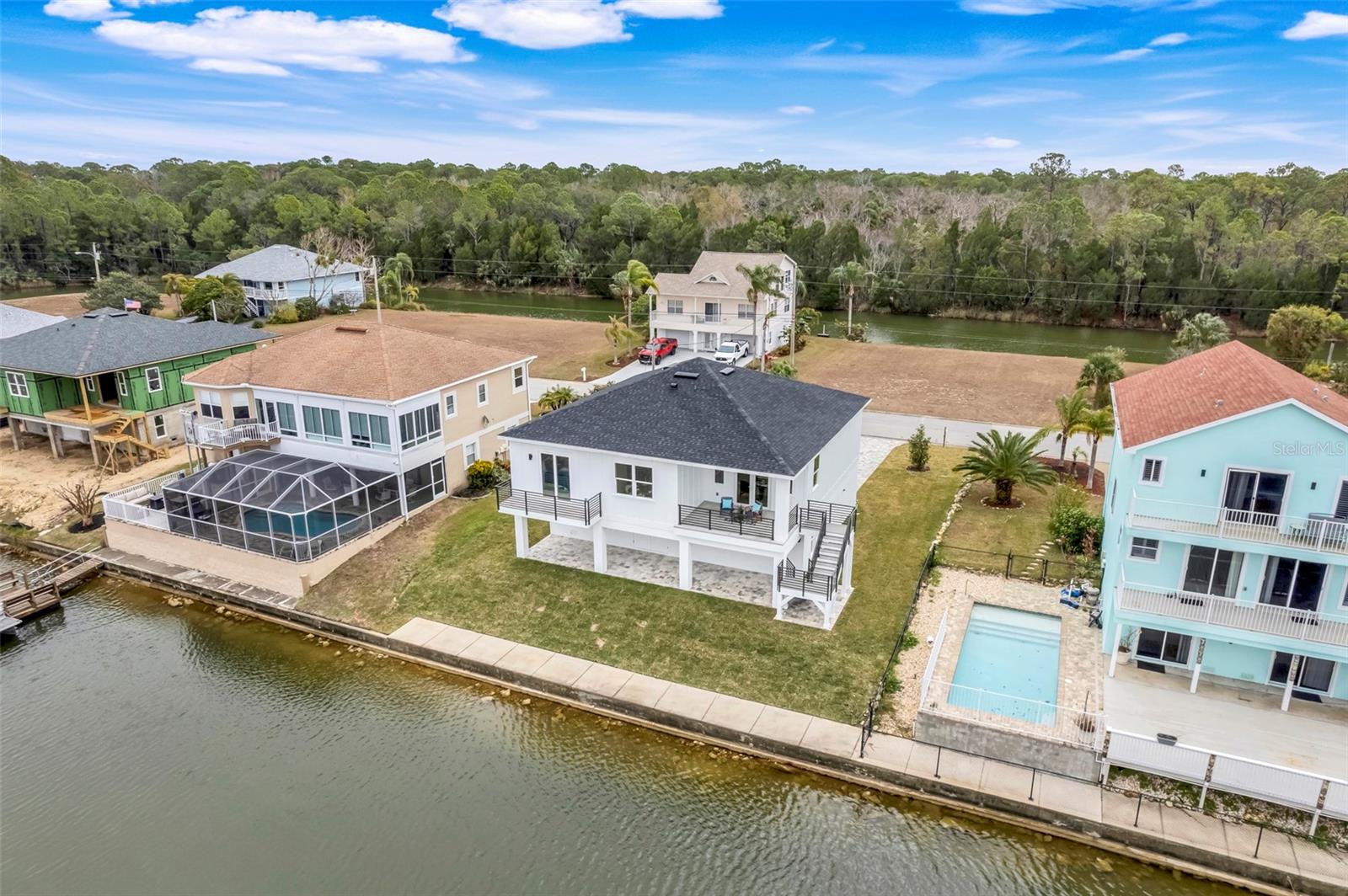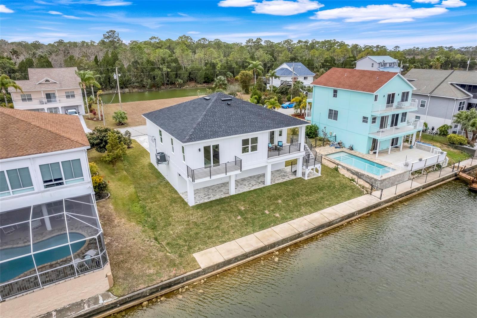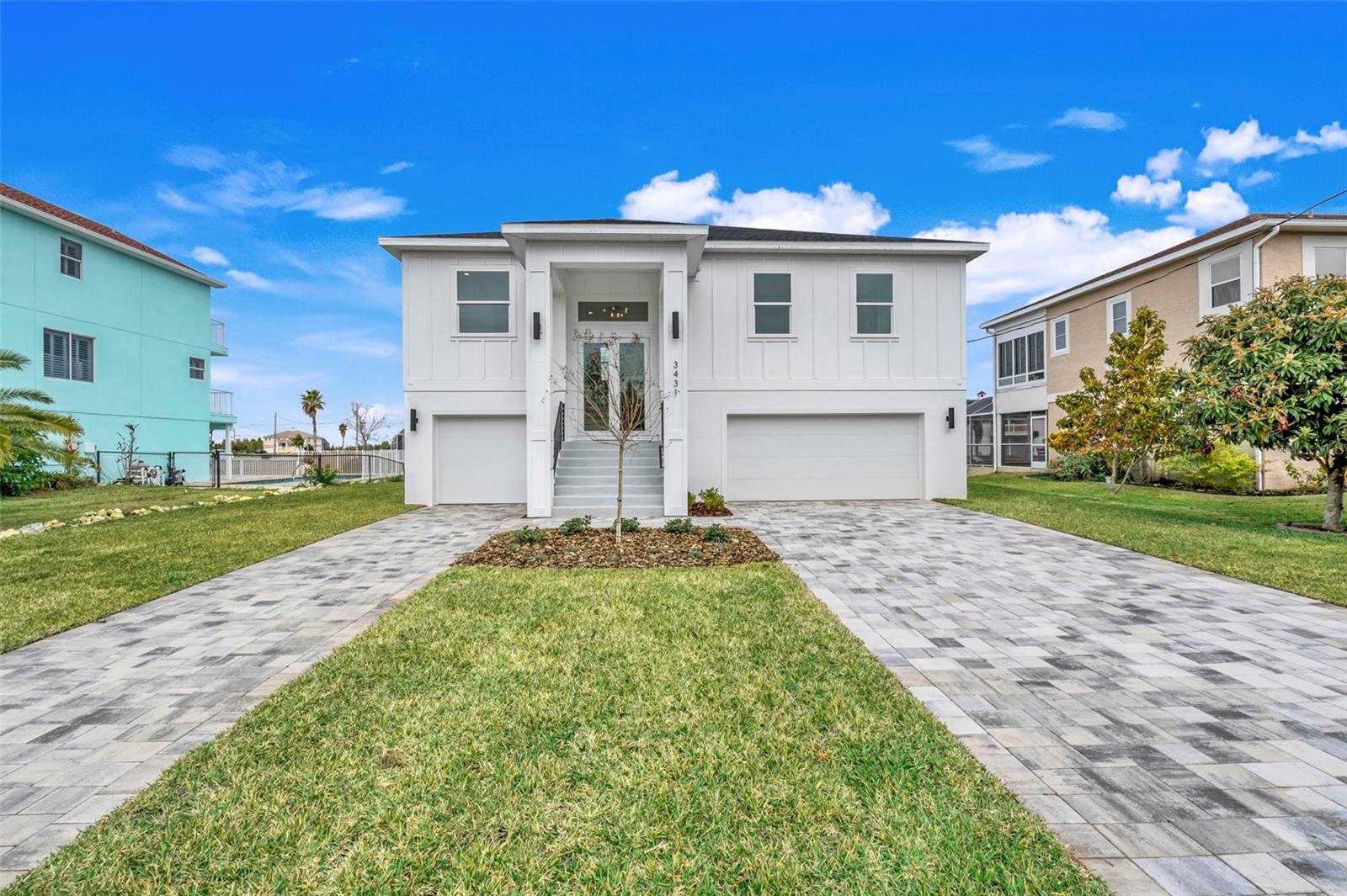 Welcome to 3431 Palometa Dr in the Hernando Beach South Community. As you approach this custom built home, you will immediately notice the beautiful paver double driveway providing ample parking space. When you enter through the front door, there are high tray ceilings in the living room area with French doors leading out onto a covered balcony. The kitchen has solid wood soft close custom cabinetry with neutral toned wood color and black fixtures. The countertops are white quartz and provide an area for guests to sit and visit. There is a nice dining area off the kitchen overlooking the canal in the backyard. Down the hall you will find a guest room with a walk-in closet and the guest bathroom with a Maxx Rubix shower/tub combo and quartz vanity countertops. The primary bedroom and bathroom are at the end of the hall. The primary bedroom has French doors leading to a private balcony on the north side of the home overlooking the canal below. The primary bathroom has a double vanity with quartz countertops, and a walk-in shower with custom tile walls and frameless glass shower. There are steps on the rear balcony leading down to a covered porch area with access to the garage. The garage offers a closet storage area and plenty of room for parking vehicles. Some things you may not notice: the designer fixtures and fans were specifically selected for their quality; the home was built so an elevator can be installed later, leading from the garage to the second floor; there is a tankless water heater, the second story is 2x6 framing with concrete walls first floor with flood vents; the home is prewired for security cameras; there is an irrigation system for the yard with a rain sensor and programmable controller; all the windows and exterior doors are impact rated, including the garage doors. This home is built not only to survive but lasts for years to come. You have access to the Gulf of Mexico and the nearby flats for swimming and fishing. The area is golf cart approved so you can cruise down the road to enjoy the local restaurants or shops.