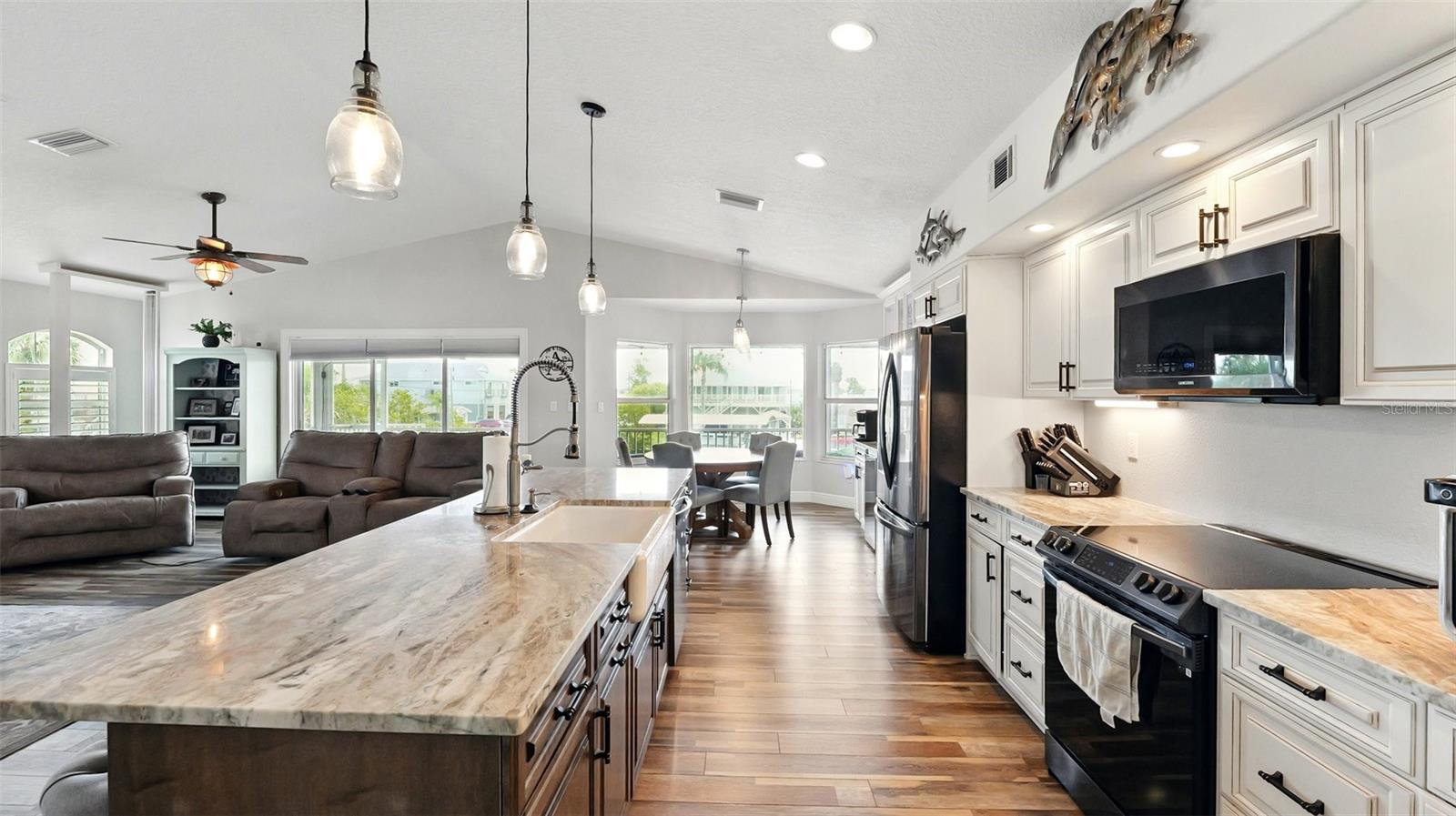 DIRECT GULF ACCESS HOME WITH STUNNING WATER VIEWS. This beautifully updated 3-bedroom, 2-bathroom home is situated on a saltwater canal that leads directly to the Gulf of Mexico, with no fixed bridges. The open-concept design ensures you can enjoy the water views from every corner of the house. Key features include a tube elevator for convenient access to all levels, an updated 'cooks' kitchen equipped with top-end appliances including a wine cooler, elegant lighting, and a large granite island. The master suite features a luxury bathroom with a freestanding pedestal tub, quartz top vanity, oversized shower, and a spacious walk-in closet. The second story covered porch is perfect for relaxing with a cold drink while watching dolphins play in the canal below. The home also includes a central vacuum system for easy maintenance and cleaning. The immense garage offers plenty of space for recreational watercraft, cars, and a workshop, with potential for additional bedrooms, bathrooms, or living areas. Hernando Beach is a quiet, isolated coastal hamlet focused on recreational fishing and boating, surrounded by the Gulf of Mexico and the Weeki Wachee Nature Preserve. It offers a cool coastal vibe with waterfront tiki bars, marinas, fine dining restaurants, seafood markets, and shops. Despite its seeming isolation, Hernando Beach is less than 10 minutes from US 19, providing access to Publix, shopping, chain restaurants, Walmart, Sam's Club, and four major hospitals. Additionally, it's just 1 hour from Tampa International Airport and 90 minutes from Disney. Buyers should verify all measurements and information. There will be a closing fee from the title company, even on a cash purchase. Clearly, Hernando Beach offers an amazing Gulf Coast Fishing Homes Lifestyle.
