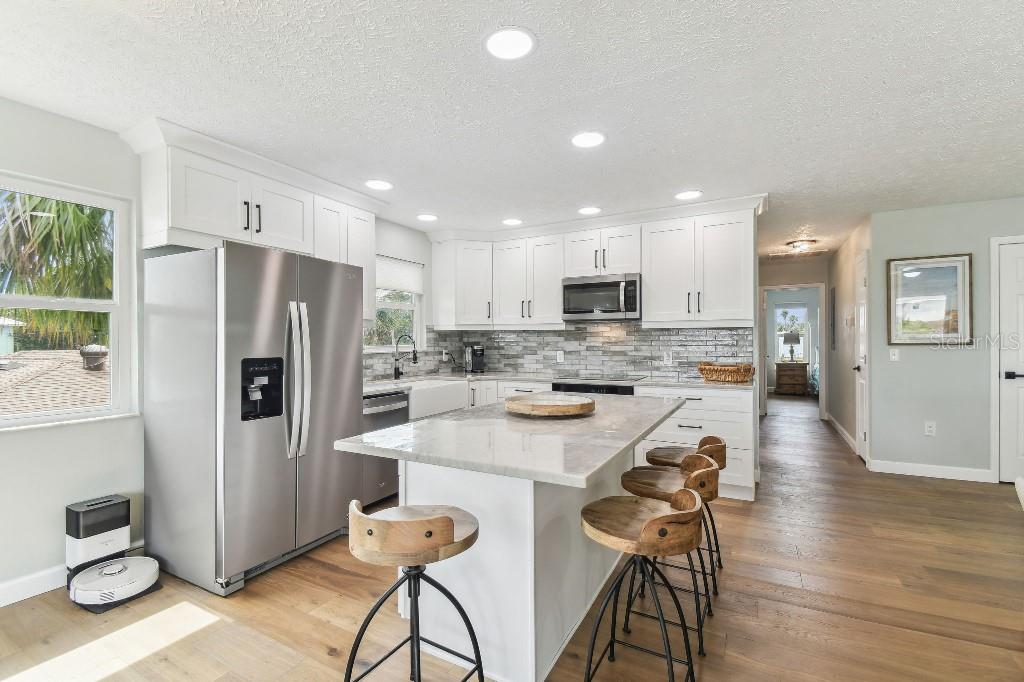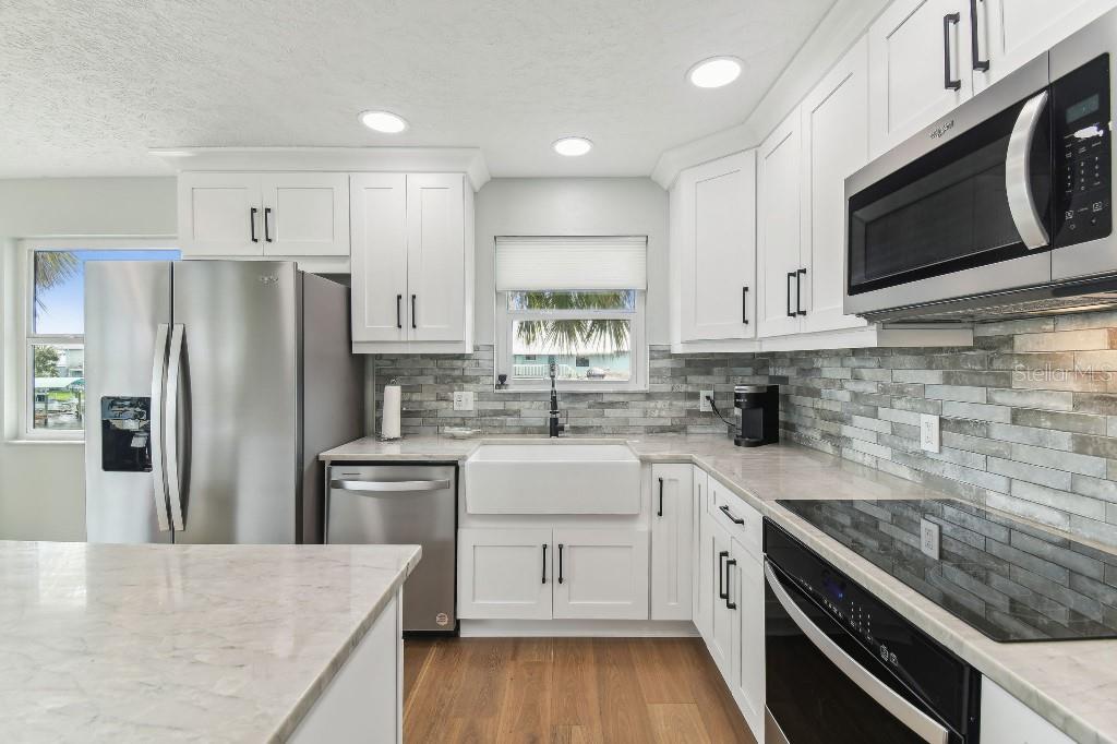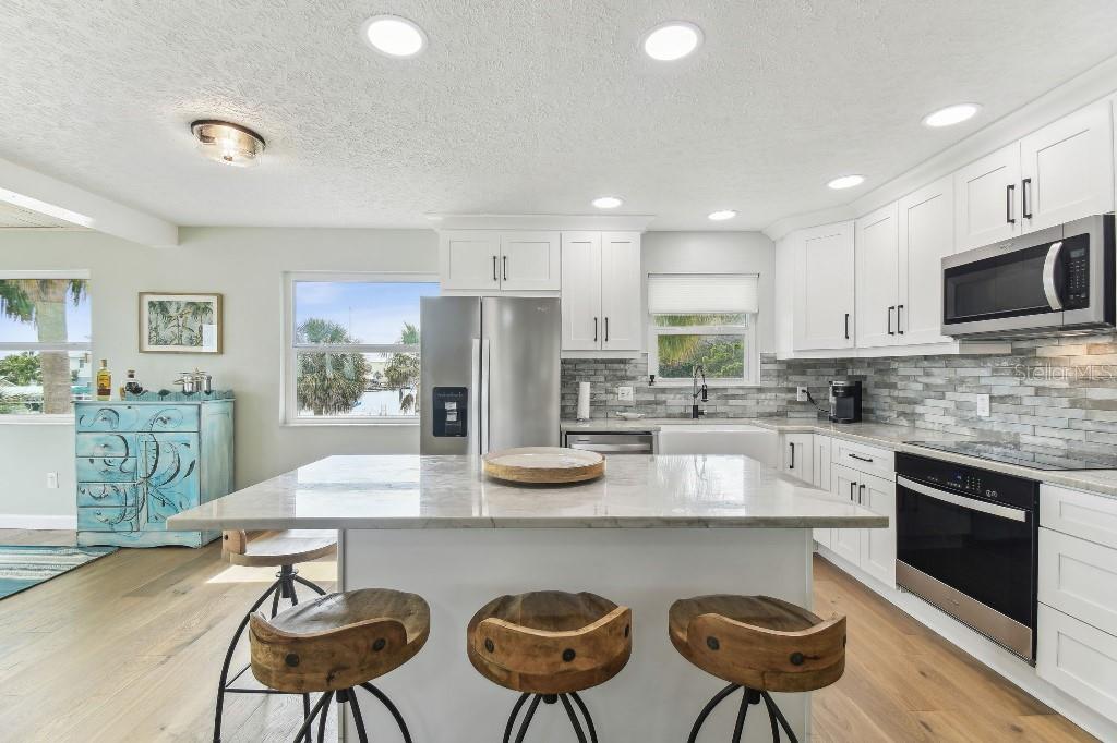 OWNER FINANCING AVAILABLE with 20 Perc. down and no flood insurance required. This two-story waterfront home has a million dollar view. Located on the north end of Hernando Beach, the home has been completely renovated. There are so many new features that it is hard to name them all including a new roof, new hurricane impact windows and 3 panel glass sliding doors, new air conditioning, new insulation and new on-demand hot water system. It has a new 200 square foot addition to the great room, new light shaker cabinets, new granite counters, new showers with new glass doors. It has all new stainless steel appliances and new washer and dryer. It also has new engineered hardwood floors, new paint, bug resistant siding, and an extra 600 square feet of space downstairs for a gym, a man cave or workshop. The outside features a new staircase and deck, a new seawall cap and a not so new floating dock with a new gangway. There are no deed restrictions and no HOA. Short and long term rentals are allowed. It is located on an extra wide canal with views of the Gulf and Mangroves. Schedule your tour, today!