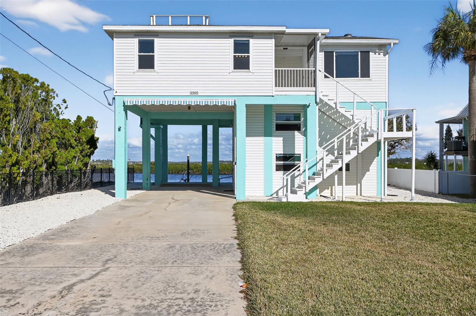 270 DEGREE SUNSET AND SUNRISE VIEWS OF THE GULF AND RIVER/MARSH FROM THE ROOFTOP CROWS NEST! YOU WILL NOT FIND A HOME WITH THIS VIEW FOR UNDER A MILLION DOLLARS! 2/2 open floorplan with AMAZING VIEWS FROM EVERY ROOM (except the laundry room) with an open-air porch in the front and screened-in porch in the back! Huge RV carport with 50-amp hookup and awning as well as an enormous enclosed workshop below this 16-foot-elevated home! Move in ready, everything has been done for you in the last 4 years including the seawall, 10K pound boat lift, dock, floating dock, IMPACT windows, HVAC, Kitchen including new appliances and custom granite, bathroom with enormous shower and granite counters, LVP flooring throughout, and a security system. Dolphins and manatees are often spotted! Just move in and enjoy a life most can only dream about.