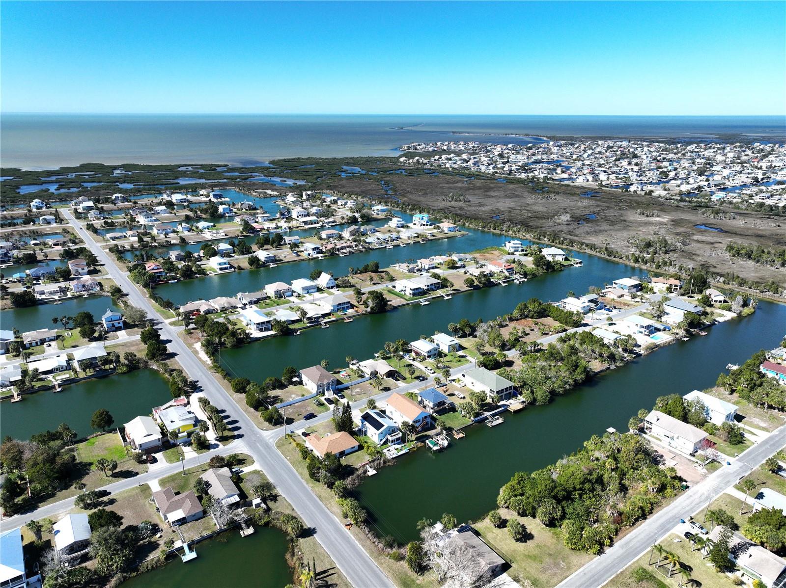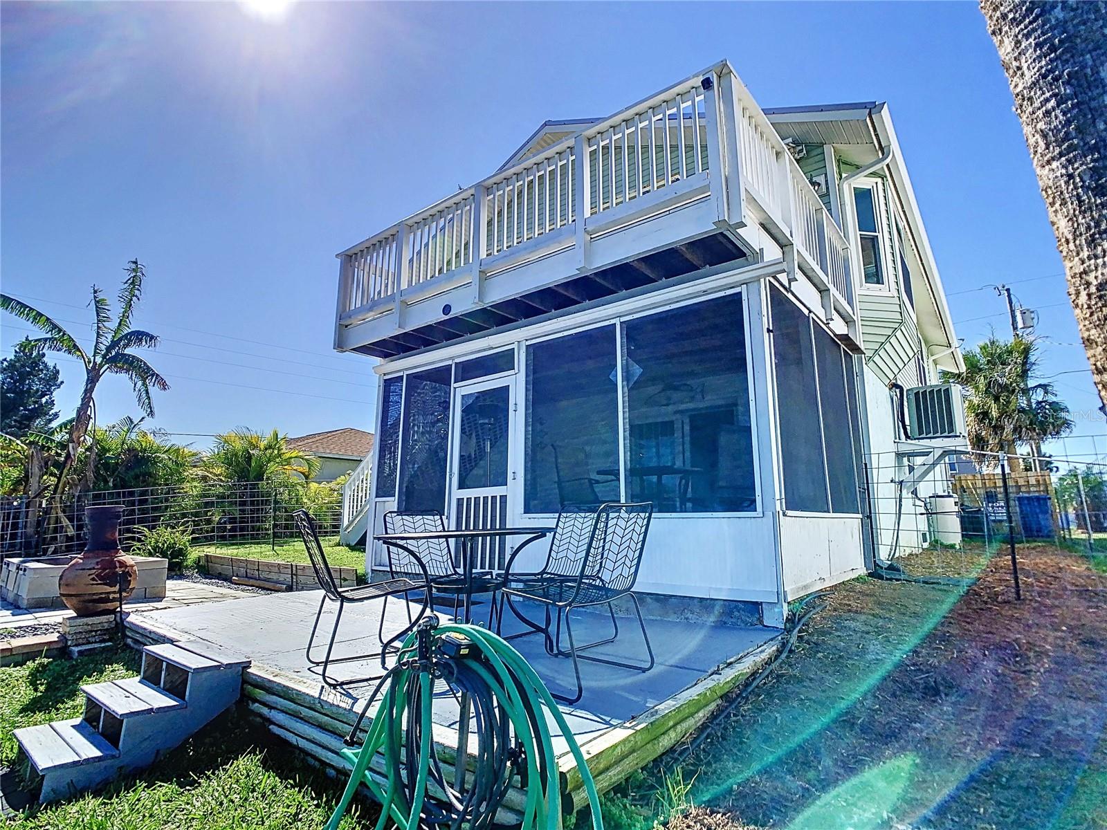 HUGE PRICE IMPROVEMENT!!! Welcome to your waterfront paradise! This stunning stilt-built home perfectly blends coastal charm and modern comfort, offering both breathtaking sunset and sunrise views. The first floor features a versatile, partially finished space that includes a 2-car garage, an office, a storage room, and a spacious living/bonus room with access to a screened-in patio—ideal for entertaining or relaxing. The durable epoxy concrete flooring adds both style and practicality. Upstairs, the main living area boasts a split floor plan with two bedrooms, two bathrooms, vaulted ceilings, tile flooring throughout, and ceiling fans. Each bedroom opens to a private balcony deck, showcasing serene views of the natural surroundings. The primary bedroom includes a walk-in closet and en-suite bathroom for added luxury. The kitchen is equipped with stainless-steel appliances, a cozy breakfast nook, and a separate dining area, creating a warm and inviting atmosphere for everyday living. Outside, enjoy direct access to the Gulf of Mexico via a freshwater canal, complete with a dock for fishing, kayaking, or canoeing adventures. Recent upgrades include energy-efficient windows (2019), a newer metal roof (2020), and solar panels (2022), which help maintain a negative electric bill. Additionally, the home offers an assumable mortgage of approximately $230,000 at a low 2.75% interest rate, adding even more value. Don't miss your chance to own this waterfront retreat and experience the best of Florida living. Schedule a showing today and start living your dream!
