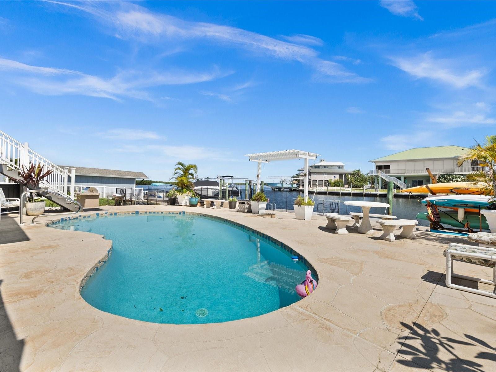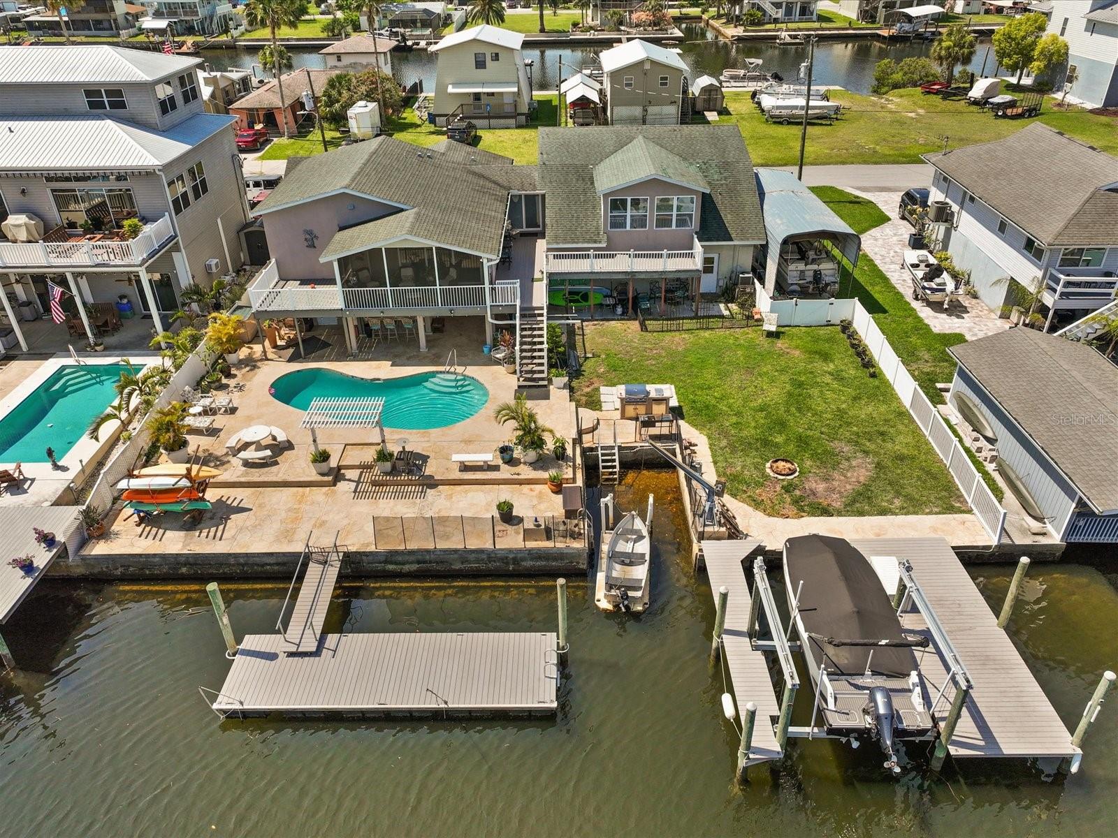 Seller may consider buyer concessions if made in an offer. Amazing opportunity to own a 7 bedroom and 5-bathroom multigenerational home with Gulf Views and Gulf Access in Hernando Beach FL! This unique multigenerational single family 7 bedrooms and 5-bathroom home with 4 separate units for different family members. Unit 1 is on the second floor with 2 bedrooms and 2 bathrooms with full kitchen with granite island/countertops and stainless-steel appliances. Additional features include wood flooring, updated bathrooms, screened porch with Gulf views and spa tub in the master bathroom. Unit 2 is on the second floor with 2 bedrooms and 1 bathroom with a full kitchen and living room with Gulf Views. Unit 3 is on the ground floor with 2 bedrooms and 1 bathroom with a kitchenette. Unit 4 is on the ground floor with 1 bedroom and 1 bathroom with kitchenette. This unique design allows family members to live their own lives within this communal property. An oversized 1 gar garage, under the home seating area and second story porch with Gulf of Mexico sunset views. The backyard has 93 feet on a saltwater canal that leads directly to the Gulf of Mexico without any fixed bridges. For those family members that love water. The property has a 10,000-pound boat lift, Duratek fixed dock, kayak launch and Duratek huge floating dock with mooring whips as well as a large inground gunnite pool with oversized stamped concrete deck, and large grass area for the family members with fur. Cover parking spot for your boat or RV. This home is located in the Direct Gulf Access section of Hernando Beach meaning the canals behind this home are saltwater, gracefully rising and falling with the tides. This means that you enjoy seamless navigation directly to the Gulf of Mexico without encountering fixed bridges or any obstructive challenges. The convenience and freedom of unimpeded boating make this section highly sought-after for those who crave an optimal boating experience. This section of Hernando Beach does not have an HOA meaning no deed restrictions only county does apply. So, you can keep boats, trailers, and commercial vehicles in your yard or driveway. You can have 8-foot-high privacy fences and use your home as a short-term rental if you want. This section is the most popular place to live in Hernando beach because it is the best for boating. Welcome to Hernando Beach, a hidden gem nestled along the Gulf of Mexico, where the heart of the community beats to the rhythm of recreational fishing and boating. Tucked away down a coastal 2-lane highway with access points only from the North and South, Hernando Beach is a quiet and isolated coastal hamlet offering a unique blend of tranquility and vibrant coastal living. While the name might suggest sandy shores, Hernando Beach surprises with its lack of a traditional beach, compensating instead with a cool coastal vibe that permeates through waterfront tiki bars, marinas, fine dining restaurants, seafood markets, and charming shops. The community is a haven for those seeking a waterfront lifestyle, with single-family homes lining saltwater direct Gulf Access canals or freshwater indirect Gulf Access canals. In essence, Hernando Beach beckons those who yearn for an extraordinary Gulf Coast Fishing Homes Lifestyle, where the rhythms of the sea and the charms of coastal living converge in perfect harmony. Welcome to a community where isolation feels like a luxury, and the beauty of the Gulf Coast unfolds in every tide and sunset.