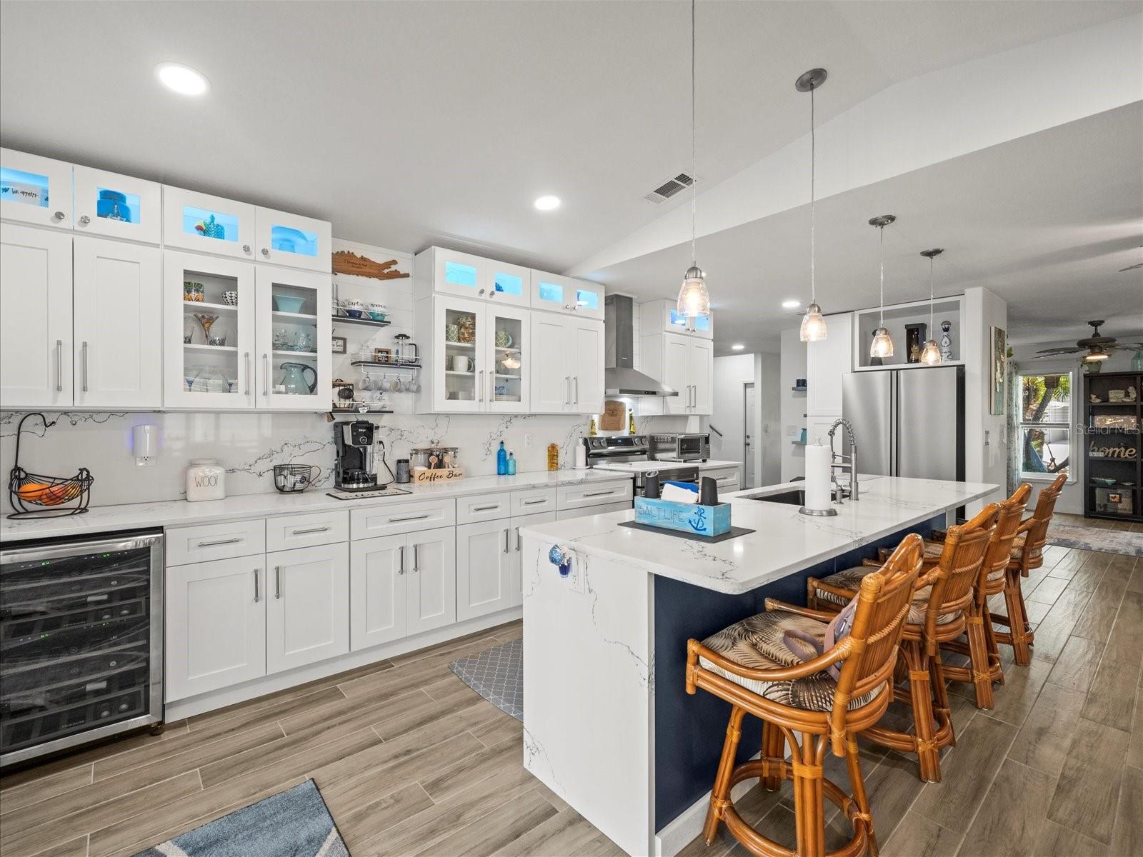 This Home is stunning and is a true 2-story Home. The Kitchen is gorgeous and features Farmhouse style Wood cabinets with accent lighting, Quartz countertops and glass door fronts to display your best dishes, a large Island Workstation with Breakfast Bar, New Stainless Steel Appliances , a Wine Cooler and Vaulted Ceilings. On the main Living area, there's a Formal Living Room, a Guest Bedroom and a Family Room that could be used as a 3rd Bedroom and two Bathrooms. The Master Suite is situated upstairs for added privacy and features dual sinks, a garden tub, walk-in shower, make-up vanity, walk-in closet and a private balcony. The lower level patio is screened and provides additional space to relax in the Hot Tub. Pavers adorn the floor. Electric has been updated to current code and the home has impact windows and a new water heater. The yard is well manicured and beautifully landscaped. Relax on the water-side patio or fish from the floating dock. For your water toys, there's a jet-ski dock and a hydro-hoist boat lift. Direct access to the Gulf. Hernando Beach is a laid back community on Florida's Nature Coast and offers several one of a kind Restaurants and live Entertainment. Close to Shopping and less than an hour to Tampa. You'll be proud to make this Home yours.