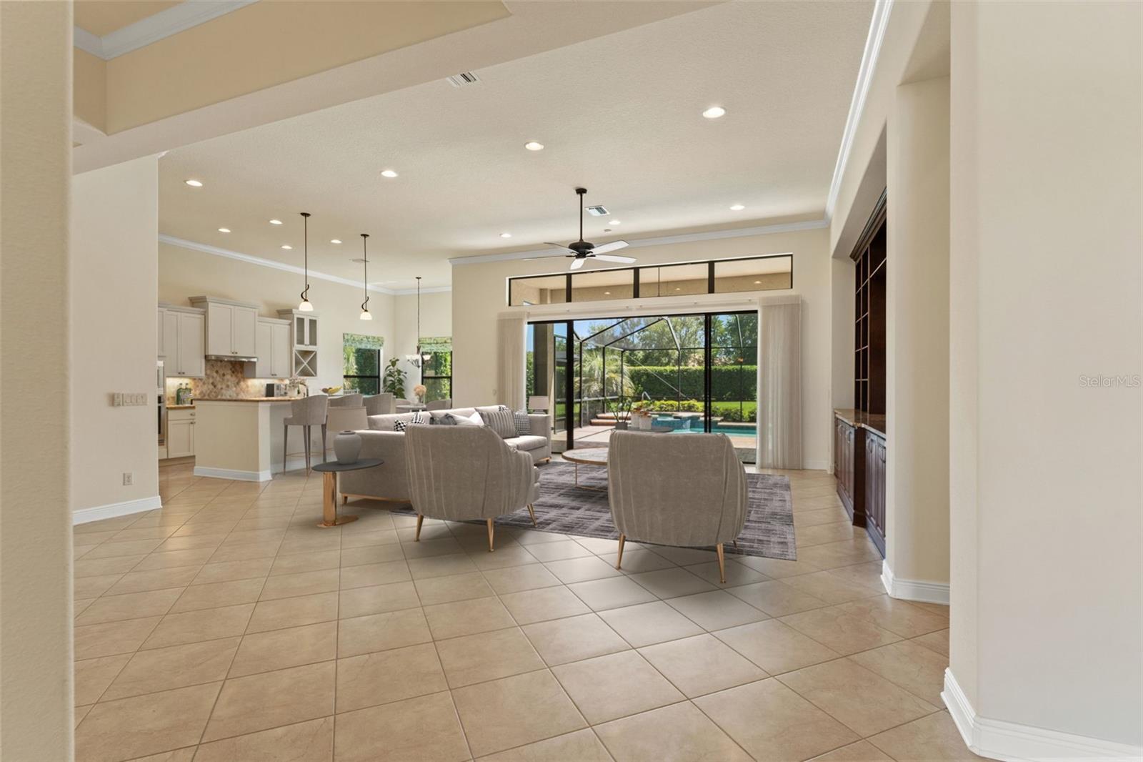 Why wait to build when you can move right into this stunning, fully customized Charles model located in the prestigious, gated community of Terra Vista at Citrus Hills? This 3-bedroom, 2.5-bath home with a dedicated office/den offers the perfect balance of elegance, functionality, and value—delivering high-end upgrades you simply won’t find in a base model. From the moment you arrive, you’ll notice thoughtful enhancements like crown molding, plantation shutters, designer lighting, and custom window treatments throughout. The gourmet kitchen features quartz countertops, premium stainless steel appliances, a wine fridge, and rich custom cabinetry, all opening to a spacious great room and formal dining area ideal for entertaining. The luxurious primary suite provides private access to the lanai, a beautifully appointed en-suite bath, and an oversized walk-in closet complete with a custom storage system. Step outside and discover your private backyard oasis—featuring a sparkling saltwater pool and spa with solar heating, outdoor kitchen, and a covered lanai surrounded by lush professional landscaping and lighting for a serene, resort-style retreat. Additional upgrades include a tankless on-demand water heater, a motorized garage screen, epoxy-coated garage floors, a Murphy bed, enhanced insulation, a solar shield roof barrier, and an upgraded AC system with UV filtration for comfort and efficiency year-round. This home is situated in the highly desirable Skyview Villas section of Terra Vista, offering true maintenance-free living for a simplified lifestyle. As a resident, you’ll enjoy access to world-class amenities including multiple fitness centers, a full-service spa, resort-style pools, restaurants, tennis and pickleball courts, golf, social events, and more. With all the major upgrades already done—and at a price well below what it would cost to build today—this move-in-ready home is the smart, stylish alternative to new construction. Experience the very best of Florida living without the wait.