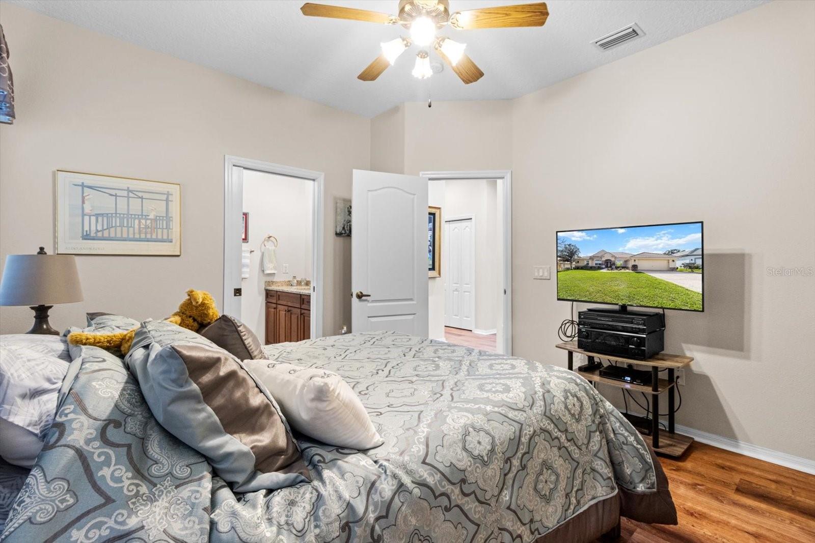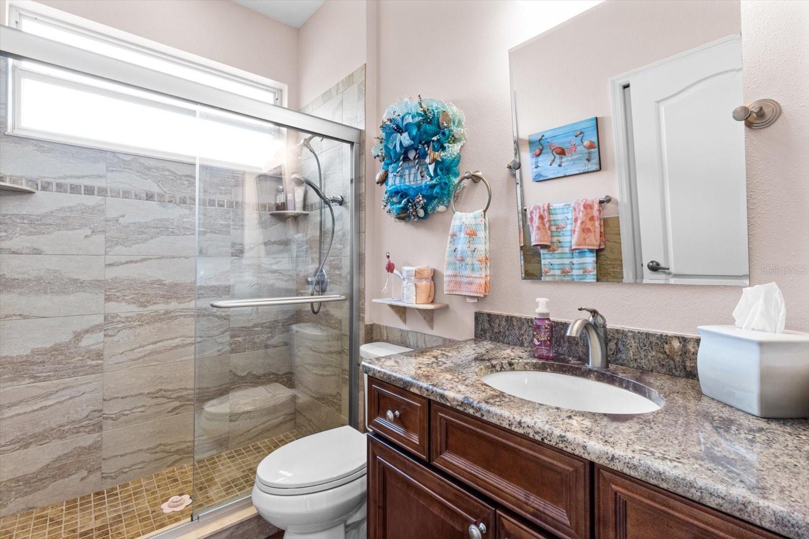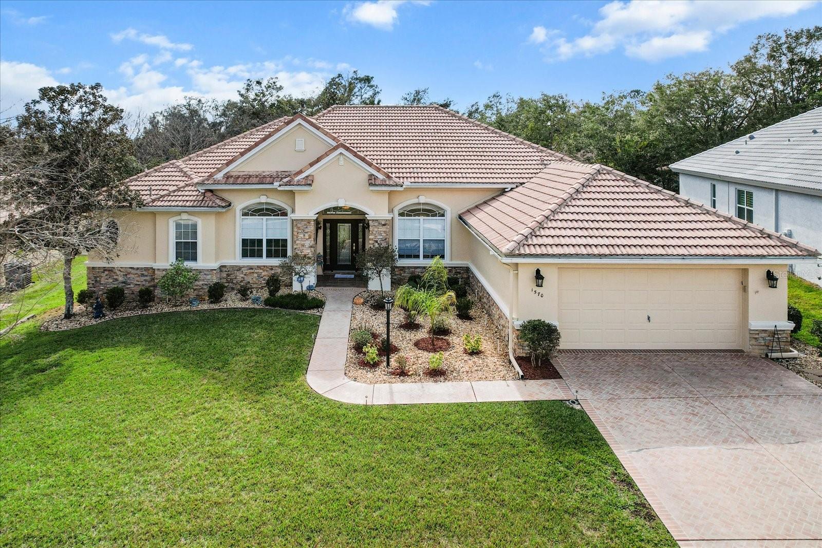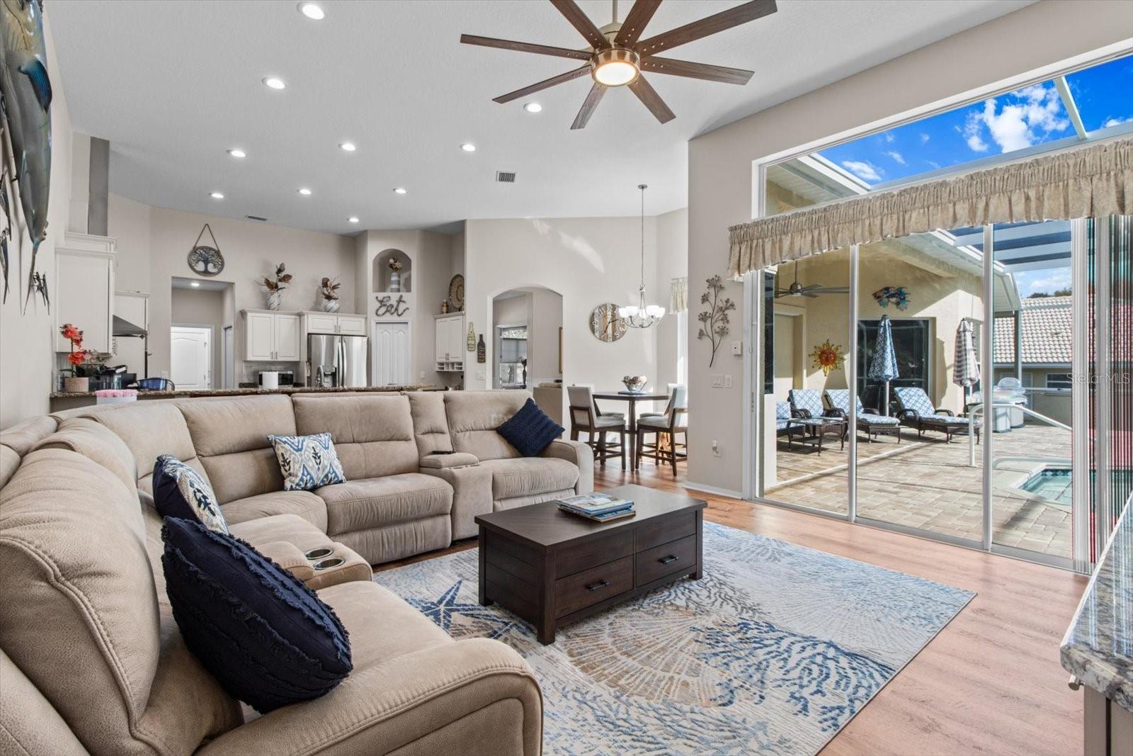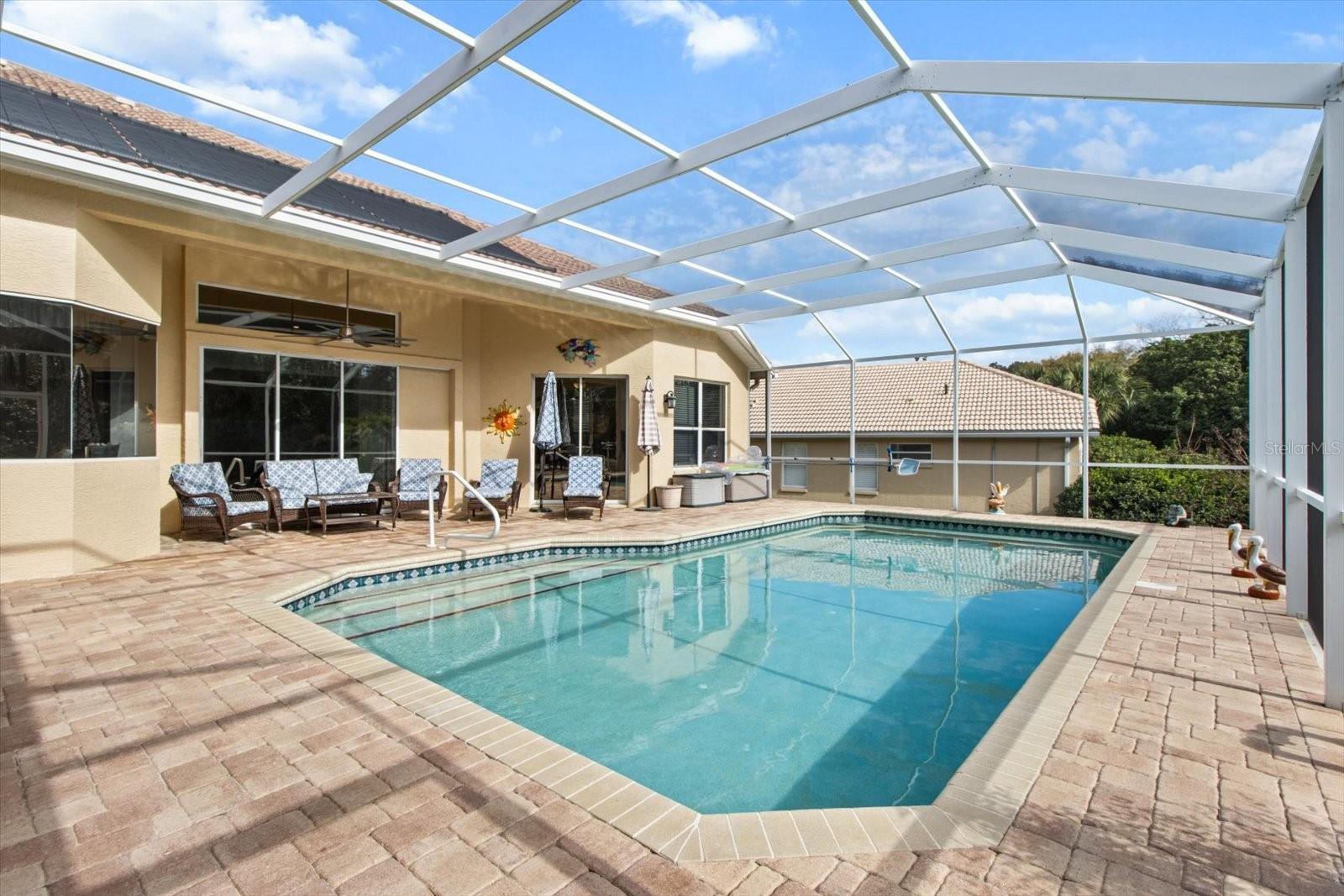 This stunning 4-bedroom plus den, 3.5-bath POOL home with a 2.5-stall garage offers 3,061 sq. ft. of updated living space in the Exclusively Gated GOLF Community of Terra Vista. Designed with a split floor plan, this home provides a spacious and functional layout for both living and entertaining. Upon entry, the formal living and dining areas set an elegant tone, while the great room, just off the kitchen, serves as a comfortable gathering space for family and friends. Guests will appreciate the ensuite bedroom, while the convenient POOL bath adds ease and functionality. A generously sized bedroom off the POOL offers flexible options, easily transforming into a game room or additional entertainment space. The entire home features luxury vinyl plank flooring and tile throughout, for a low-maintenance aesthetic. The kitchen highlights new granite countertops, a 2023 French door refrigerator, fresh cabinetry, and a stylish modern backsplash. The family room is set up for entertaining, with a newly designed entertainment center w/ granite countertop. The master suite features oversized double walk-in closets, a luxurious master bath with new granite countertops, a free-standing tub, and a newly renovated shower. The laundry room has been completely revamped with new cabinets, sink, countertops, and a new washer and dryer (September 2024). For added comfort, the home includes a 5-ton HVAC system and a tankless water heater. Step outside to the pavered lanai, where you'll enjoy a Large POOL, gas line hook-up for an outdoor BBQ, and plenty of yard space for play. New solar panels, installed in 2023, keep the POOL comfortable. Additional updates include new ceiling fans, an ADT alarm system, remodeled bathrooms, and a mini-split in the garage for year-round comfort. Located in the gated Terra Vista GOLF community, this home offers a lifestyle of luxury and convenience, with top-tier amenities and a peaceful, sought-after setting. A golf cart and most furnishings are available for purchase separately.