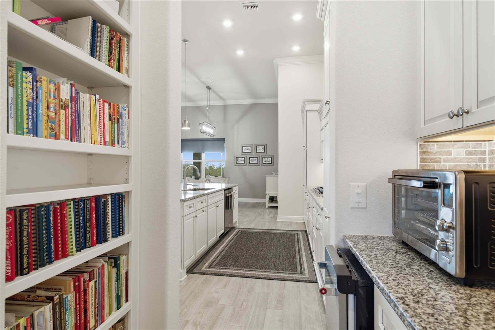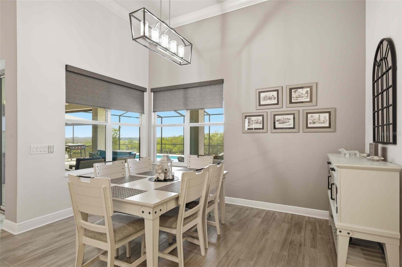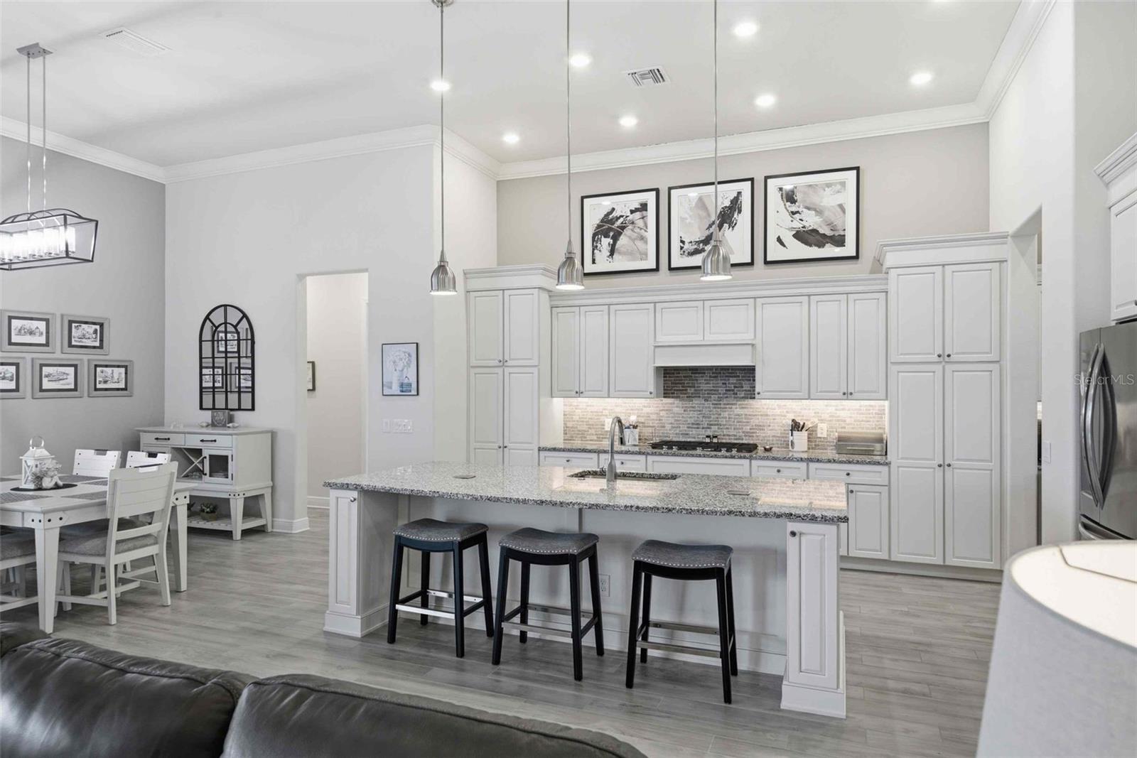 Welcome to an extraordinary residence in Terra Vista’s exclusive Roberts Ridge, where luxury, privacy, and sweeping golf course views define everyday living. This meticulously designed estate spans over 4,000 square feet, delivering a seamless blend of elegance and functionality. From the moment you arrive, the home’s architectural presence stands out—enhanced by stacked stone accents and a decorative architectural concrete driveway that sets the tone for what lies beyond. Inside, soaring ceilings and expansive living spaces create an open, airy feel, anchored by a stunning chef’s kitchen featuring quartz countertops, custom cabinetry, an oversized island, and a dedicated coffee bar/butler’s pantry. A large walk-in pantry and additional custom cabinetry ensure exceptional storage, while thoughtful design touches elevate every corner. The main-level owner’s suite offers a private retreat, while the upper level provides two spacious bedrooms, each with its own ensuite bath, ideal for guests seeking comfort and privacy. The fourth bedroom suite, also on the main level, offers dual sinks, a large walk in shower and large california closet. A formal dining room, spacious den and a dedicated office with a half bath make this home the perfect mix of effortless entertaning and ease for working from home. Step outisde to your personal esort style oasis. The expansive screened lanai features an outdoor kitchen and inground pool overlooking sweeping golf course views.