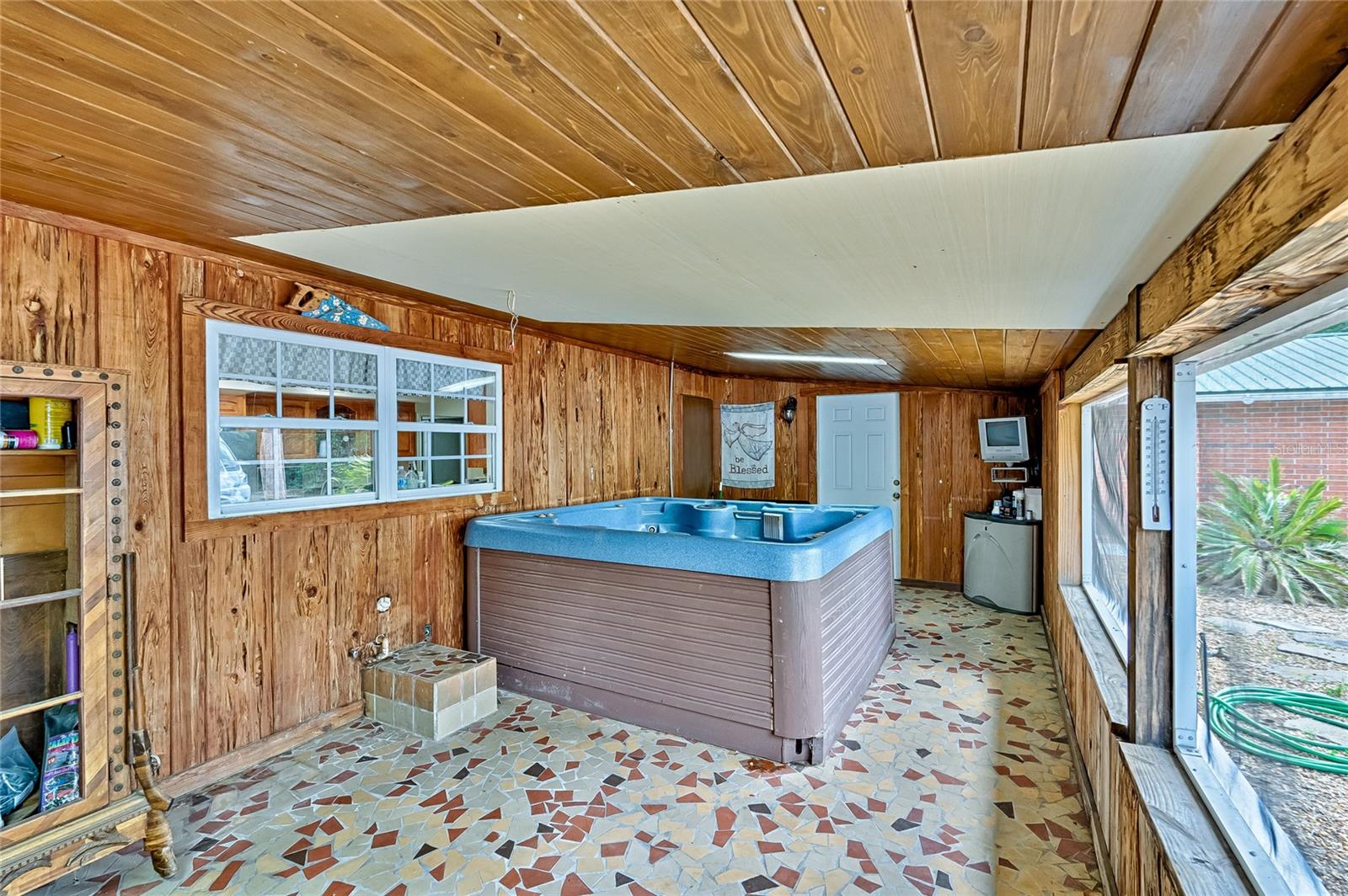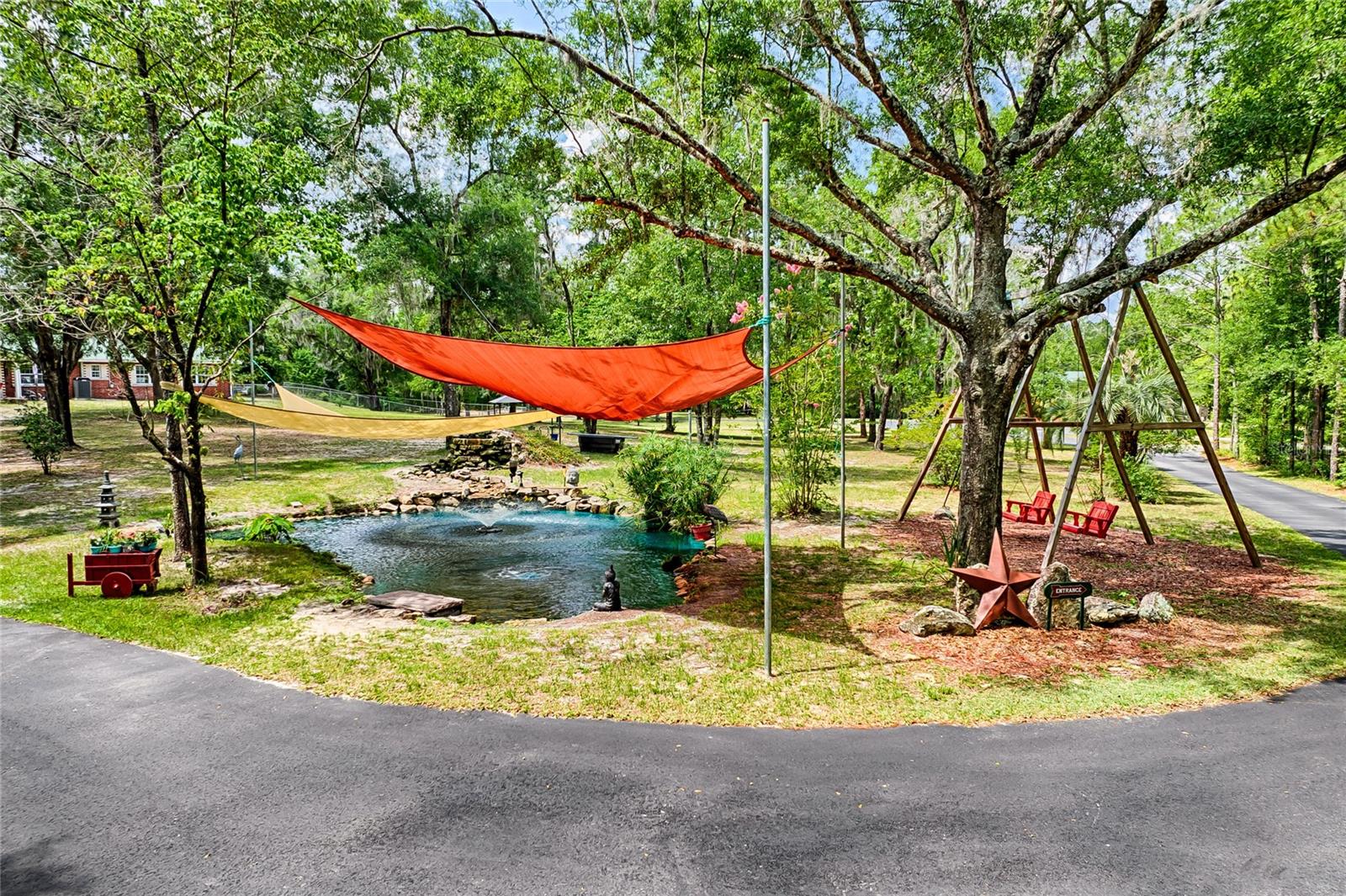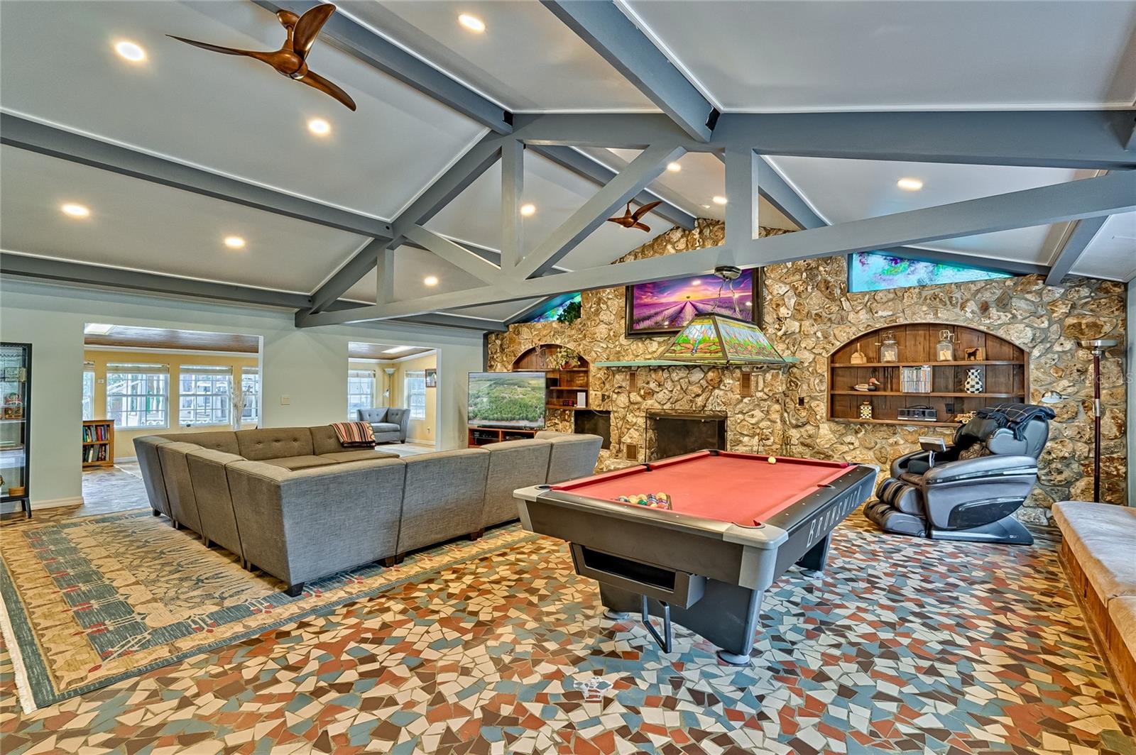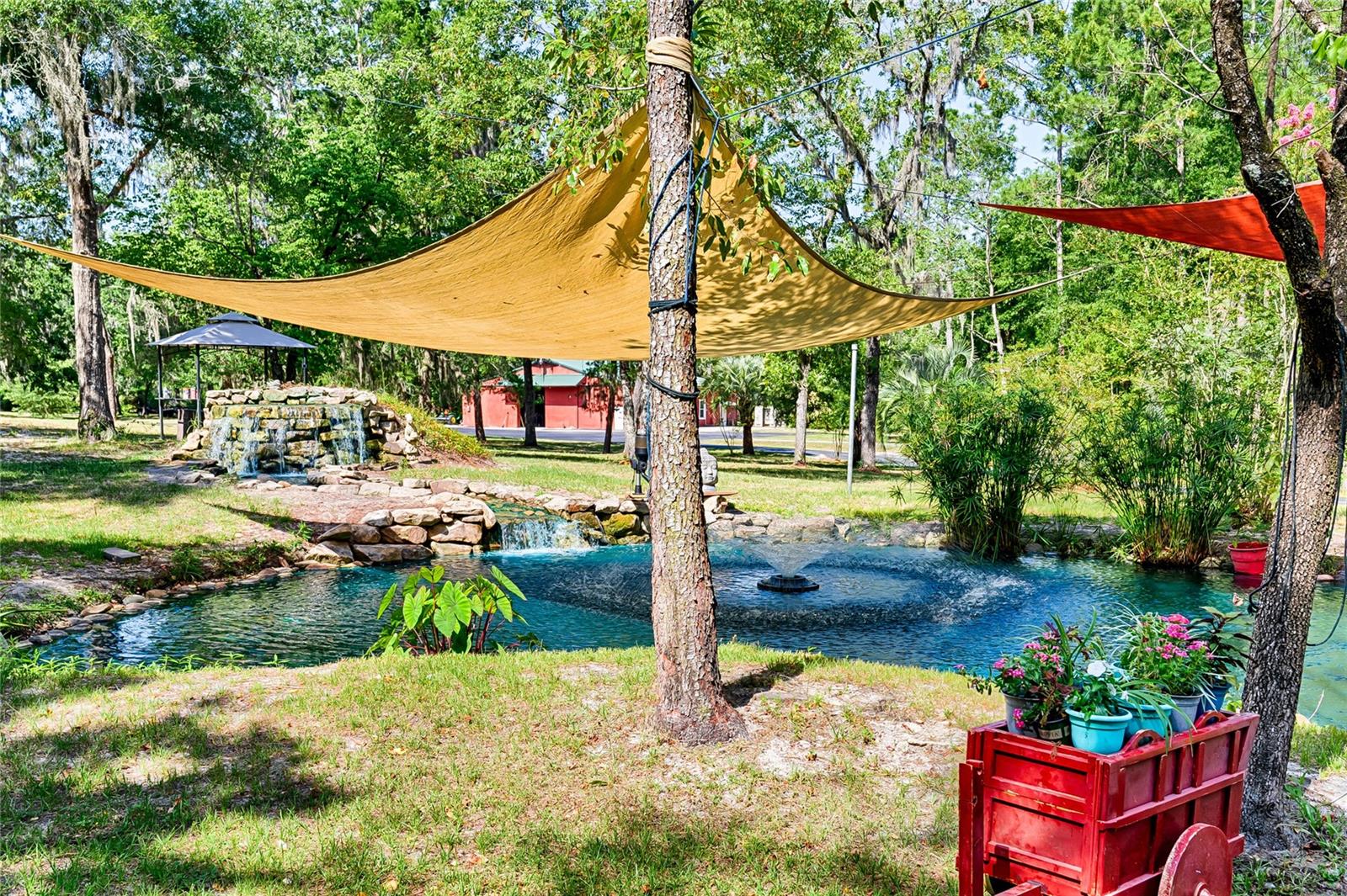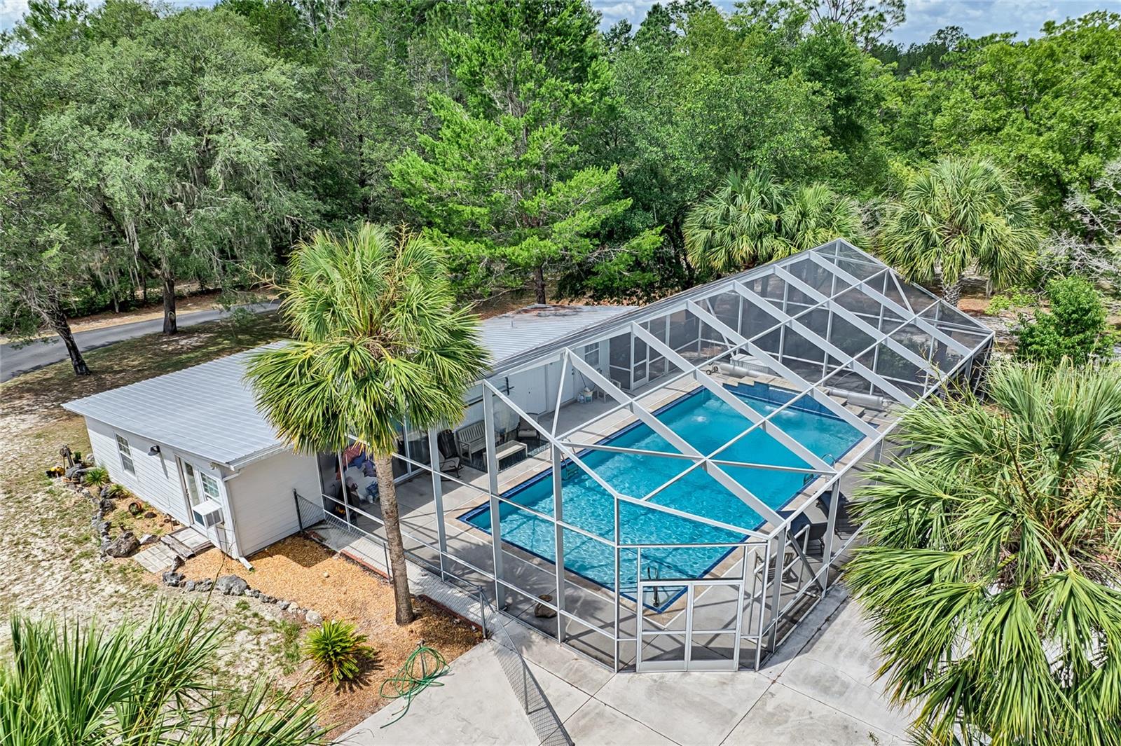 Welcome to your private sanctuary—a custom-built 7,000 square foot luxury home nestled on a 16-acre wooded estate in beautiful High Springs, Florida. As you approach via a tree-lined driveway behind a private gated entrance, you'll be captivated by the serene beauty of this one-of-a-kind property. The main residence, a completely updated two-story masterpiece, boasts numerous upgrades and modern amenities, including hand-laid travertine flooring and a large recreation room with a working fireplace built with rock from the property. The estate also features an adorable guest house, a sparkling lap pool with screened in lanai, and an enormous barn that has been newly renovated with an open floor plan of combination kitchen, dining and living area, as well as one large bedroom with walk-in closet. The lot spans 16 acres, with approximately 75% of the perimeter fenced. The driveway was paved in 2018 and sealed in 2022, while fencing on the main road and a gated entrance were added in 2018, with the fence re-stained in 2023. Built in 1979 by Ralph Royster, the main home features cedar wood framing, newer windows (2014), and a 400-amp electric service updated in 2010, including a generator system and a 50-amp RV service added in 2022. Three bathrooms have been fully renovated, and the primary suite includes a large walk-in closet and luxury bathroom. The lower level offers additional living spaces, storage areas, and a double-length garage. The pool house/in-law suite apartment, remodeled in 2018, includes two bedrooms, a living room, eat-in kitchen, and a beautiful bathroom, with exits to the screened pool area. The in-ground pool, installed in 1985, has been updated with a Diamond Brite finish, glass tile, waterfalls, water features, and converted to a salt system. The barn, a 60x60 concrete block building, has updated electric, a new roof (2017), and a 50-foot RV pad added in 2020. The barn apartment, remodeled in 2023, features an open floor plan and a heat pump system. Utilities include a drilled well system, separate septic systems for the main house, pool house, and barn, and three separate electric services. The property also has a diesel generator for backup power, three heat pumps for the main house, and a Starlink satellite dish for high-speed internet. The main house and pool house have metal roofs installed in 2010, while the barn roof was replaced in 2017. The pool and enclosure were updated in 2018, with a new pool pump installed in 2024. Additional features include a koi pond with a 40,000-gallon capacity, automatic fill system, UV sterilization, and lighting. The estate is serviced by a private garbage collection, HVAC maintenance, pest control, and house cleaning services. There is no HOA, and the security gate is battery-powered with a solar recharging unit. A 24-foot telescopic flagpole at the entrance was updated in 2024, and additional insulation was added to the main house in 2023. Located across the street from Ginnie Springs and a short drive to other natural springs, downtown High Springs, I-75, local area restaurants and more! Welcome HOME!