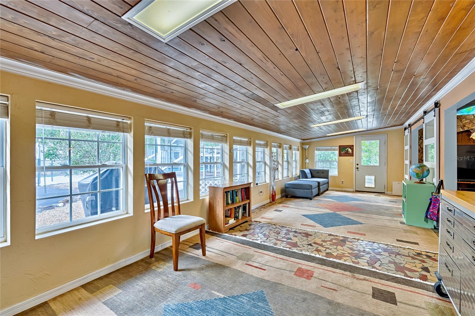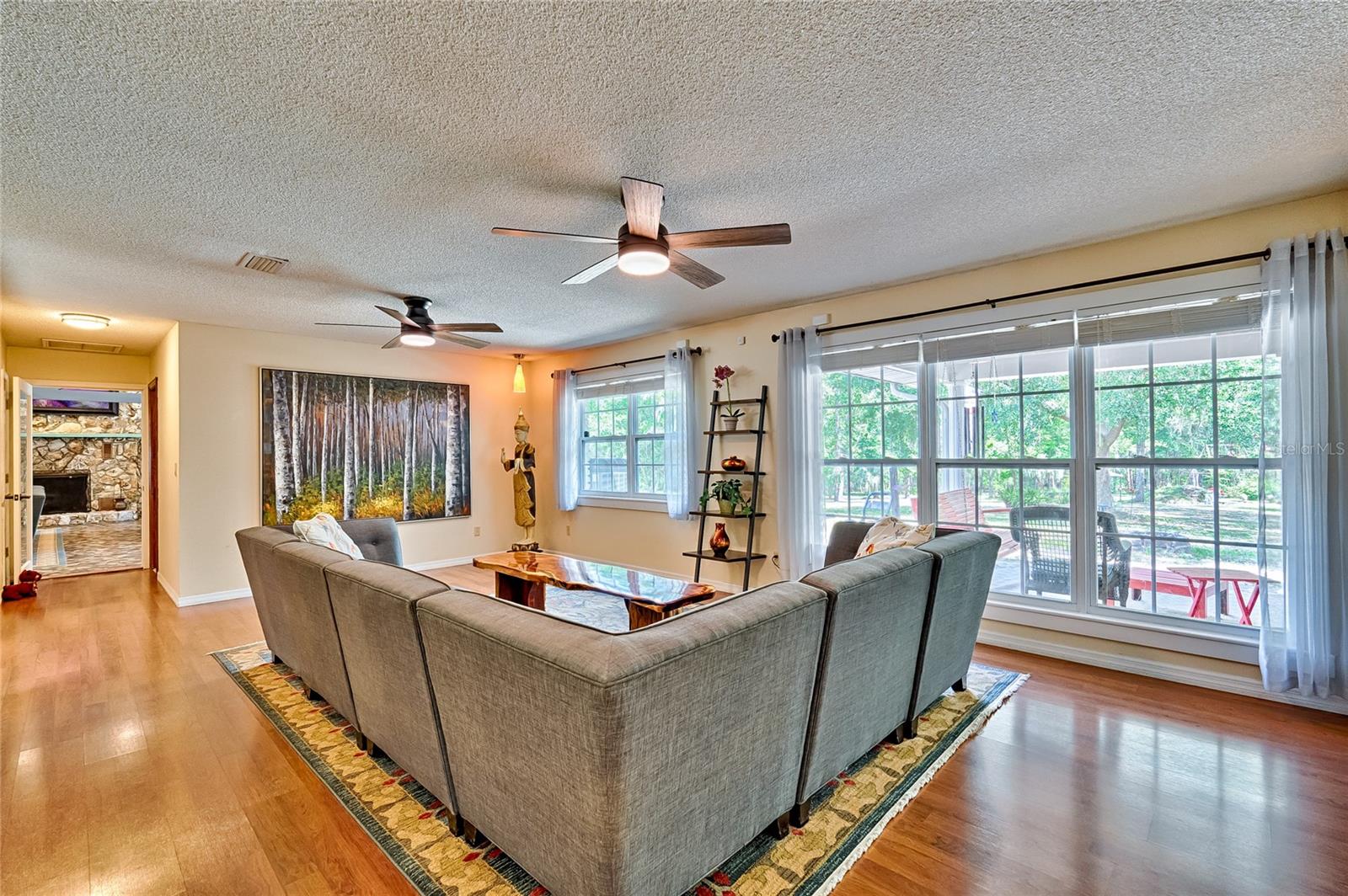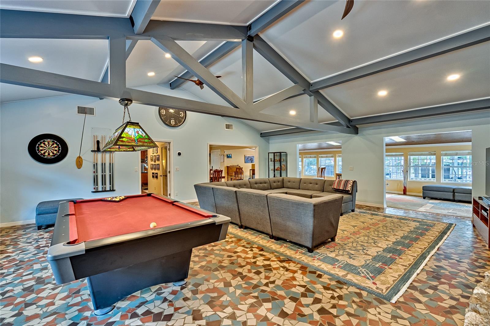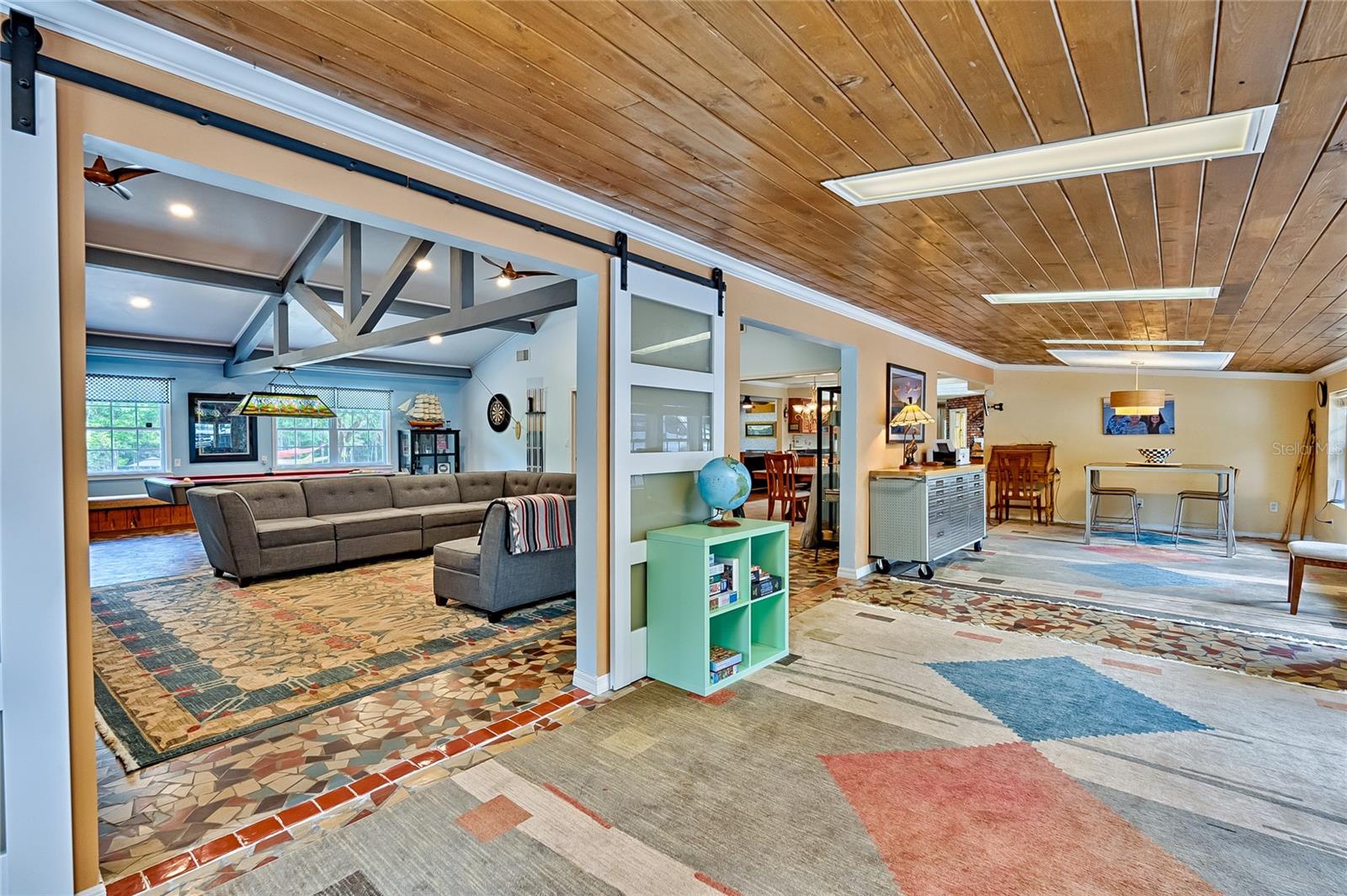 Welcome to your private sanctuary—a custom-built 7,000 square foot luxury home nestled on a 16-acre wooded estate in beautiful High Springs, Florida. As you approach via a tree-lined driveway behind a private gated entrance, you'll be captivated by the serene beauty of this one-of-a-kind property. The main residence, a completely updated two-story masterpiece, boasts numerous upgrades and modern amenities, including hand-laid travertine flooring and a large recreation room with a working fireplace built with rock from the property. The estate also features an adorable guest house, a sparkling lap pool with screened in lanai, and an enormous barn that has been newly renovated with an open floor plan of combination kitchen, dining and living area, as well as one large bedroom with walk-in closet. The lot spans 16 acres, with approximately 75% of the perimeter fenced. The driveway was paved in 2018 and sealed in 2022, while fencing on the main road and a gated entrance were added in 2018, with the fence re-stained in 2023. Built in 1979 by Ralph Royster, the main home features cedar wood framing, newer windows (2014), and a 400-amp electric service updated in 2010, including a generator system and a 50-amp RV service added in 2022. Three bathrooms have been fully renovated, and the primary suite includes a large walk-in closet and luxury bathroom. The lower level offers additional living spaces, storage areas, and a double-length garage. The pool house/in-law suite apartment, remodeled in 2018, includes two bedrooms, a living room, eat-in kitchen, and a beautiful bathroom, with exits to the screened pool area. The in-ground pool, installed in 1985, has been updated with a Diamond Brite finish, glass tile, waterfalls, water features, and converted to a salt system. The barn, a 60x60 concrete block building, has updated electric, a new roof (2017), and a 50-foot RV pad added in 2020. The barn apartment, remodeled in 2023, features an open floor plan and a heat pump system. Utilities include a drilled well system, separate septic systems for the main house, pool house, and barn, and three separate electric services. The property also has a diesel generator for backup power, three heat pumps for the main house, and a Starlink satellite dish for high-speed internet. The main house and pool house have metal roofs installed in 2010, while the barn roof was replaced in 2017. The pool and enclosure were updated in 2018, with a new pool pump installed in 2024. Additional features include a koi pond with a 40,000-gallon capacity, automatic fill system, UV sterilization, and lighting. The estate is serviced by a private garbage collection, HVAC maintenance, pest control, and house cleaning services. There is no HOA, and the security gate is battery-powered with a solar recharging unit. A 24-foot telescopic flagpole at the entrance was updated in 2024, and additional insulation was added to the main house in 2023. Located across the street from Ginnie Springs and a short drive to other natural springs, downtown High Springs, I-75, local area restaurants and more! Welcome HOME!