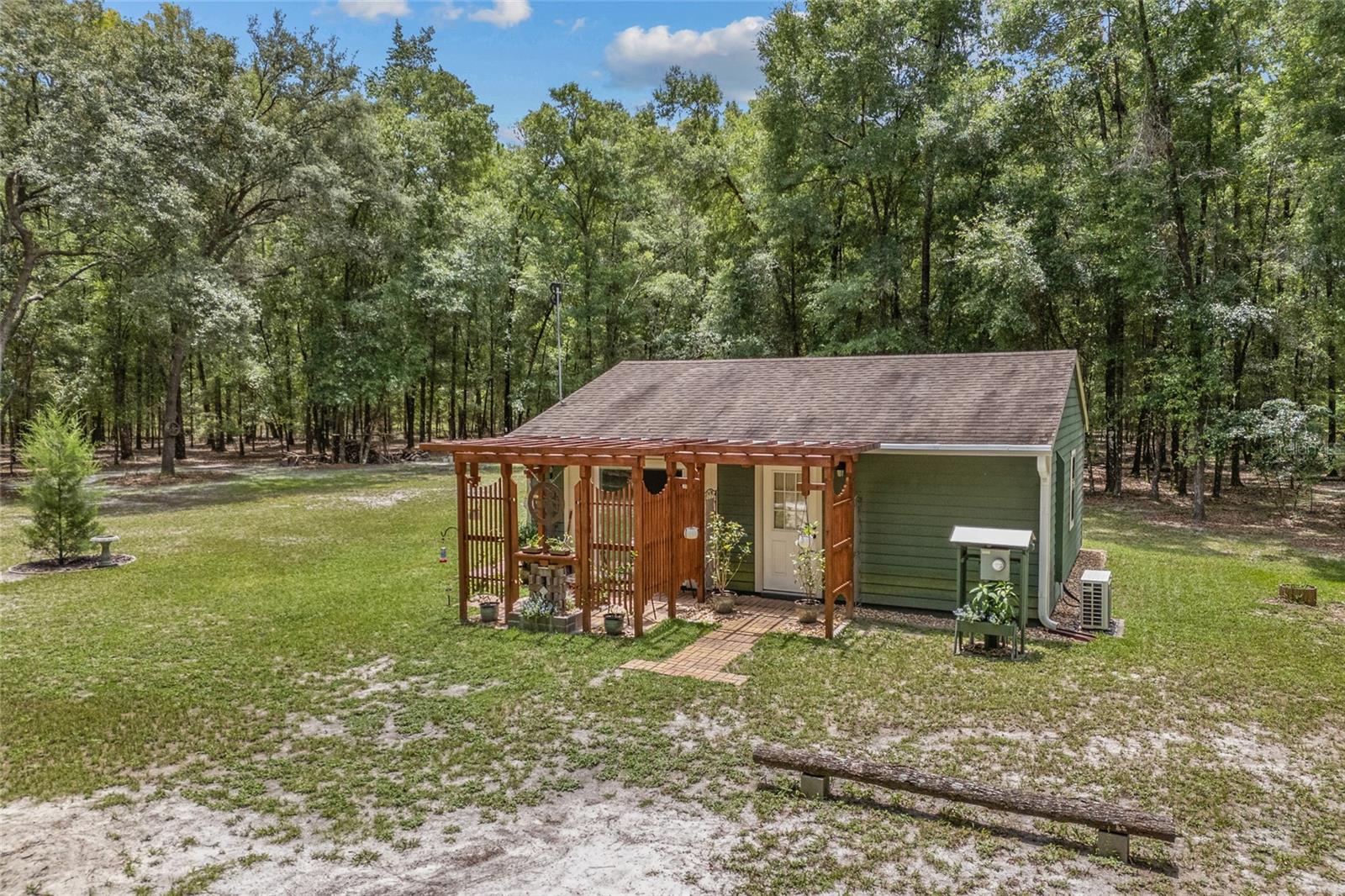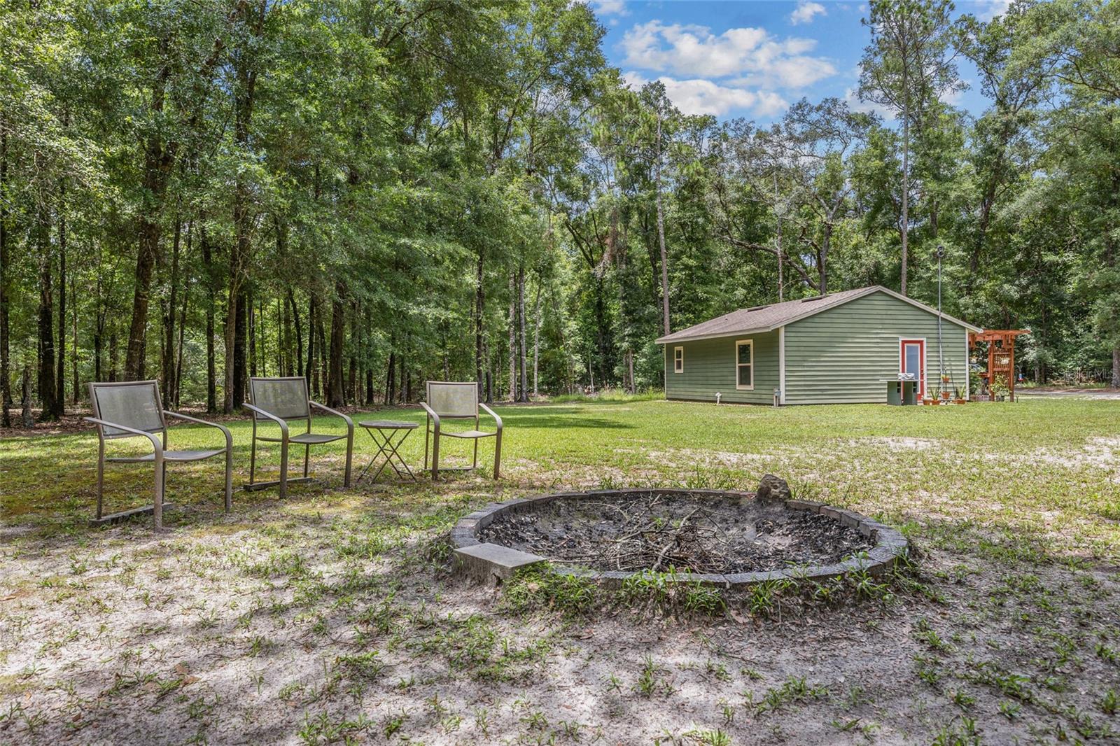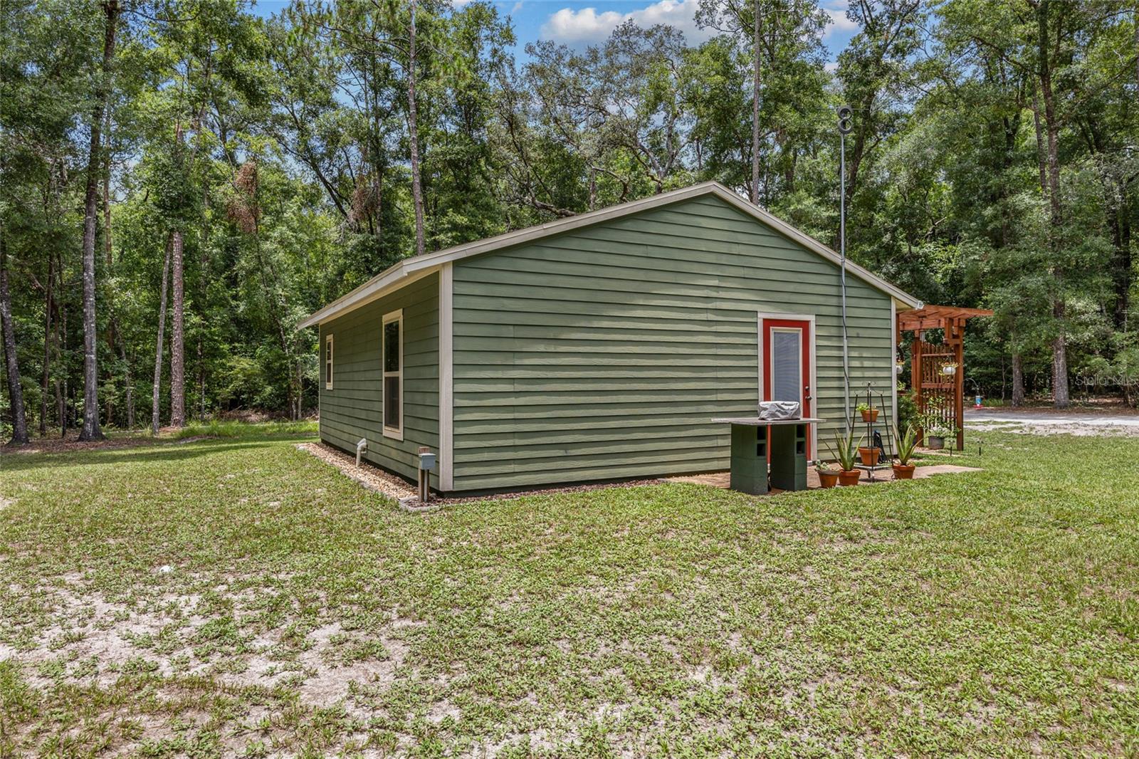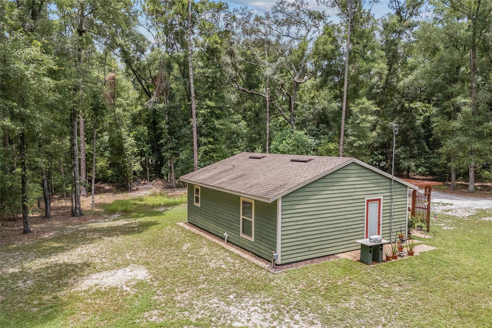 Welcome to your perfect getaway! This cozy 1-bedroom, 1-bathroom house is nestled on a serene 4-acre property, just a stone's throw from the beautiful Santa Fe River. Whether you're looking for a peaceful retreat, an artist's haven, or a nature lover's paradise, this home offers endless possibilities. As you step inside, you'll be greeted by an inviting open-concept living space with plenty of natural light. The spacious bedroom provides a tranquil retreat, while the well-appointed bathroom features modern fixtures and a relaxing atmosphere. The kitchen is equipped with everything you need to prepare delicious meals, and the adjoining dining area is perfect for enjoying them with friends and family. Home also is built to make it easy to add on extra living space if needed. Outside, the expansive 4-acre lot offers plenty of room to explore, garden, or simply relax and take in the stunning natural surroundings while walking on your very own private nature trails. The property is located close to the Santa Fe River, making it easy to enjoy kayaking, fishing, and other outdoor activities. Close to downtown High Springs, making it convenient for shopping and necessities.