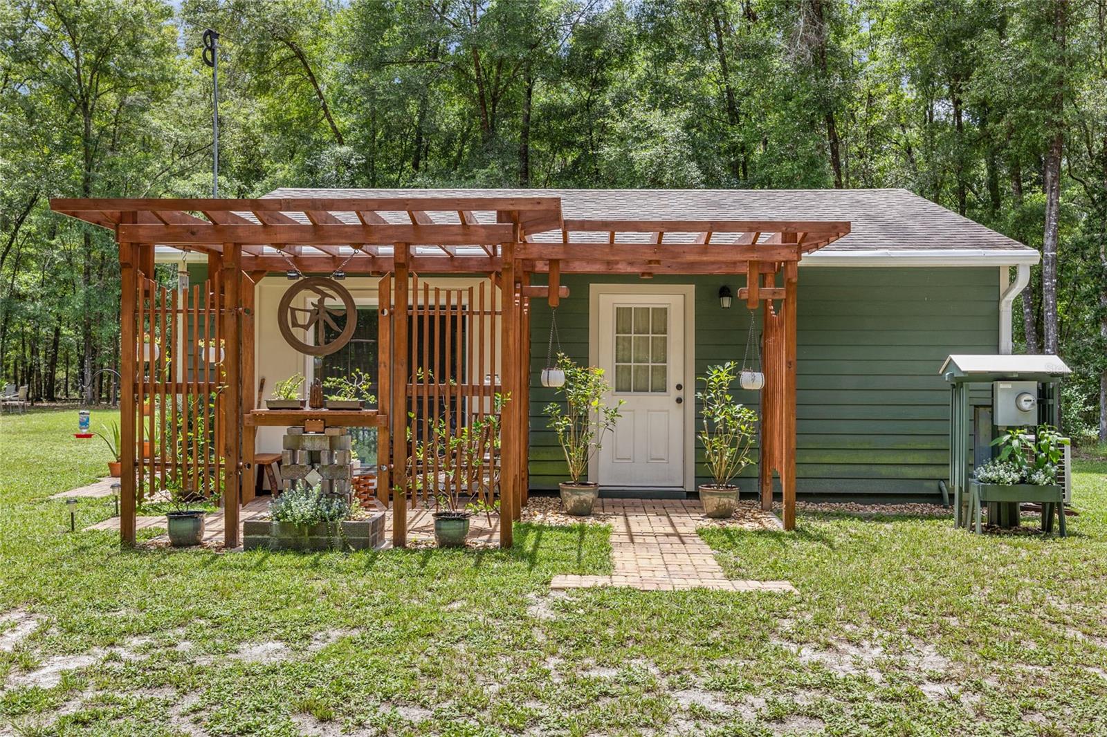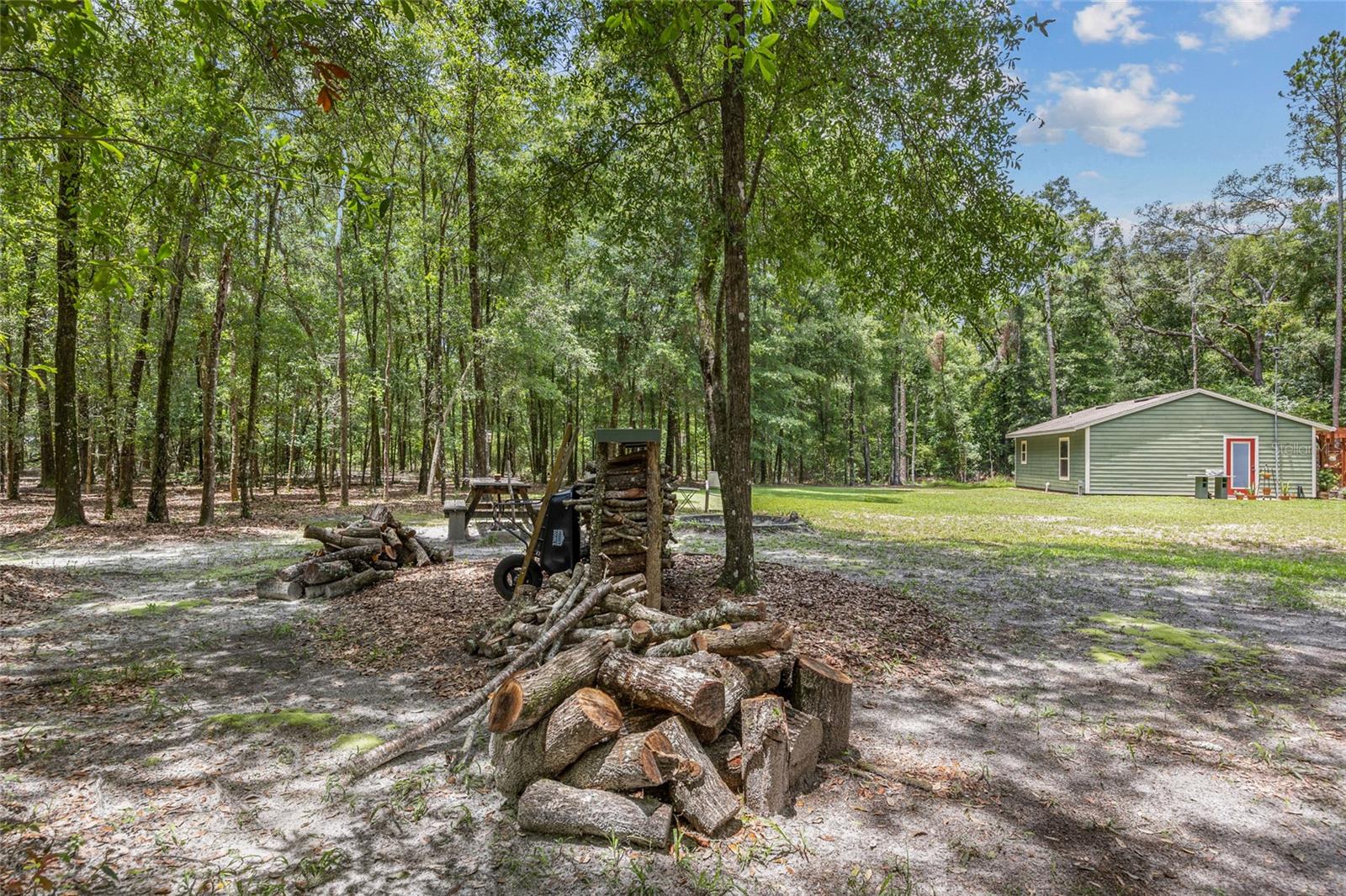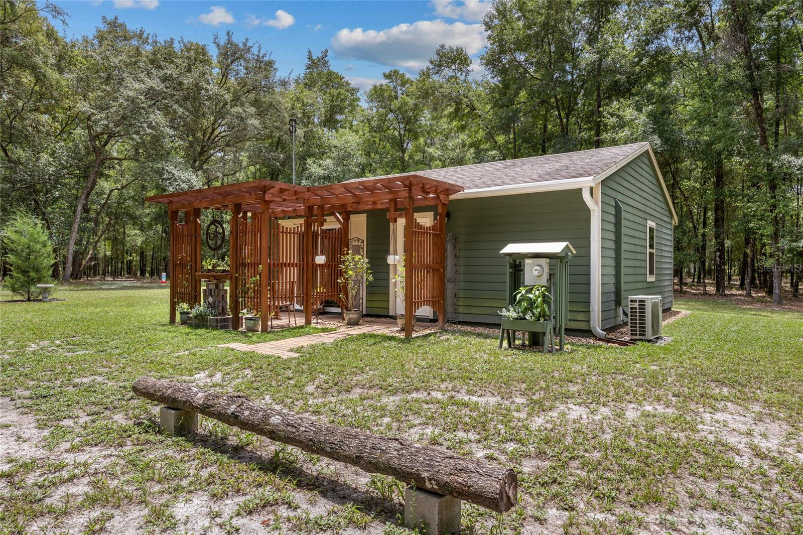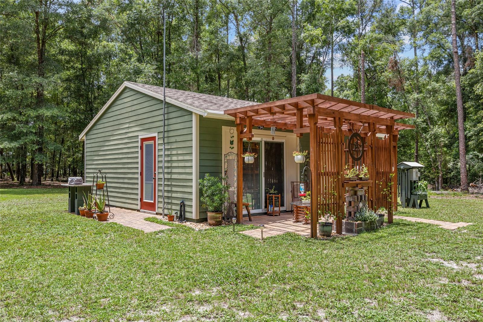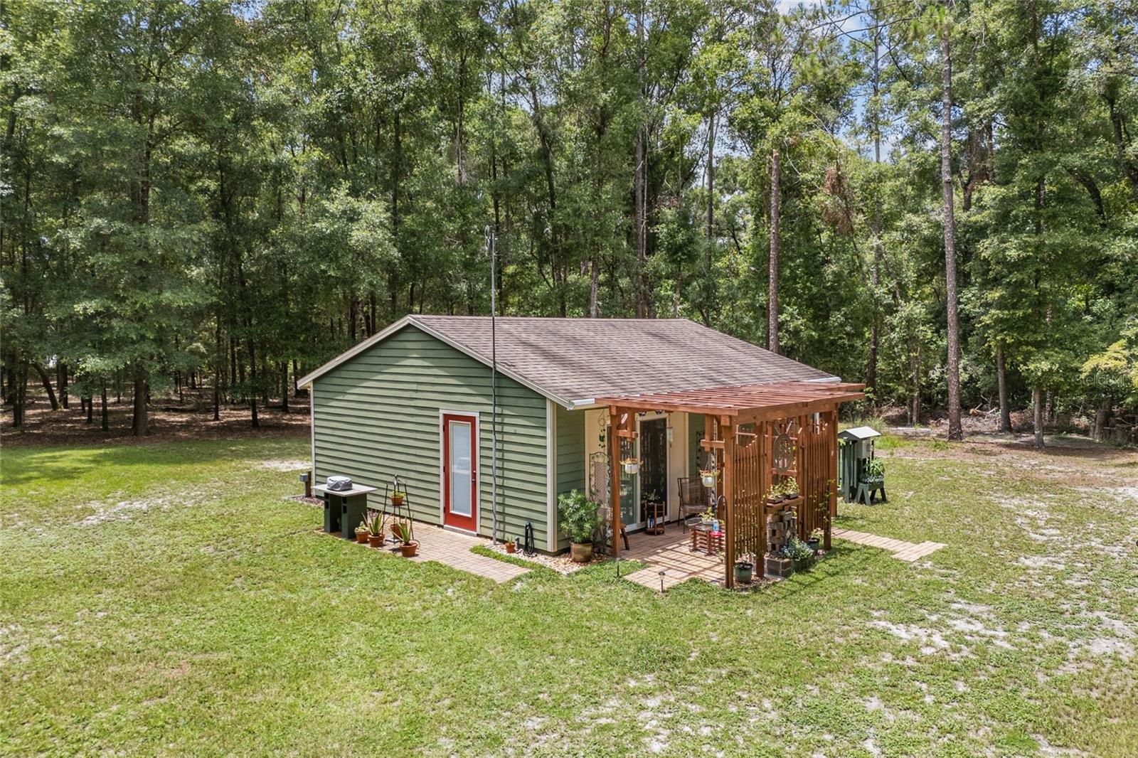 Welcome to your perfect getaway! This cozy 1-bedroom, 1-bathroom house is nestled on a serene 4-acre property, just a stone's throw from the beautiful Santa Fe River. Whether you're looking for a peaceful retreat, an artist's haven, or a nature lover's paradise, this home offers endless possibilities. As you step inside, you'll be greeted by an inviting open-concept living space with plenty of natural light. The spacious bedroom provides a tranquil retreat, while the well-appointed bathroom features modern fixtures and a relaxing atmosphere. The kitchen is equipped with everything you need to prepare delicious meals, and the adjoining dining area is perfect for enjoying them with friends and family. Home also is built to make it easy to add on extra living space if needed. Outside, the expansive 4-acre lot offers plenty of room to explore, garden, or simply relax and take in the stunning natural surroundings while walking on your very own private nature trails. The property is located close to the Santa Fe River, making it easy to enjoy kayaking, fishing, and other outdoor activities. Close to downtown High Springs, making it convenient for shopping and necessities.