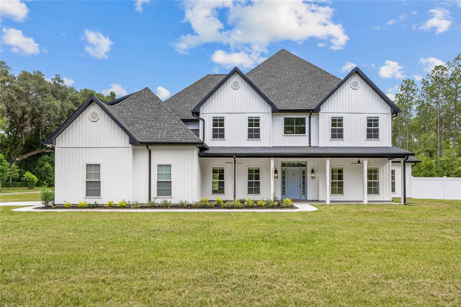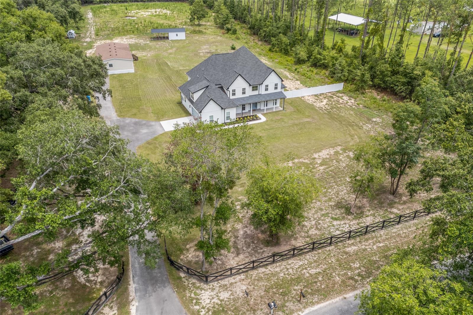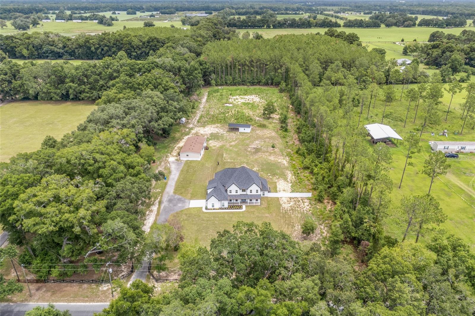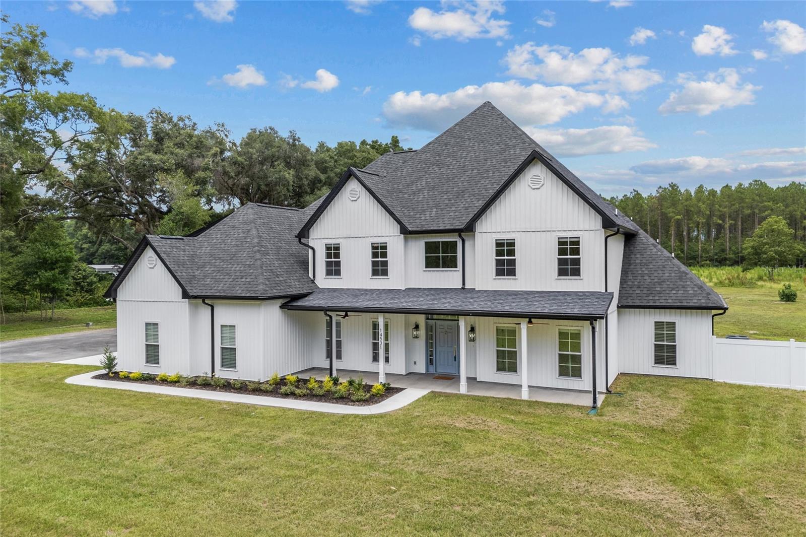 BACK ON THE MARKET - Buyer financing fell through, no inspections done, no fault of seller. Welcome to your new sanctuary in High Springs, where the best of country living meets city convenience! Nestled on 5.49 sprawling acres of partially cleared land surrounded by Grandaddy Oaks, this stunning custom-built estate features not only a magnificent 4,178 square foot, 6 bedroom and 3.5 bath home that was completed in 2023, but also a nearly 2,000 square foot detached guest house that promises both privacy and comfort. As you pass through the entry gates, the grandeur of the main home greets you with open arms. Picture-perfect flower beds line the path to a welcoming front porch, ideal for enjoying morning coffee or evening drinks while basking in the golden sunset. Step inside and the grand French oak staircase and two-story foyer immediately impress. To the right, a versatile guest bedroom or office awaits, while the left leads to a generously sized formal dining room that is perfect for hosting gatherings. Just beyond the grand staircase lies a spacious laundry room that seamlessly connects to the primary suite’s walk-in closet. The closet leads to a luxurious bathroom, complete with a large soaking tub, dual sinks, and a private water closet. The primary bedroom offers a cozy retreat with views of the expansive yard, creating the perfect escape. The heart of the home is the great room, with soaring two story ceilings that enhance its spaciousness and a fireplace that adds warmth. Adjoining is an informal dining area and an expansive kitchen boasting a colossal island with seating for six, dual dishwashers, dual wall ovens, and abundant custom cabinets. An attached butler’s pantry/prep kitchen that spans the width of the kitchen has a sink and space for a refrigerator or freezer and ensures ample storage for all your appliances, dishes, and servingware, as well as abundant counter space. With a space like this, keeping clutter out of the kitchen is easy, and entertaining large crowds becomes a breeze. Upstairs, four guest bedrooms, including two connected by a Jack-n-Jill bath, and two baths offer comfort and privacy. A bonus room and upstairs laundry area add practicality and convenience, and a loft space makes for an ideal space to cozy up with a good book. For additional accommodation needs, the detached guest house, which was built in 2022, is complete with 3 bedrooms, 2 baths, a large kitchen, living space, and laundry room, and provides the perfect retreat for short and long-term visitors. Moreover, it has its own address, providing tremendous income potential as a rental or Airbnb. As one of the only lots on the street with Agricultural A-1 zoning, the possibilities are endless. Currently, there is a charming chicken coop that accommodates 25 chickens and an expansive 20x40 partially enclosed metal workshop, and there’s ample space for gardens, horses, and livestock. Whether you dream of a private oasis or a thriving farm, this property is poised to fulfill your vision. Located less than 10 minutes from Publix, I-75, schools, medical facilities, dining, and shops, as well as the area’s world-famous springs, this home offers the ultimate blend of tranquility and accessibility. Don’t miss out on the opportunity to make this slice of paradise yours—schedule your tour today and let your imagination run wild! Some photos have been virtually staged.