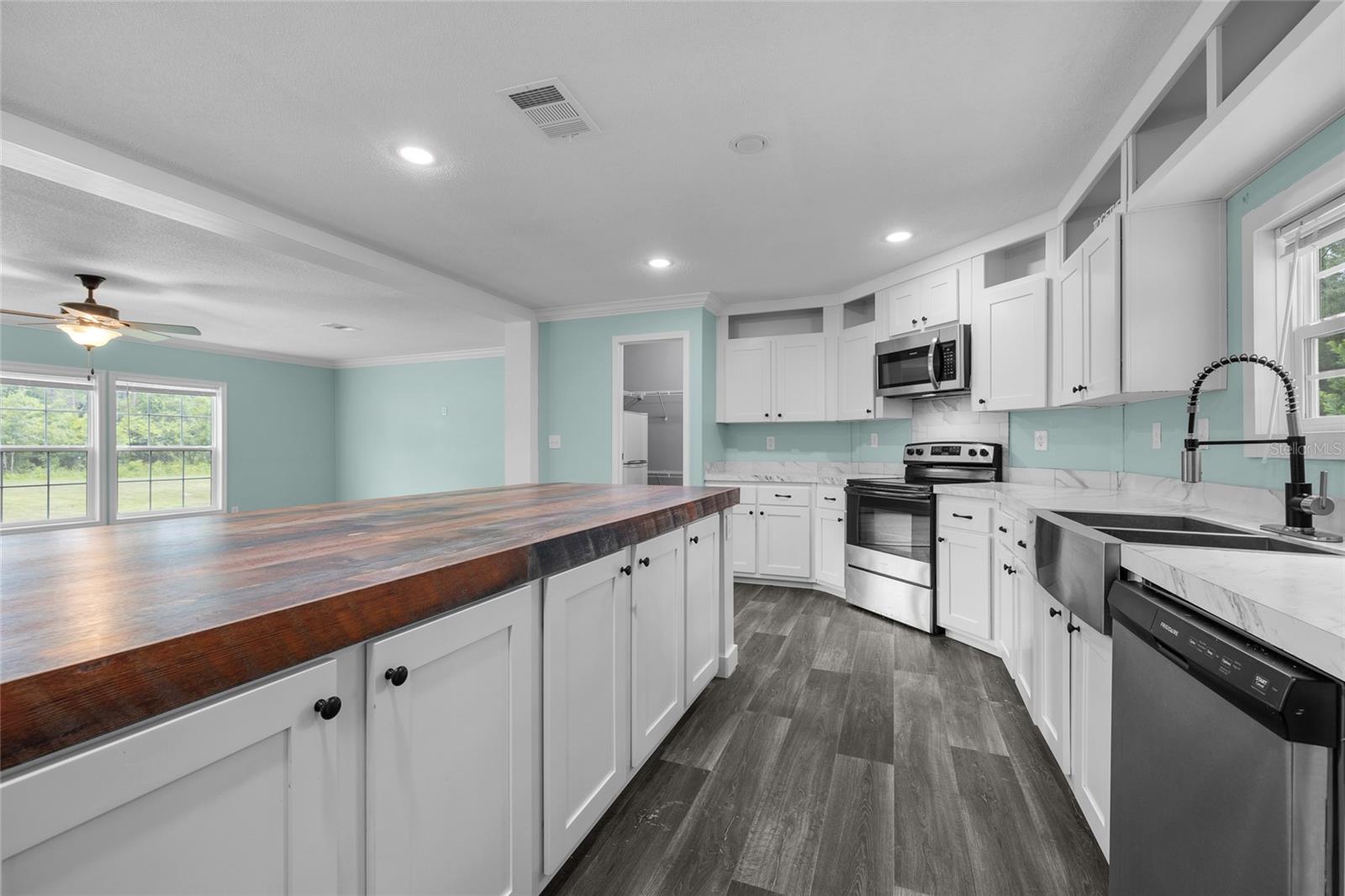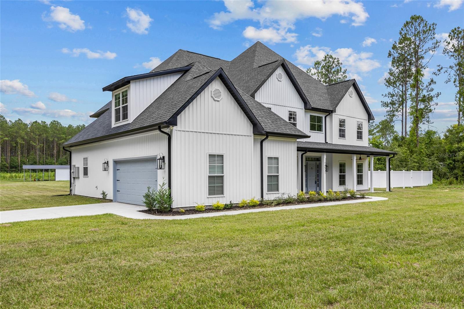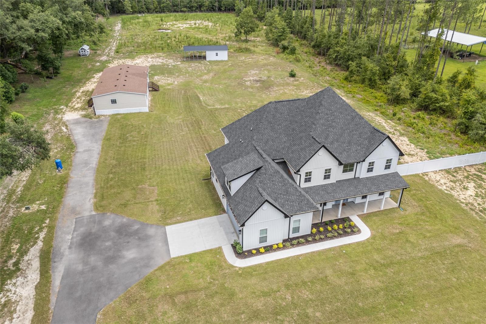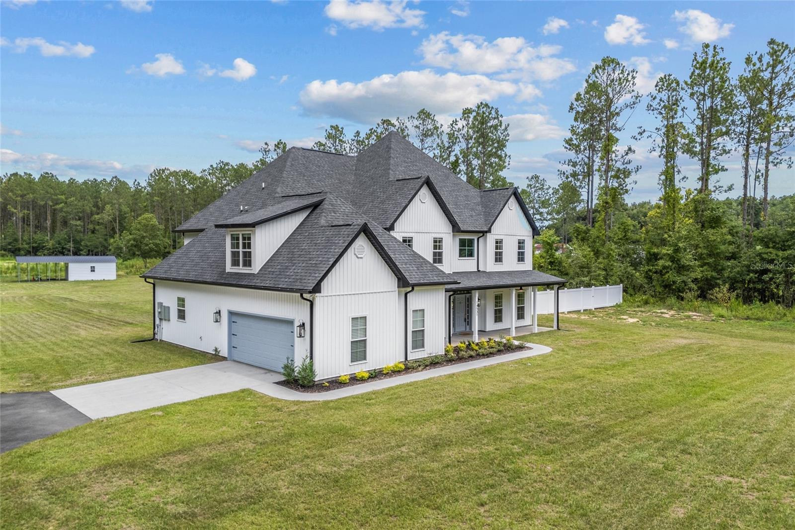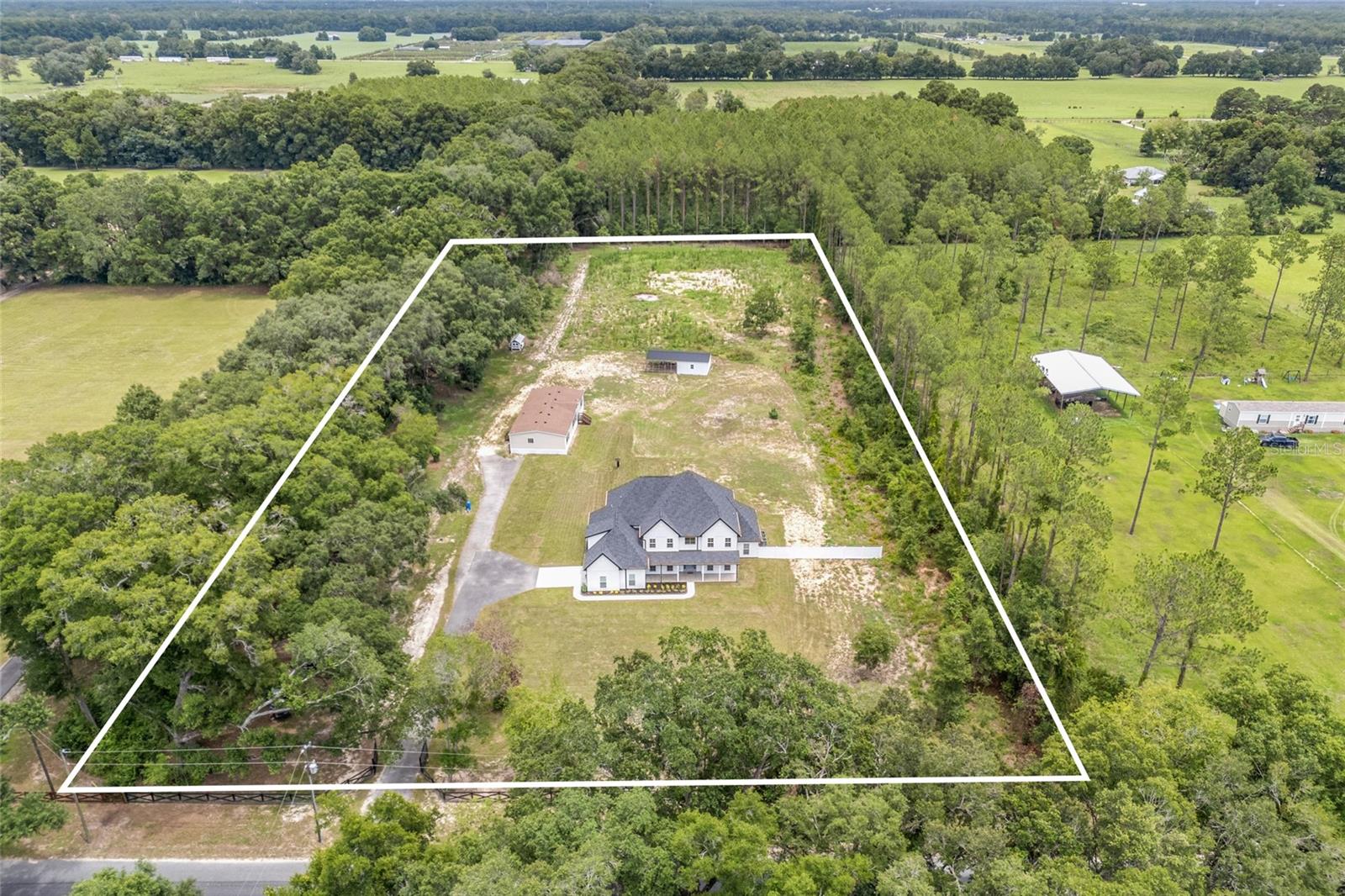 BACK ON THE MARKET - Buyer financing fell through, no inspections done, no fault of seller. Welcome to your new sanctuary in High Springs, where the best of country living meets city convenience! Nestled on 5.49 sprawling acres of partially cleared land surrounded by Grandaddy Oaks, this stunning custom-built estate features not only a magnificent 4,178 square foot, 6 bedroom and 3.5 bath home that was completed in 2023, but also a nearly 2,000 square foot detached guest house that promises both privacy and comfort. As you pass through the entry gates, the grandeur of the main home greets you with open arms. Picture-perfect flower beds line the path to a welcoming front porch, ideal for enjoying morning coffee or evening drinks while basking in the golden sunset. Step inside and the grand French oak staircase and two-story foyer immediately impress. To the right, a versatile guest bedroom or office awaits, while the left leads to a generously sized formal dining room that is perfect for hosting gatherings. Just beyond the grand staircase lies a spacious laundry room that seamlessly connects to the primary suite’s walk-in closet. The closet leads to a luxurious bathroom, complete with a large soaking tub, dual sinks, and a private water closet. The primary bedroom offers a cozy retreat with views of the expansive yard, creating the perfect escape. The heart of the home is the great room, with soaring two story ceilings that enhance its spaciousness and a fireplace that adds warmth. Adjoining is an informal dining area and an expansive kitchen boasting a colossal island with seating for six, dual dishwashers, dual wall ovens, and abundant custom cabinets. An attached butler’s pantry/prep kitchen that spans the width of the kitchen has a sink and space for a refrigerator or freezer and ensures ample storage for all your appliances, dishes, and servingware, as well as abundant counter space. With a space like this, keeping clutter out of the kitchen is easy, and entertaining large crowds becomes a breeze. Upstairs, four guest bedrooms, including two connected by a Jack-n-Jill bath, and two baths offer comfort and privacy. A bonus room and upstairs laundry area add practicality and convenience, and a loft space makes for an ideal space to cozy up with a good book. For additional accommodation needs, the detached guest house, which was built in 2022, is complete with 3 bedrooms, 2 baths, a large kitchen, living space, and laundry room, and provides the perfect retreat for short and long-term visitors. Moreover, it has its own address, providing tremendous income potential as a rental or Airbnb. As one of the only lots on the street with Agricultural A-1 zoning, the possibilities are endless. Currently, there is a charming chicken coop that accommodates 25 chickens and an expansive 20x40 partially enclosed metal workshop, and there’s ample space for gardens, horses, and livestock. Whether you dream of a private oasis or a thriving farm, this property is poised to fulfill your vision. Located less than 10 minutes from Publix, I-75, schools, medical facilities, dining, and shops, as well as the area’s world-famous springs, this home offers the ultimate blend of tranquility and accessibility. Don’t miss out on the opportunity to make this slice of paradise yours—schedule your tour today and let your imagination run wild! Some photos have been virtually staged.