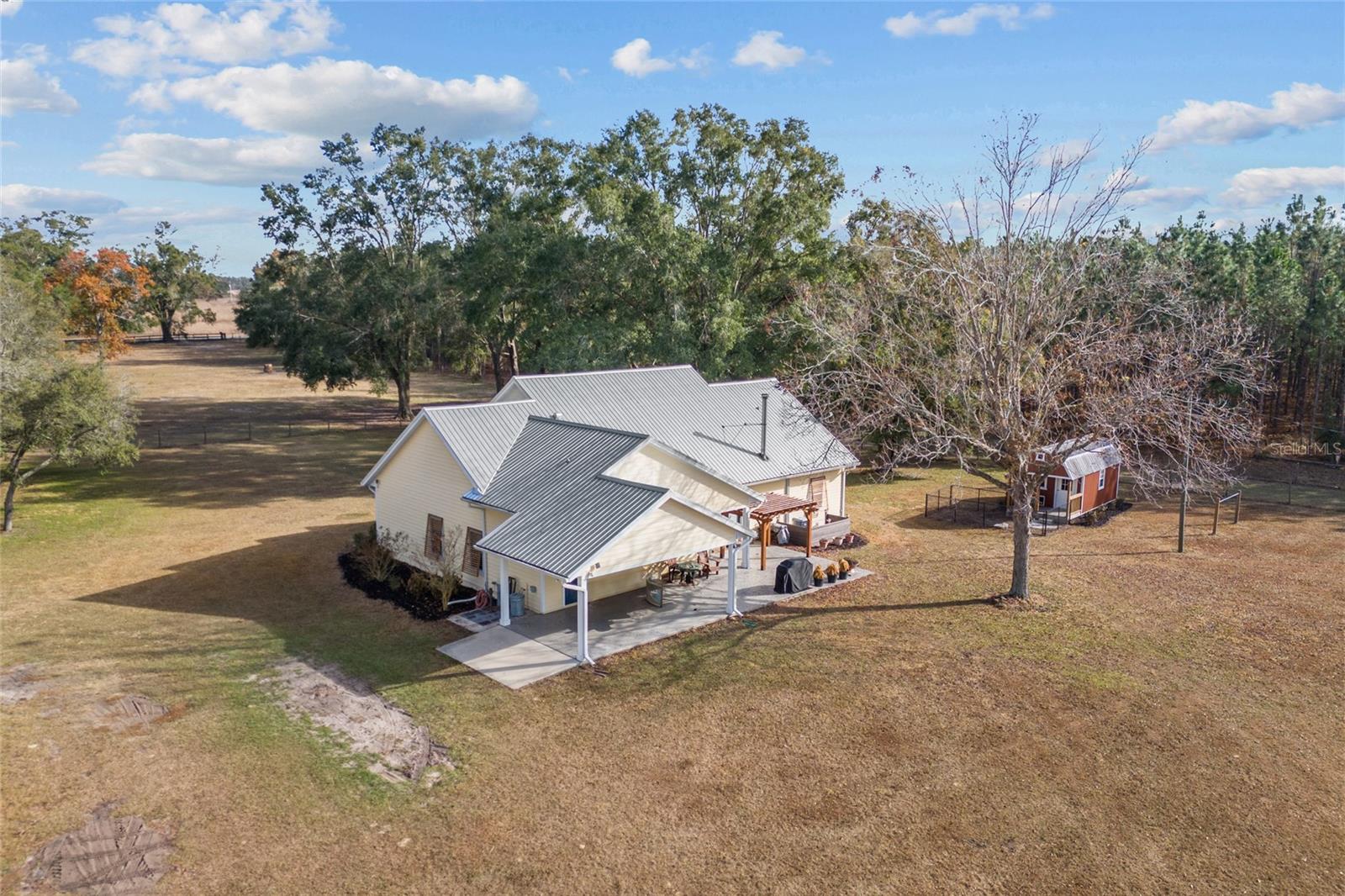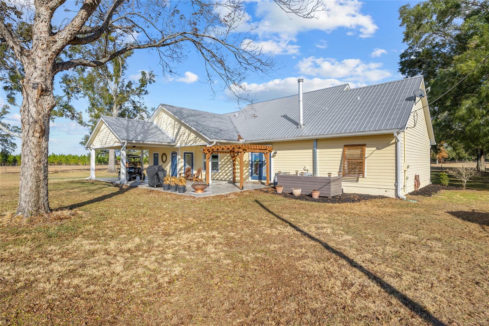 Discover the perfect blend of country charm and modern convenience with this stunning 4-bedroom, 2.5-bathroom custom home on 10 private acres in Gilchrist County, featuring a sought-after High Springs address. Tucked away off a paved road, the property is accessed via a private drive with an electric gate, offering peace and privacy in a serene, natural setting. This property is a dream for horse enthusiasts, boasting a 20x180 horse barn with six stalls, each equipped with running water and electricity, plus convenient hay storage at the end. 200 amp service to the barn. A 20x48 metal-enclosed barn provides additional storage, while a 40x60 pole barn offers space for farm equipment, RVs, boats, and more. The property is fully fenced and cross-fenced, making it ready for your animals. A small shed with electricity adds even more versatility. The kitchen is designed for culinary inspiration, featuring new countertops, a stylish backsplash, updated appliances, a double oven, a spacious island ideal for entertaining, ample cabinetry, and generous pantry storage. A cozy eat-in area and a formal dining room provide flexible dining options. The inviting living room showcases a wood-burning stove set on a beautiful brick hearth, charming shiplap walls, a sliding barn door, and a striking double tray ceiling that adds architectural interest. Retreat to the master suite, which offers a walk-in closet and a luxurious en suite bathroom complete with dual vanities, a walk-in shower, and multiple shower heads for a spa-like experience. Enjoy breathtaking sunsets and outdoor entertaining under the covered carport and pergola. The property’s peaceful, secluded setting provides a perfect escape from the hustle and bustle. This home has been thoughtfully upgraded with: hurricane shutters and a durable metal roof, wooden window pull-downs for added charm, generator plug-ins and RV hookups for convenience, newer HVAC system, and a water softener system. Conveniently located just 10 minutes from downtown High Springs, this home offers easy access to springs, rivers, and outdoor adventures, while remaining just 30 minutes from HCA Hospital, Shands, the University of Florida, and Santa Fe College. The Gulf Coast is less than an hour away, making it an ideal retreat. With its combination of beautiful craftsmanship, horse-ready amenities, and peaceful surroundings, this property offers everything you need for a private country lifestyle with modern conveniences. Schedule your showing today!