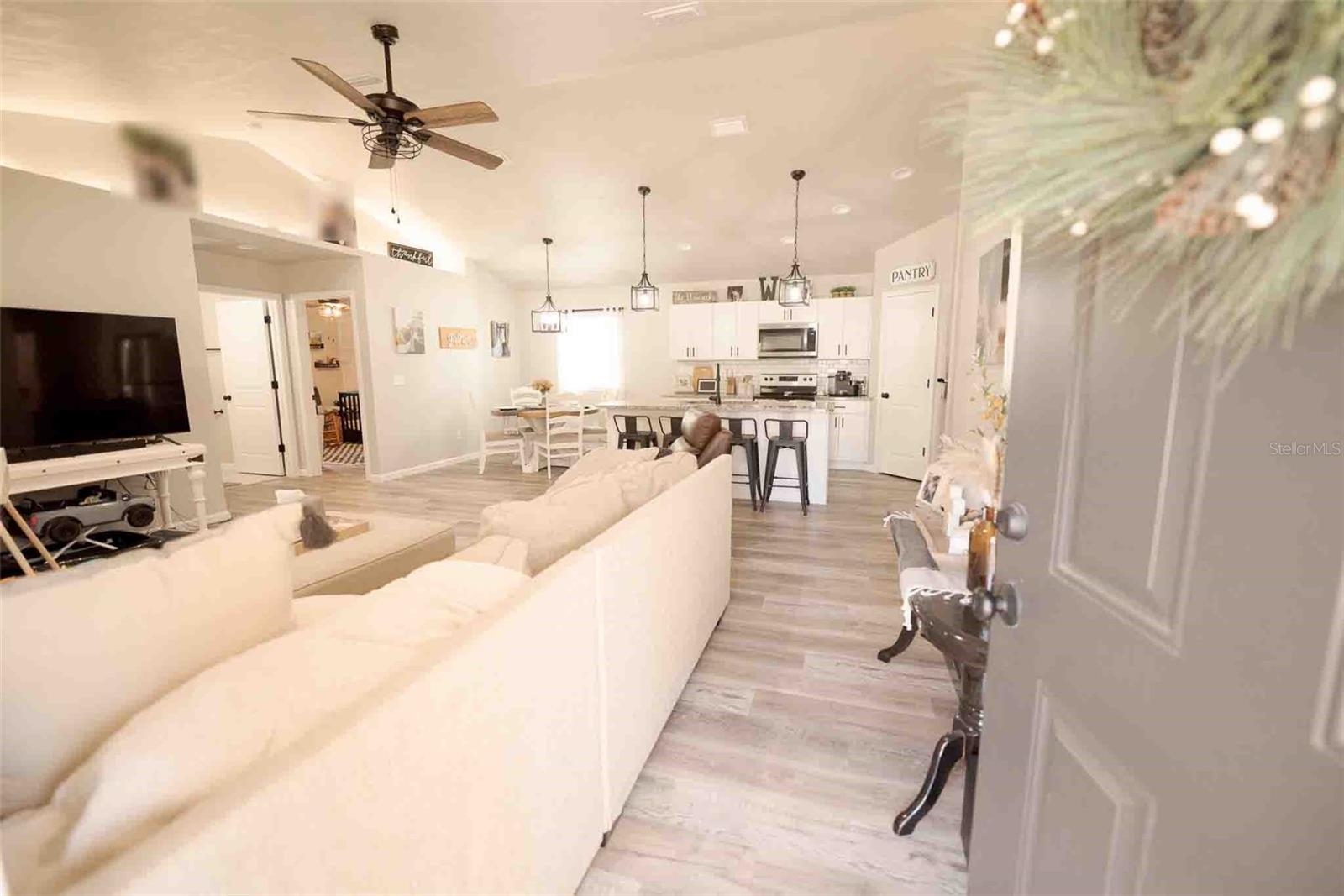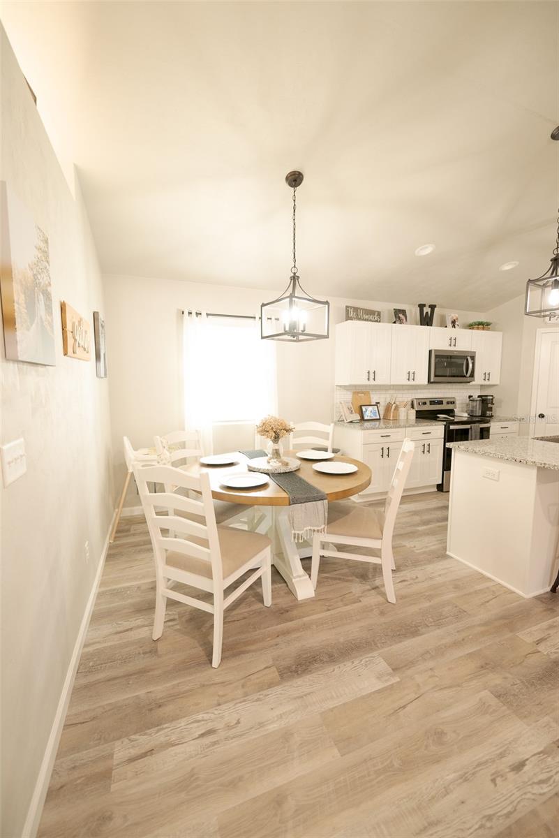 This beautiful 2022 new build features 3 bedrooms, 2 bathrooms, while cooking in a beautiful Kitchen with Whirlpool Appliances and LG fridge, Cream Cabinets accented with a Cream Flow Tile Backsplash, and Quartz Countertops with a beautiful island. This home boasts open-concept living with your Kitchen overlooking a spacious Gathering Room and cozy Café. This home features designer upgrades including Luxury Vinyl Plank Flooring throughout the main living areas and Owner's Suite, and Bushed Nickle finishes throughout. Your Owner's Suite features a large Walk-In Closet, double-Sink Vanity with Soft Close Cream Cabinets and Quartz Countertops and tiled to the ceiling master shower.