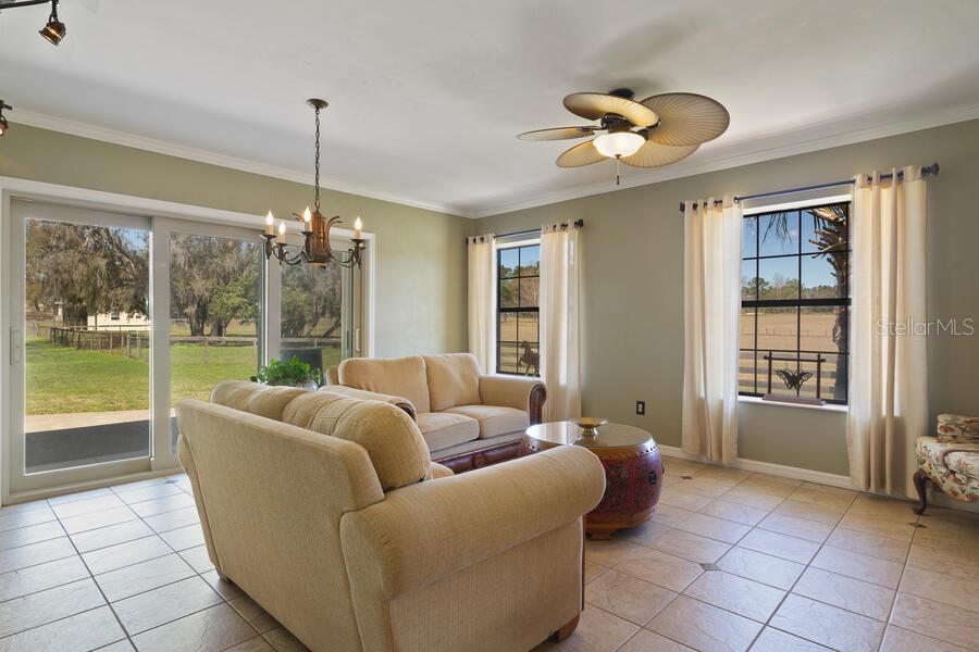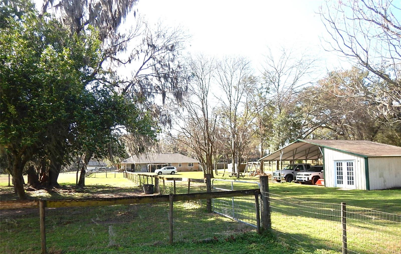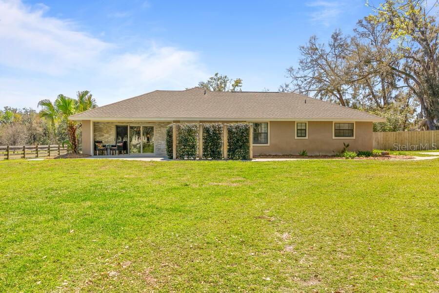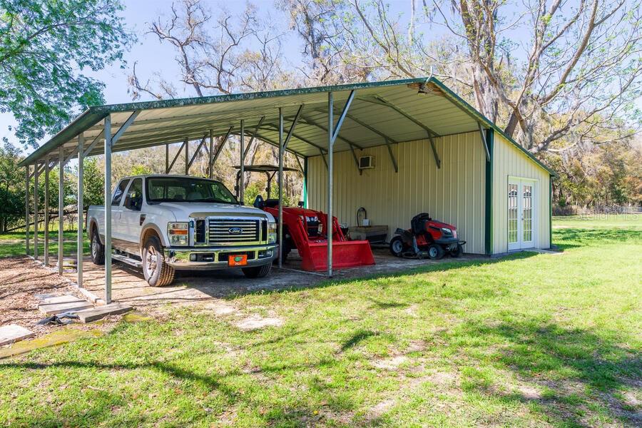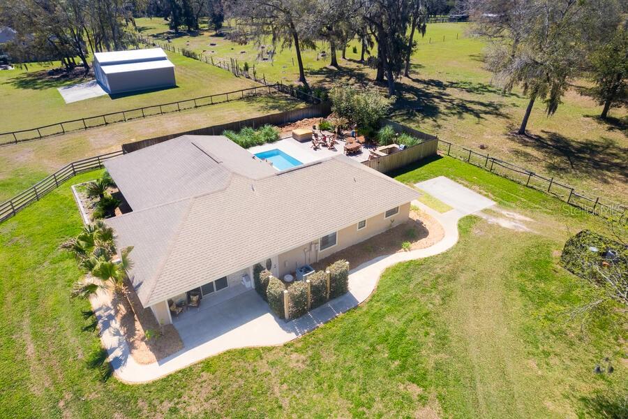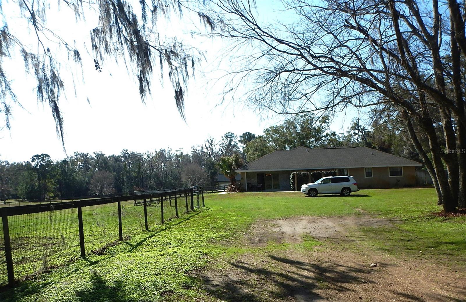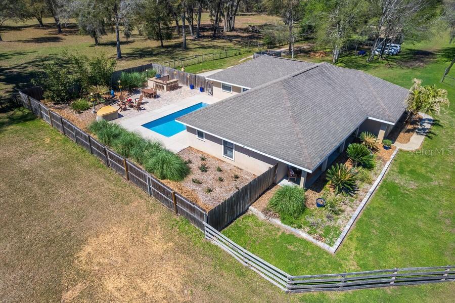 Under contract-accepting backup offers. Horse ready property with a custom renovated home & horse barn has all that you could want and NO HOA!! - concrete block construction, inground pool, hot tub, outdoor kitchen and bar, 3-stall horse barn with feed room and tack room, and even an insulated and air conditioned workshop. The kitchen and baths have all been updated. The home's kitchen is oversized with lots of storage - even a pantry! The refrigeration unit consists of a full sized fridge and full sized freezer that are unified by a matching trim kit...they are not a sub-zero unit. Separate formal dining room, plus space at the large kitchen island for snacks or quick meals. The garage has been wonderfully converted to a large family room. Split bedroom plan. This home screams to be the entertaining center for you, your family and friends! Additional features include a crafting closet off the 4th bedroom, lots of storage in the laundry room, home is wired with a generator connection outside the laundry room exit door and is wired with Structured Cables - Cat 5 to various locations, TV cabling to most rooms - specific list is in the attachments . Owners are providing a 2007 survey. NEW ROOF April 2025 - NOT due to any leaks nor damage, but done to avoid any possible insurance issues for a new owner. NEW A/C in June 2025...both inside and outside components. Be sure to keep in mind that the Per SF price includes the land, the pool , the horse barn, the workshop, the carport, the fencing, the pool decking and the outdoor kitchen - NOT just the home's SF. No Horses? No problem...the horse barn can become income producing asset...........lease the 3 stalls out for horse boarding fees! One of the owners is a Florida Licensed Real Estate Agent.