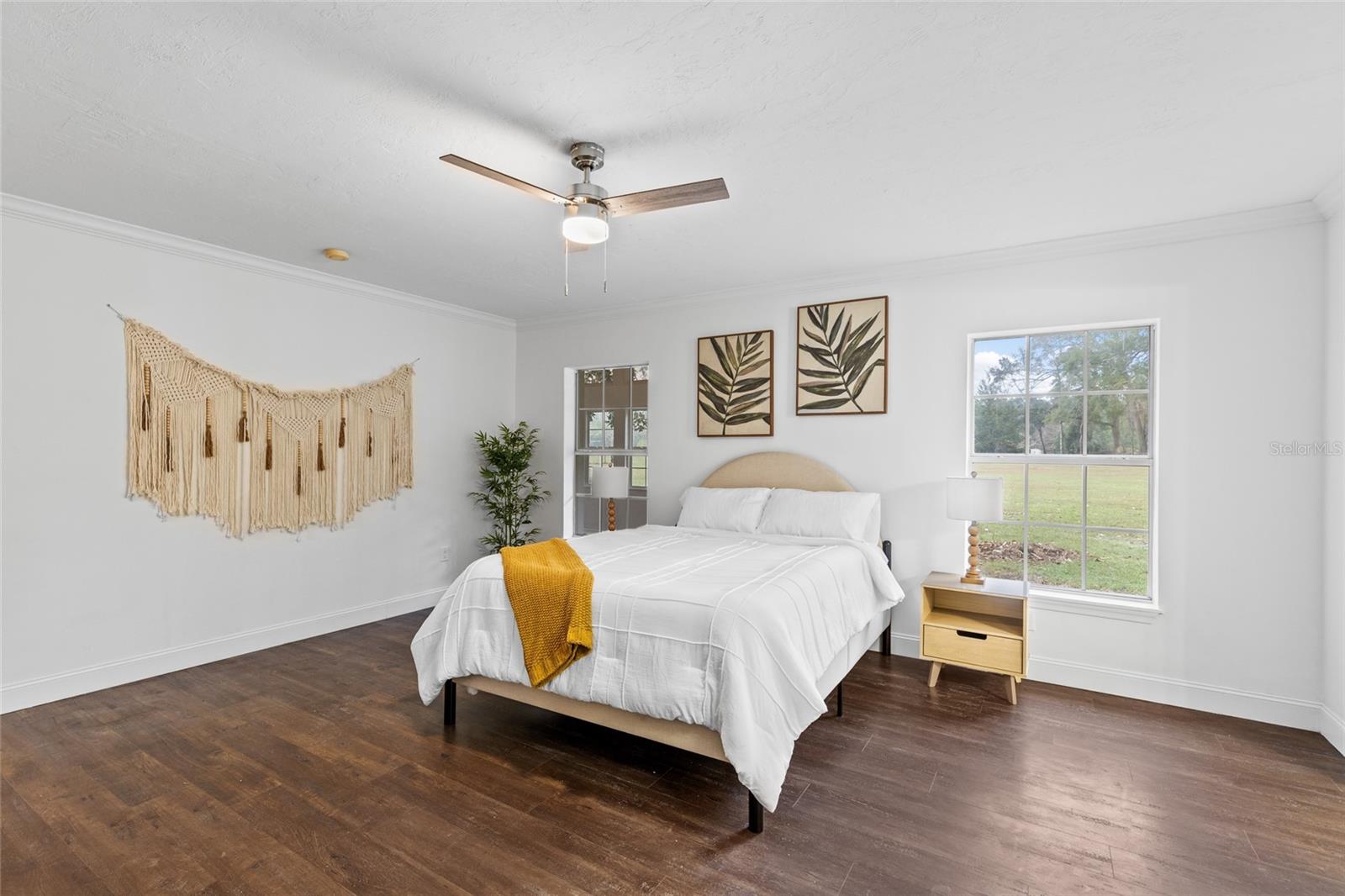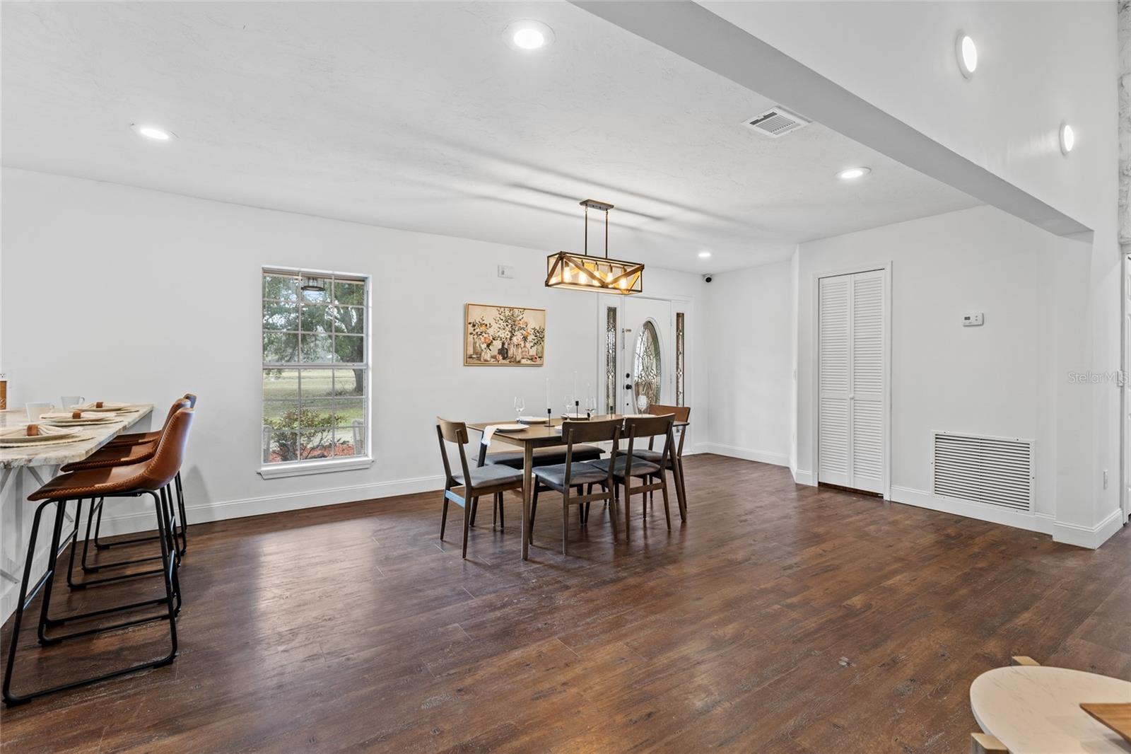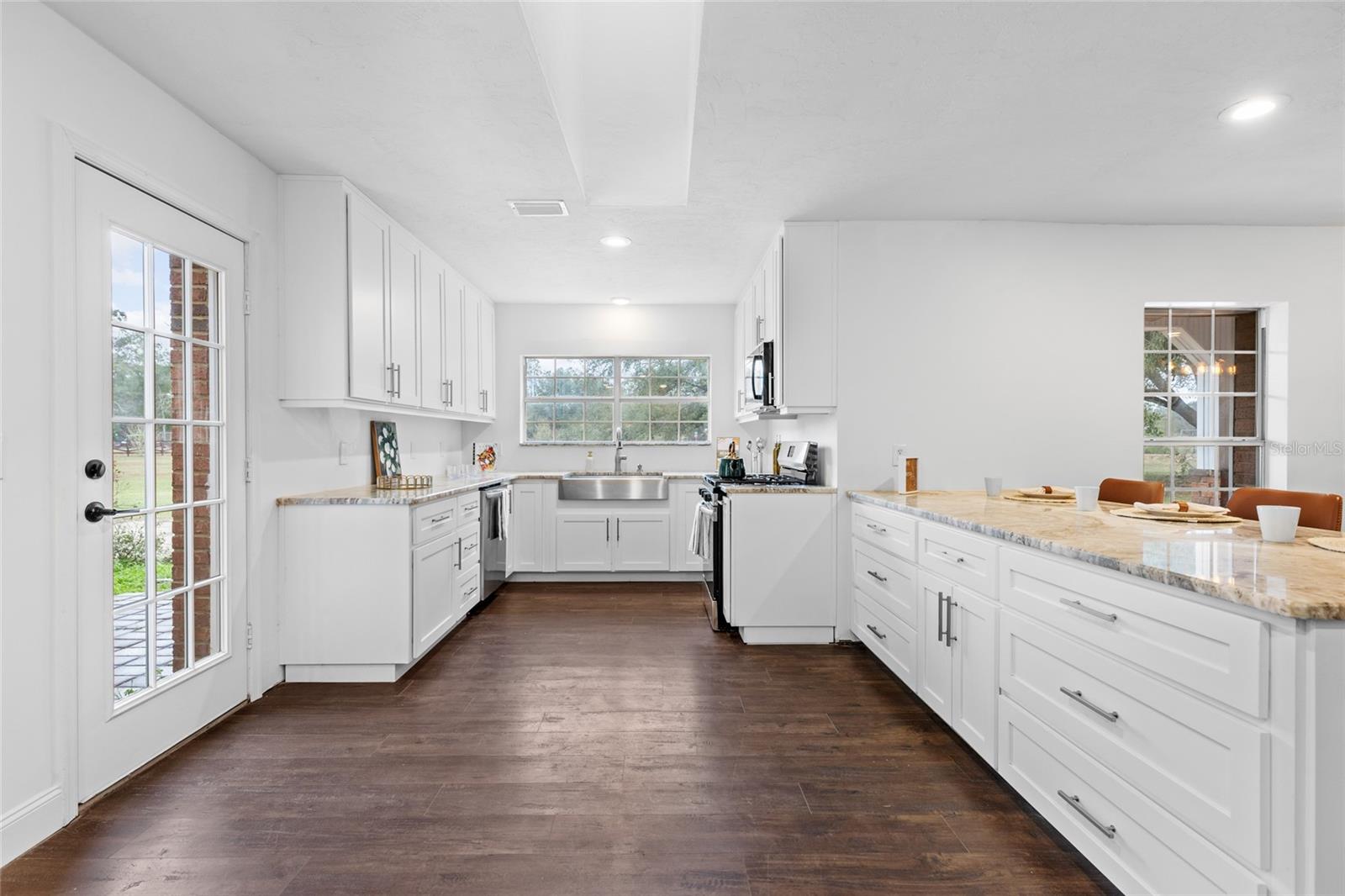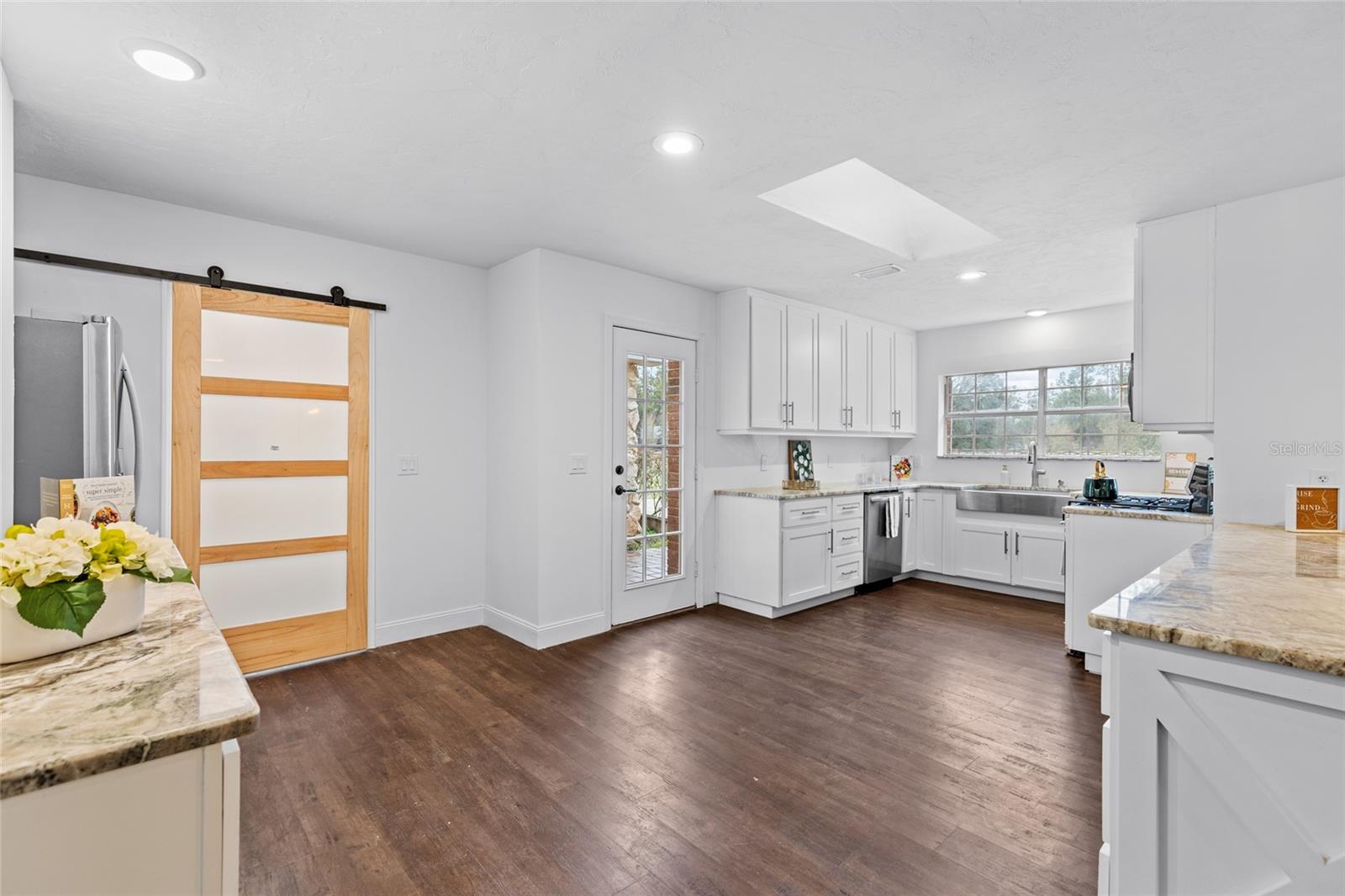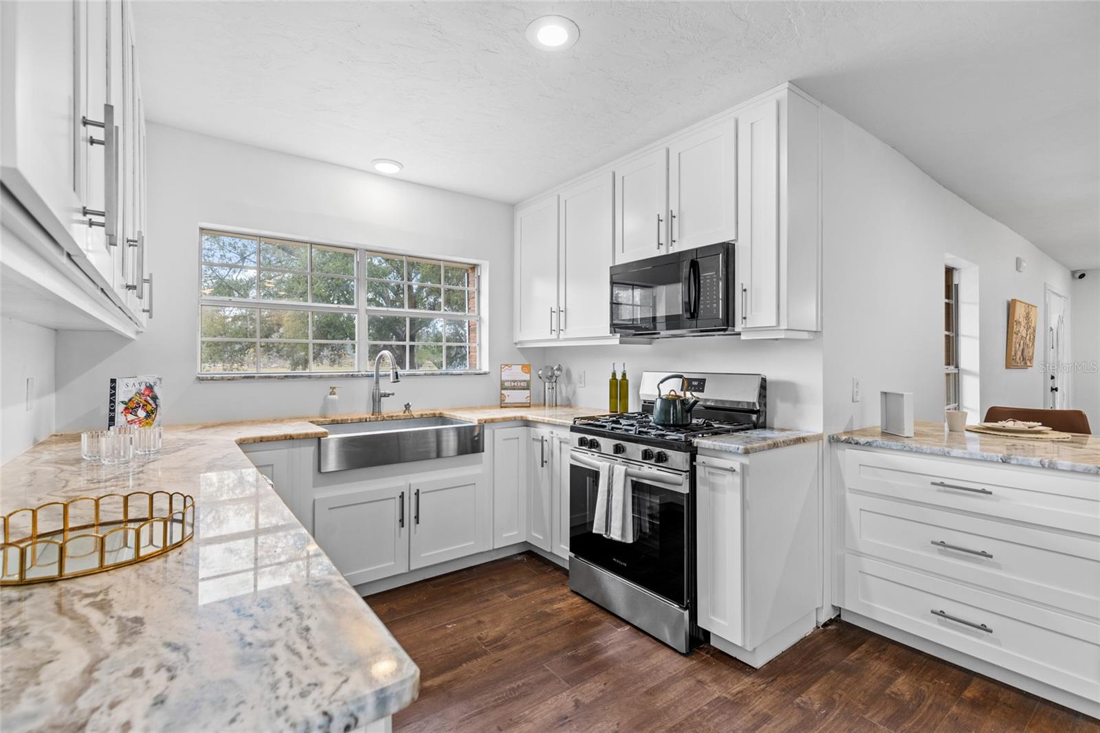 Situated on 6.38 fully fenced and gated acres in High Springs, Florida, this charming 3-bedroom, 2-bathroom renovated country home offers a serene escape just minutes from downtown and I-75. As you drive down the winding driveway, the brick façade and inviting covered front porch draw you in, promising quiet evenings watching the sunset. Inside, the open concept living and dining area welcomes you with its mid-century modern vibe from the warm wood beams overhead and the soft glow of a stately fireplace. The kitchen, thoughtfully updated with shaker cabinetry and sleek quartz countertops, flows seamlessly into a peninsular bar, perfect for casual meals or sipping coffee while enjoying the view of the dining space. The home’s split floorplan offers privacy and ease, with two cozy bedrooms and a bathroom tucked away on one side. The primary suite feels like its own retreat, complete with a walk-in closet and a peaceful en-suite bathroom featuring dual vanities and a soaking tub, ideal for long, relaxed evenings. Beyond the living room, an enclosed sunroom invites you to sit back and enjoy the Florida light in comfort, no matter the season. The two-car garage, just off the kitchen, leads to a spacious bonus room above—an inspiring space for creativity, relaxation, or whatever you dream it to be. Outside, the gazebo stands beside a quiet pond, its rock fountain waiting for someone to bring it back to life. It's a perfect spot to unwind, enjoy nature, or start a fun project—just waiting for your touch. Owner financing is available for qualified buyers! What are you waiting for? Make this home yours today!