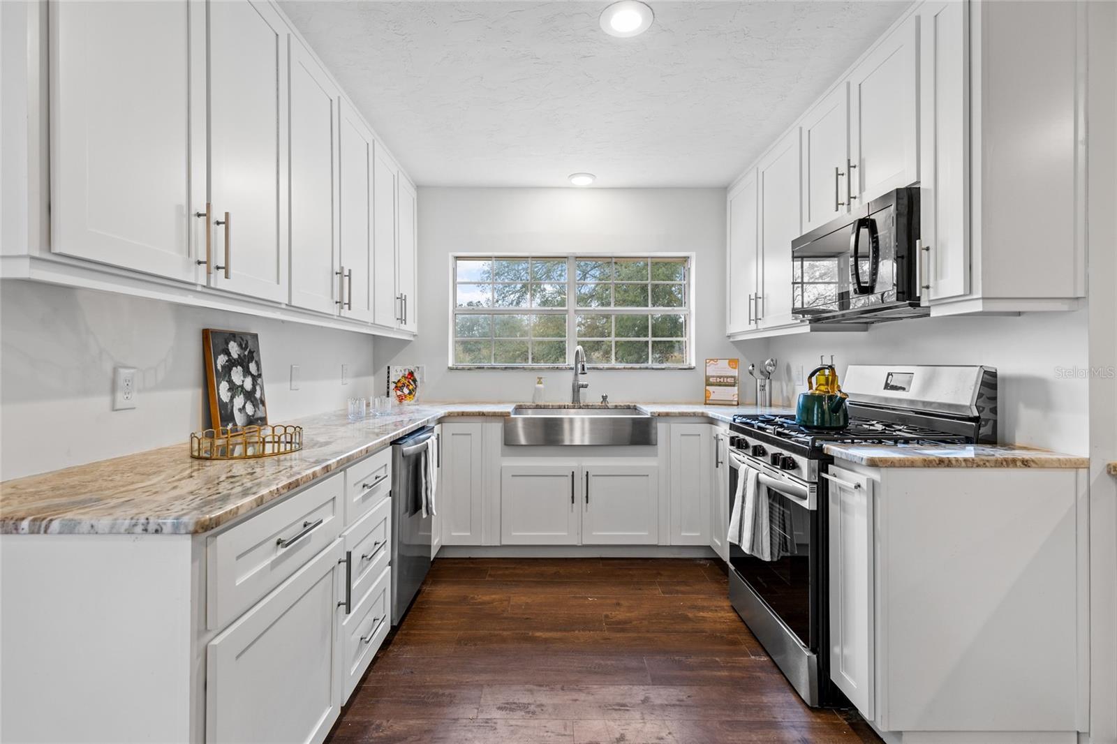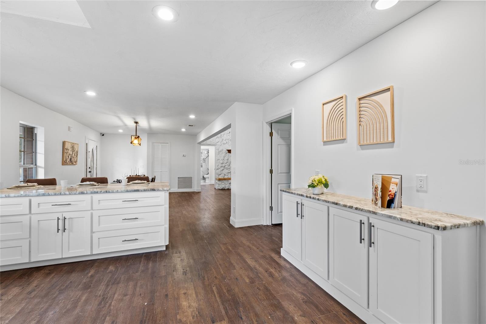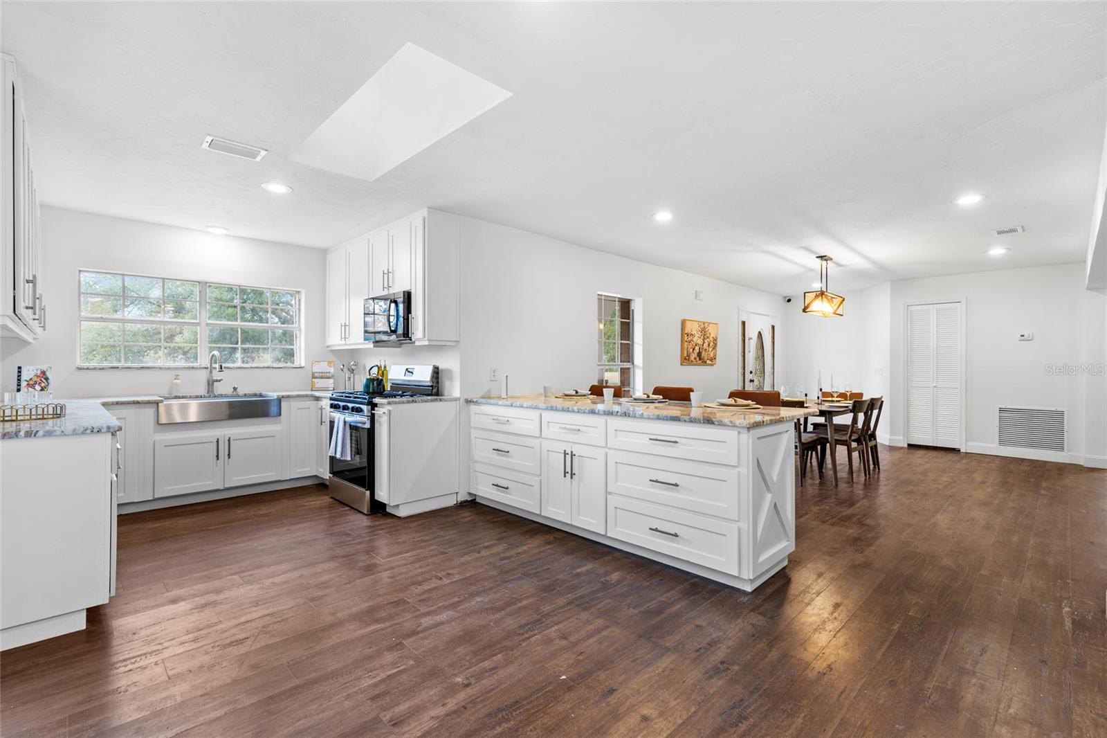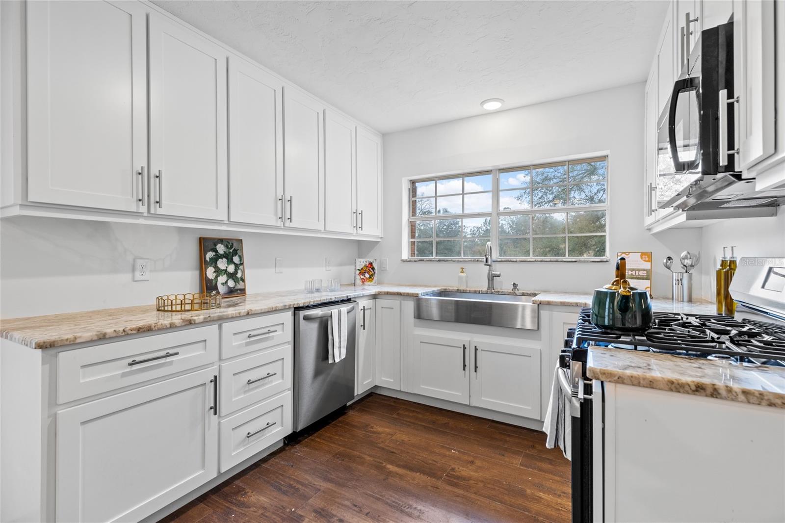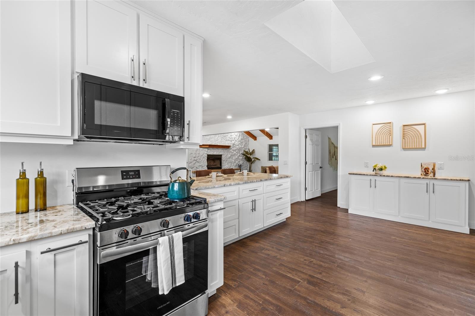 Situated on 6.38 fully fenced and gated acres in High Springs, Florida, this charming 3-bedroom, 2-bathroom renovated country home offers a serene escape just minutes from downtown and I-75. As you drive down the winding driveway, the brick façade and inviting covered front porch draw you in, promising quiet evenings watching the sunset. Inside, the open concept living and dining area welcomes you with its mid-century modern vibe from the warm wood beams overhead and the soft glow of a stately fireplace. The kitchen, thoughtfully updated with shaker cabinetry and sleek quartz countertops, flows seamlessly into a peninsular bar, perfect for casual meals or sipping coffee while enjoying the view of the dining space. The home’s split floorplan offers privacy and ease, with two cozy bedrooms and a bathroom tucked away on one side. The primary suite feels like its own retreat, complete with a walk-in closet and a peaceful en-suite bathroom featuring dual vanities and a soaking tub, ideal for long, relaxed evenings. Beyond the living room, an enclosed sunroom invites you to sit back and enjoy the Florida light in comfort, no matter the season. The two-car garage, just off the kitchen, leads to a spacious bonus room above—an inspiring space for creativity, relaxation, or whatever you dream it to be. Outside, the gazebo stands beside a quiet pond, its rock fountain waiting for someone to bring it back to life. It's a perfect spot to unwind, enjoy nature, or start a fun project—just waiting for your touch. Owner financing is available for qualified buyers! What are you waiting for? Make this home yours today!