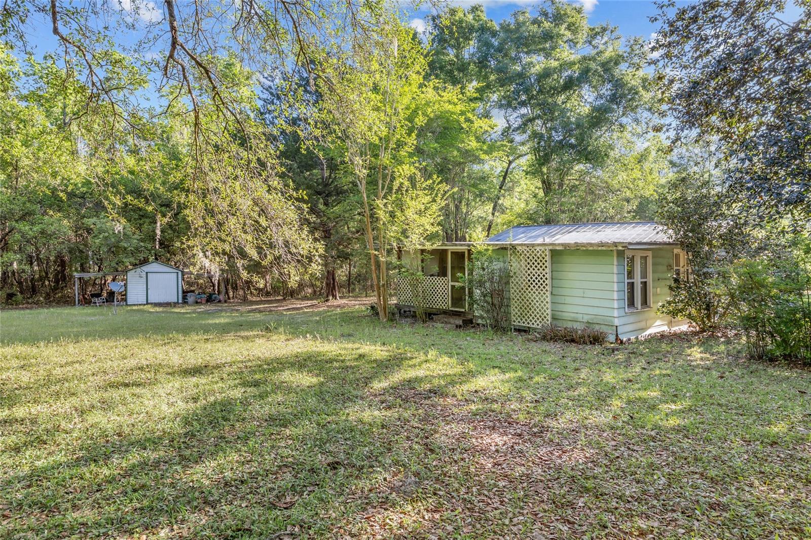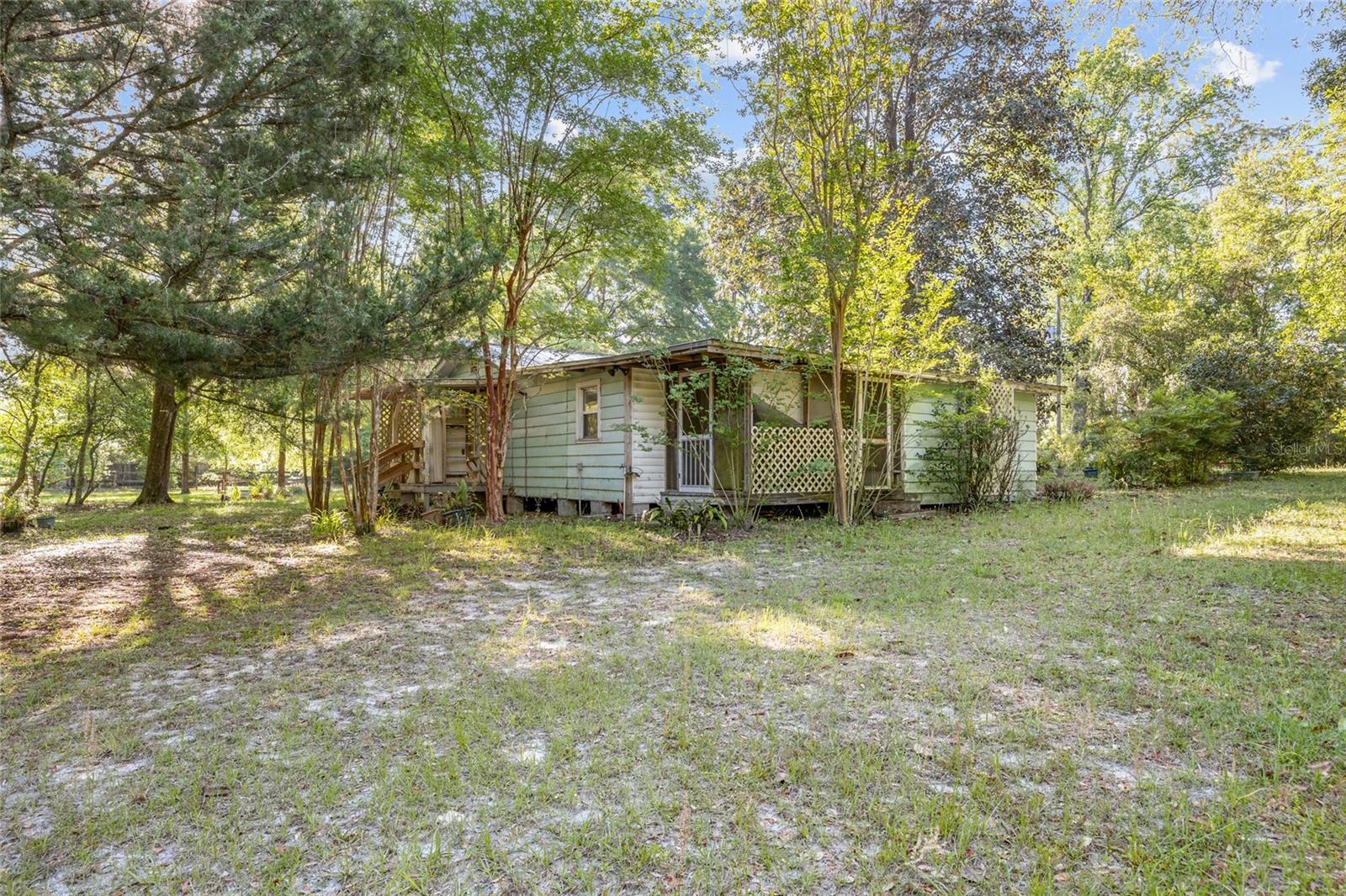 Nestled on a beautifully wooded 2-acre parcel, this delightful 2-bedroom, 1-bathroom home is full of charm, character, and endless possibilities. Whether you’re dreaming of a peaceful homestead or a smart investment, this property is a rare find that truly checks all the boxes. Step inside to discover original hardwood floors that exude warmth and timeless appeal, complemented by spacious screened porches at both the front and back—perfect for savoring your morning coffee or winding down at sunset. The home’s inviting layout offers cozy comfort with room to personalize and make your own. Outside, the land is a nature lover’s dream. Towering oaks, fragrant magnolias, and mature fruit trees—apple, plum, and persimmon—create a tranquil, park-like setting. An outbuilding with a concrete slab and covered overhang provides versatile space for storage, a workshop, or creative pursuits. With no HOA and no deed restrictions, you’ll enjoy the freedom to live as you choose. Ideally located walking distance from the sparkling rivers and natural springs that make this region so special, as well as minutes to downtown High Springs, and I-75 for quick access to Gainesville’s hospitals, universities, and amenities. The Gulf Coast’s sandy shores are less than an hour away. Don’t miss your chance to own a peaceful slice of North Florida paradise—where charm, convenience, and opportunity meet.