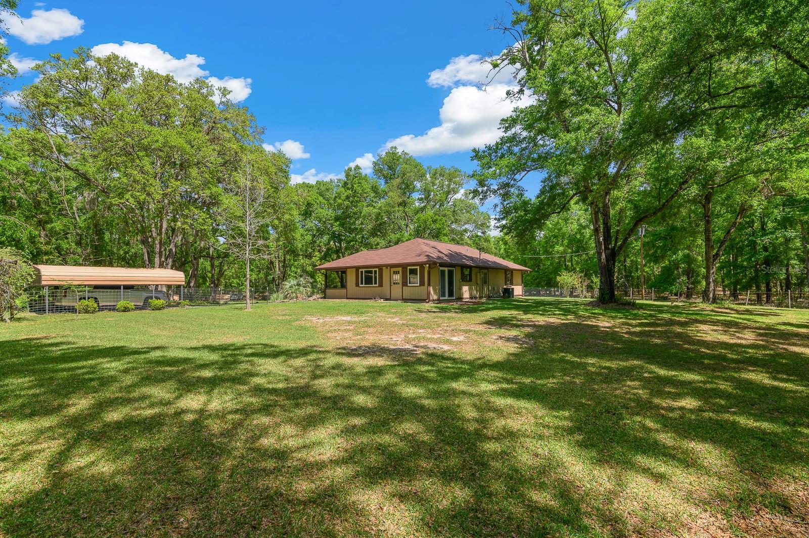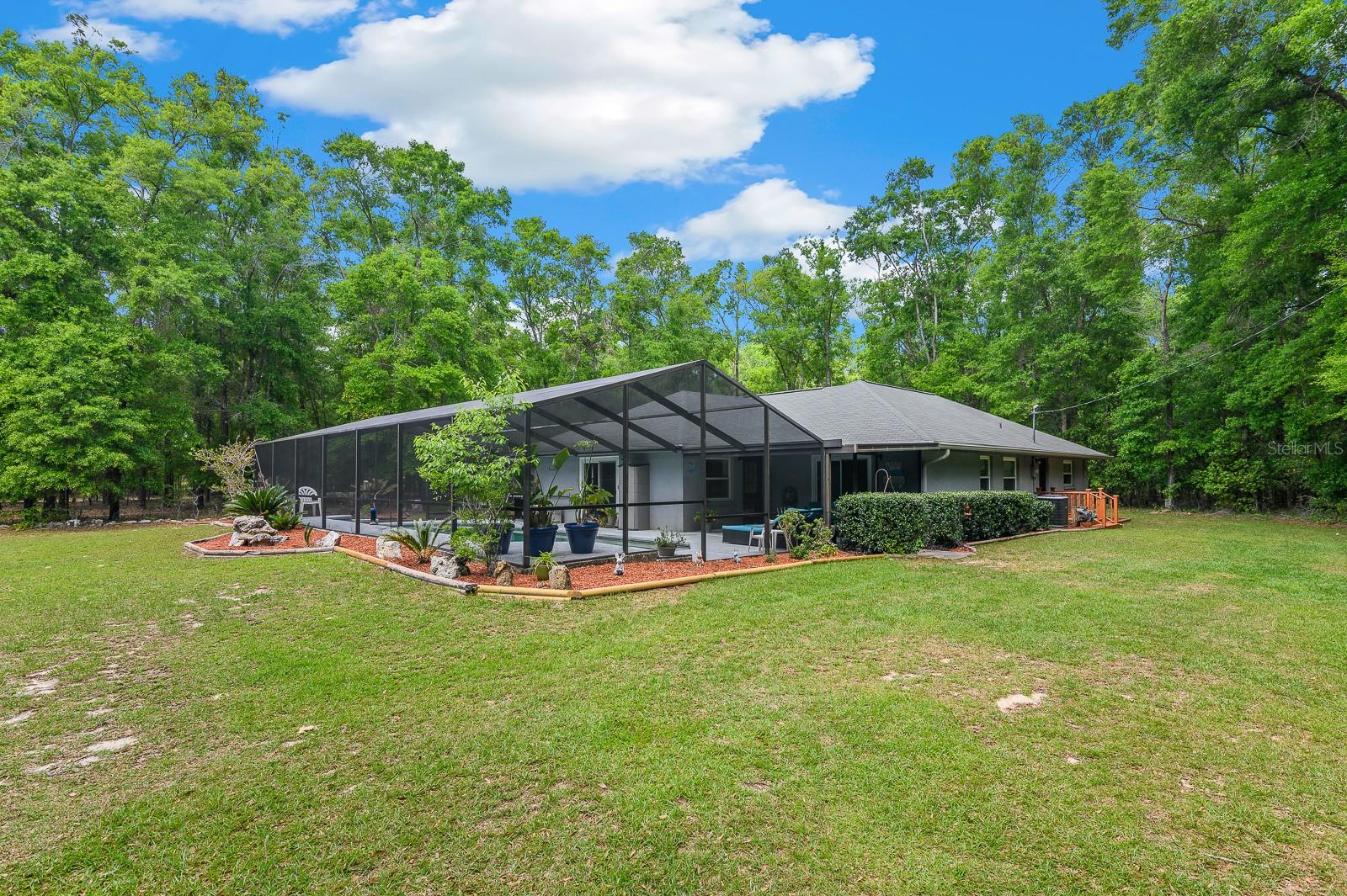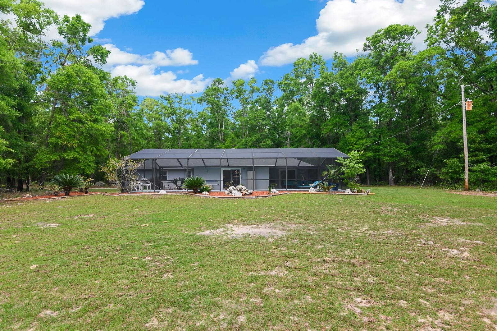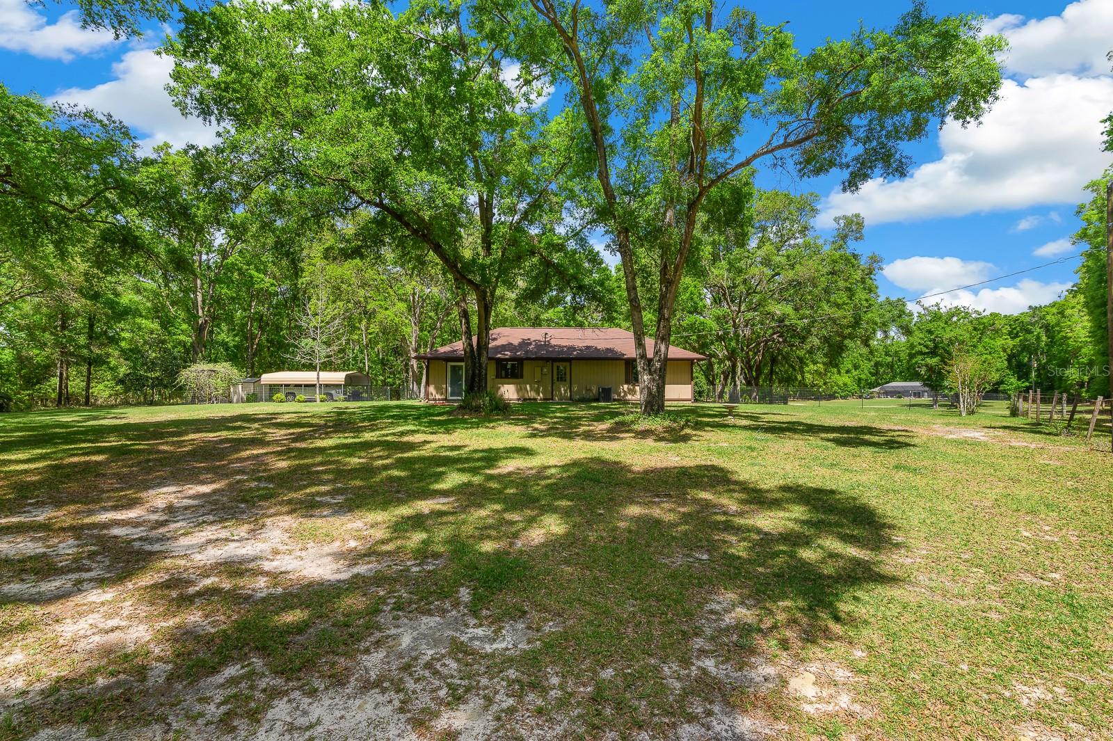 A stunning 18.7 acre multi-generational estate with two homes in High Springs, FL. This is a rare opportunity offering the perfect blend of peaceful living, privacy, and room for endless possibilities as a family property. See video of property in Virtual Tour Link. Featuring two homes on separate parcels (9.37 and 9.33 acres), this shared property offers exceptional value with amenities like the canopy driveway with electric gate, well, barn, and daily visits by deer! 23719 is a spacious 4 bed/2.5 bath (2,438 sq ft), includes updated bathrooms with LVP, oversized bedrooms, updated appliances, tile flooring, 2017 roof, and 2,304 sq ft barn (game room with A/C, workshop and extra storage) and 9.33 fenced acres. The back porch leading to the screen enclosed 45x15ft saltwater pool provides a great space for entertaining, cookouts, morning coffee or watching deer gather in the backyard in the evenings. 23725 is a cozy 2 bed/1 bath (1,152 sq ft), boasts a newer roof (2020), A/C (2017), updated tile shower, engineered hardwood floors, a pond, 2 car carport, 12x12 shed, and a lime rock circle drive with 100+ year-old oaks on either side, all on 9.37 fenced acres. In between the two homes is The Barn that offers two different sections. One door opens to a workshop with plenty of wood working space, storage, and loft. Behind the large barn doors you'll find a set of French doors leading to the "game room". Currently outfitted with a pool table this air conditioned space is perfect for watching all of the games, hosting parties, and more. Right outside of the Barn is a rock lined firepit perfect for everyone to enjoy. The 18.7 acres feature open clearings (see video) for recreation and hobbies, wooded edges for privacy, and no visible neighbors, making it ideal for multi-generational living, agricultural activities, horses, goats, or anything else you can think of. Minutes away from Poe, Blue, and Ginnie Springs. Situated in Alachua County, not City of High Springs to save with lower property taxes. Enjoy the seclusion and privacy with easy access to High Springs, Alachua and Gainesville. Call today to schedule your private tour of this rural estate! Properties are deeded separately allowing for financing separately. Sellers prefer to sell together.