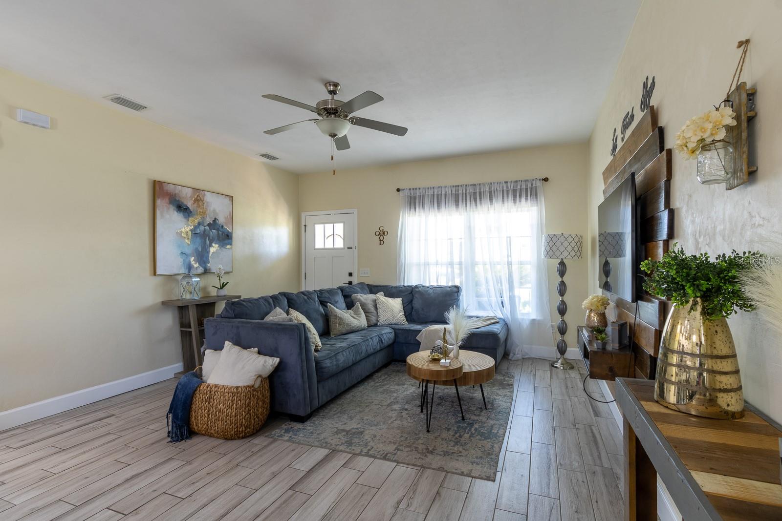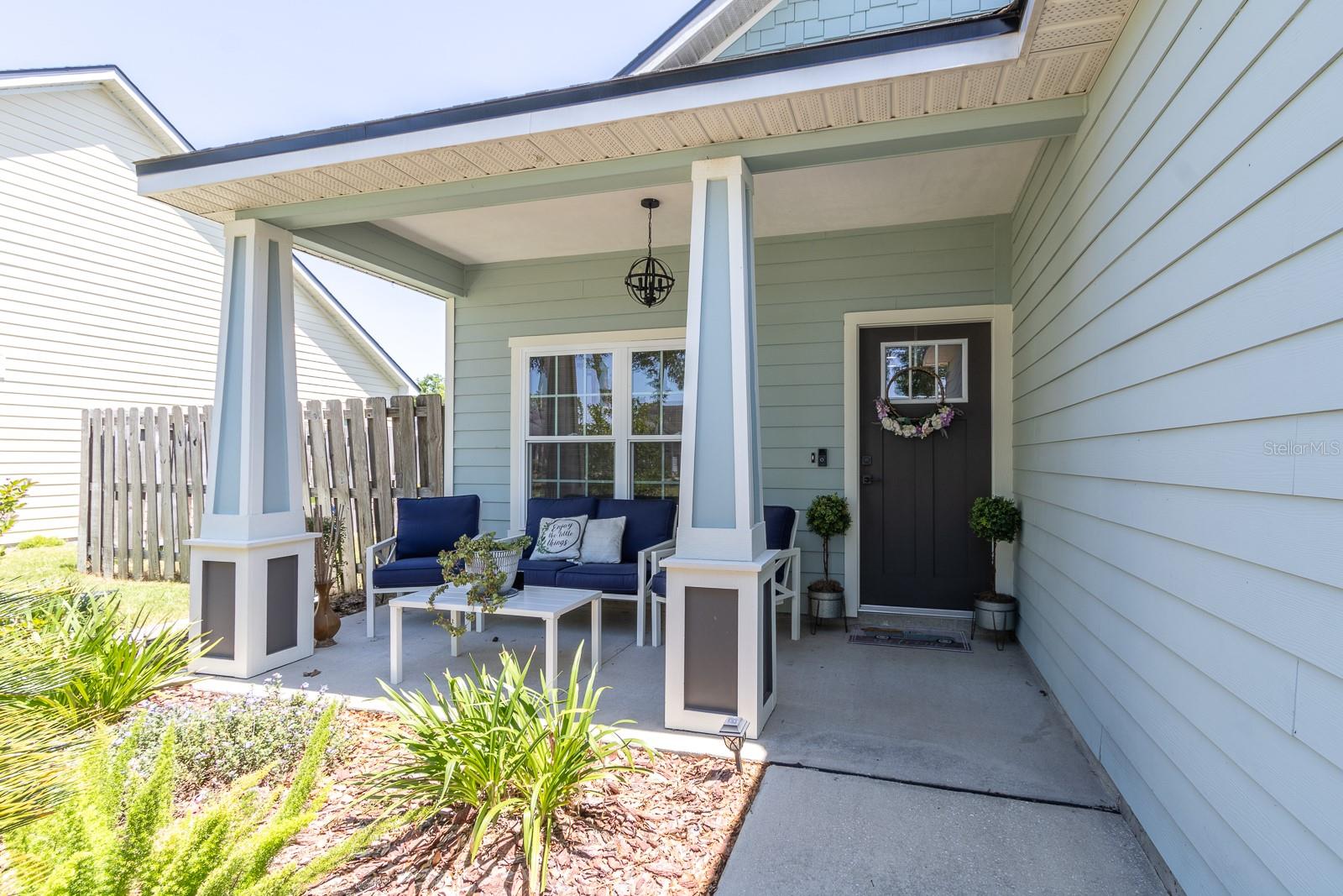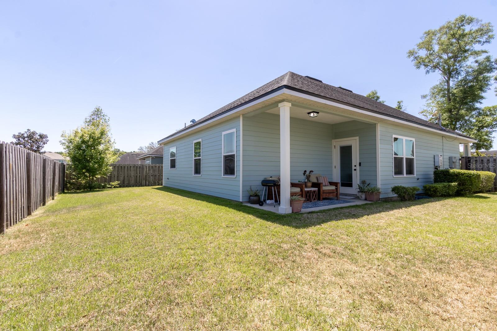 Welcome to this beautifully maintained home, nestled in a charming neighborhood just off the 441 corridor—offering an easy commute to San Felasco Tech City, Progress Park, and North Florida Regional. Step inside and be greeted by an open-concept layout, perfect for hosting family and friends. The spacious kitchen island makes serving buffet-style meals a breeze, while the seamless flow between the living and dining areas creates an inviting atmosphere for entertaining. The owner’s suite is filled with natural light, offering a peaceful retreat to start and end your day. Throughout the home, sun-drenched spaces add warmth and character at every turn. Outside, the fenced backyard showcases a lush, manicured Zoysia lawn—a true testament to the pride of ownership. Spend your mornings with coffee on the front porch or relax on the back patio while neighbors stroll or ride by, enjoying the friendly, laid-back vibe of the community.