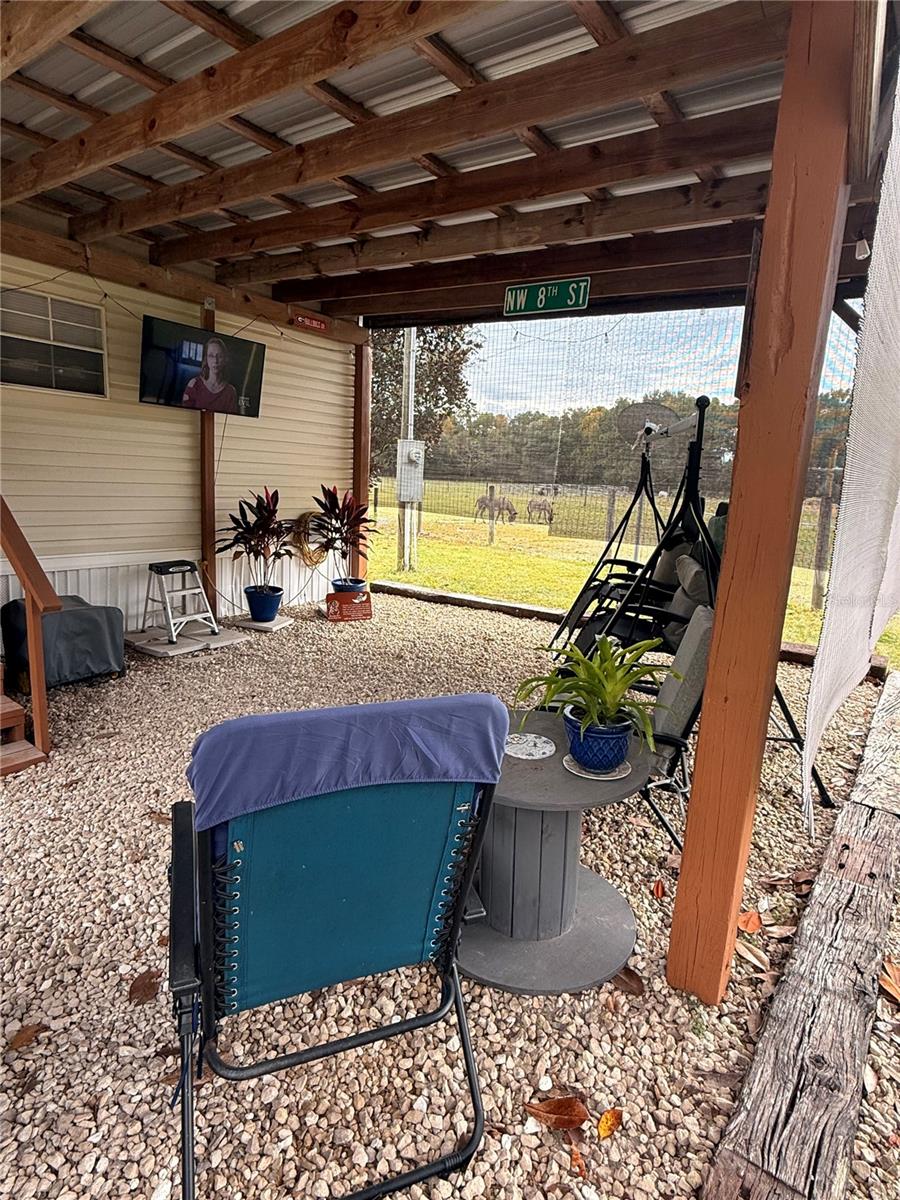 Discover this charming 5-Acre horse property with a pool and outdoor entertainment area. This beautifully maintained 3-bedroom, 2-bathroom home sits on 5 fully fenced and cross-fenced acres and an electric entry gate, perfect for those seeking peaceful country living with modern comfort and an equestrian lifestyle. The roof is less than a year old, the HVAC System is 5 yrs old, and the well and pressure tank are less than 7 years old. Step inside to find a warm and inviting interior featuring an open-concept kitchen and dining area, and spacious living spaces. The primary suite is large enough for a king size bed and is complete with a soaking tub, shower, and dual vanities. The kitchen features a large island, and the stainless refrigerator and glass top stove were replaced 4 years ago. The laundry room with washer and dryer is accessed off the kitchen. Outside, enjoy endless relaxation and fun with a sparkling above-ground pool purchased in 2023 that has an upgraded sand filter and shade sail. You’ll love spending time on your large front covered porch or outdoor entertainment area with firepit—perfect for hosting gatherings or unwinding while enjoying scenic views of the surrounding pastureland or watching the game. For horse enthusiasts, the property comes with fencing, cross-fencing, and a run-in shelter, providing safe and convenient accommodations for your equine companions. There are two sheds for ample storage and plenty of room for additional structures, gardens, or other livestock. This home is ideally situated 5 miles to High Springs, 11 miles to Alachua, and 21 miles to Gainesville. The best part is you’ll be close to the Gainesville and Alachua County amenities with the added benefit of Columbia County taxes.