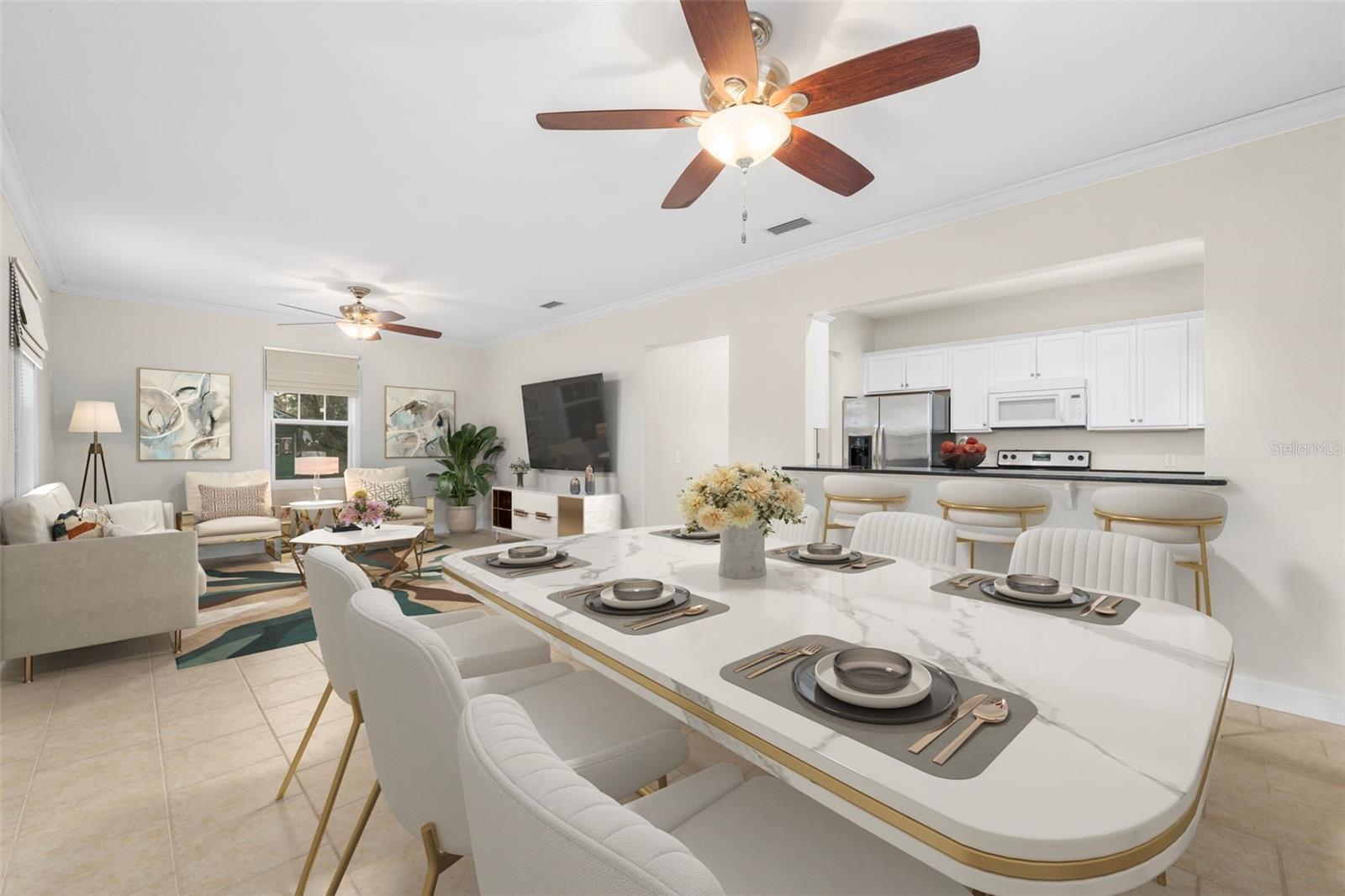 One or more photo(s) has been virtually staged. This move-in ready 3-bedroom, 2-bath home is located at 23187 NW 179th Place in High Springs and offers a bright, open feel throughout. The kitchen features stainless steel appliances, white cabinetry, a built-in microwave, and granite countertops, along with a charming pass-through opening and bar seating that flows seamlessly into the living area—ideal for everyday living and entertaining. Durable tile flooring runs through the main living spaces, complemented by ceiling fans throughout for added comfort. The home also features a new A/C system replaced in 2025. The primary suite includes a spacious walk-in closet and a private bath with a stand-up shower and granite finishes. Enjoy relaxing mornings or evenings on the covered front porch with classic columns. With a welcoming layout and move-in ready condition, this home offers an easy, comfortable place to settle in and enjoy.