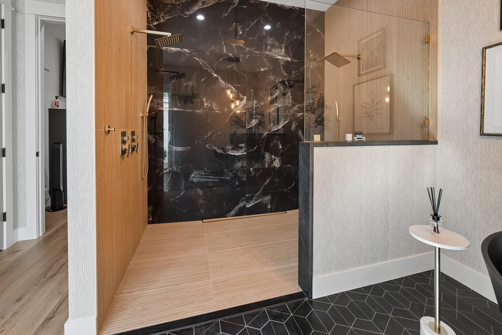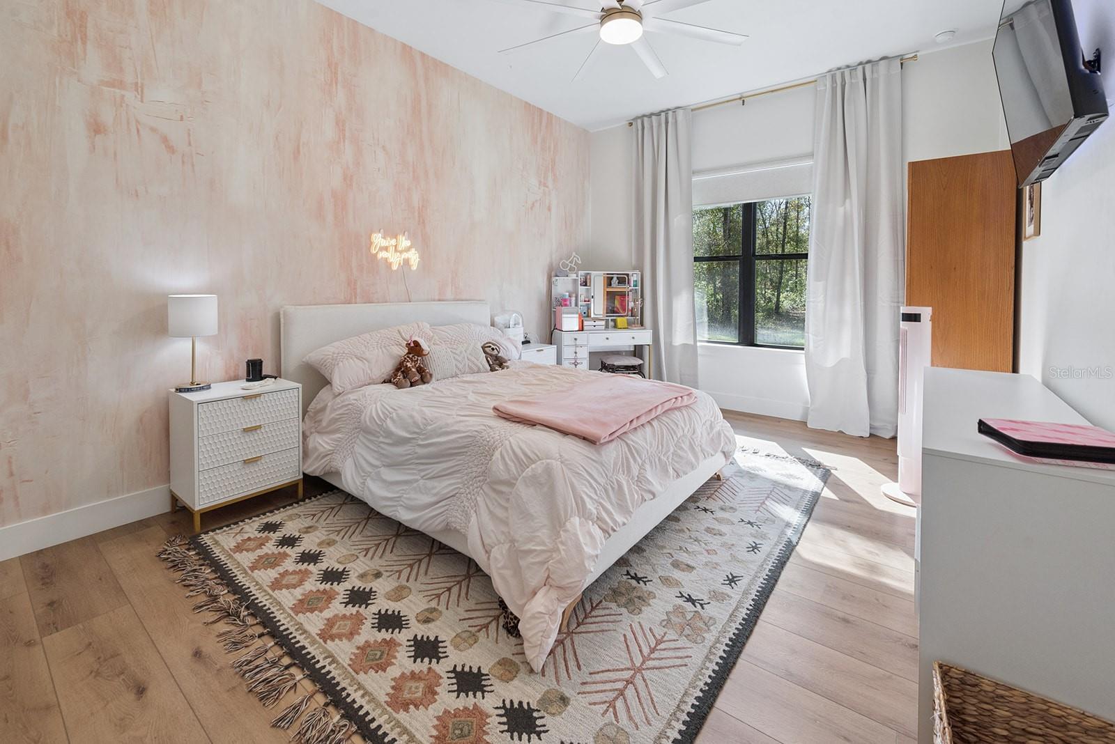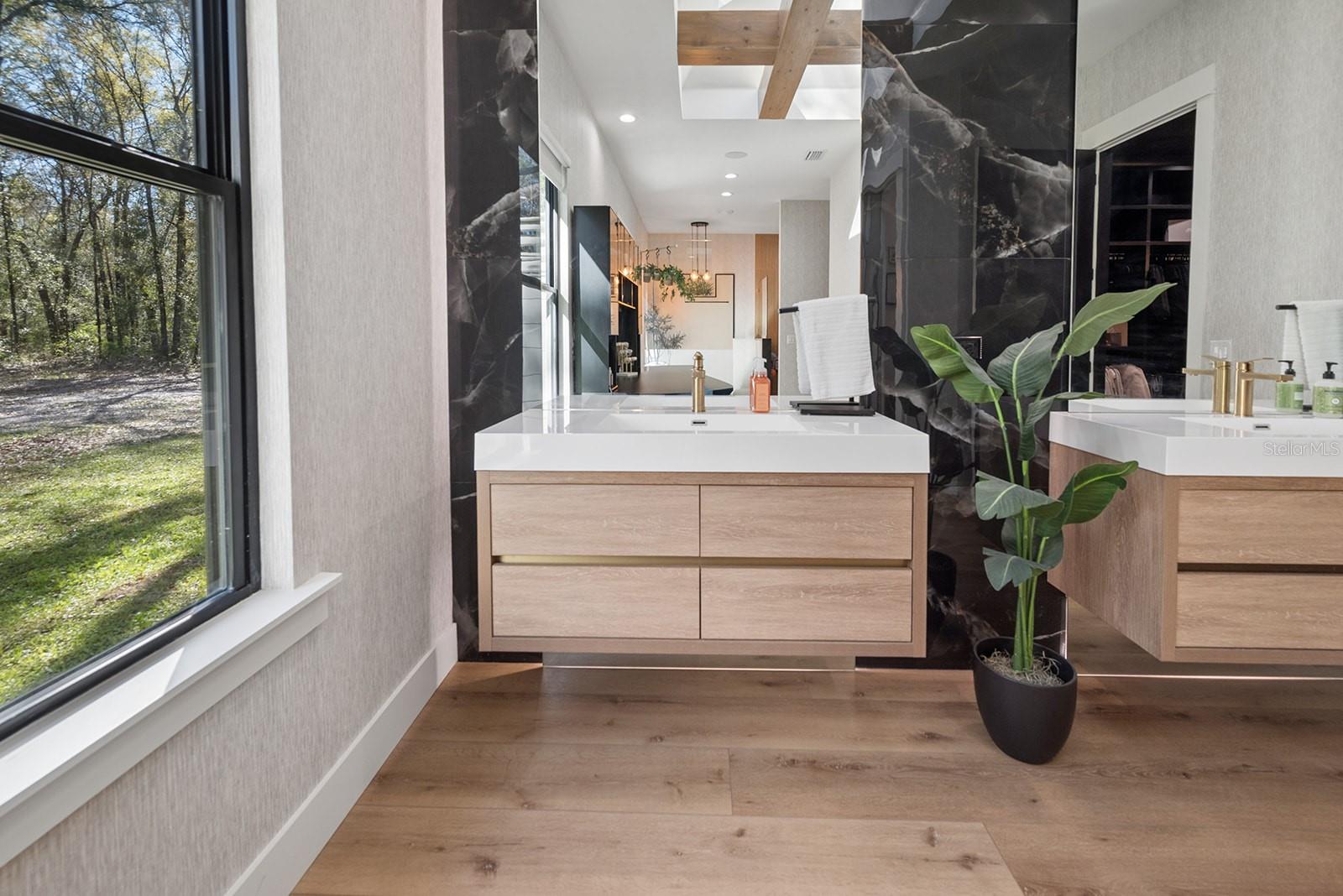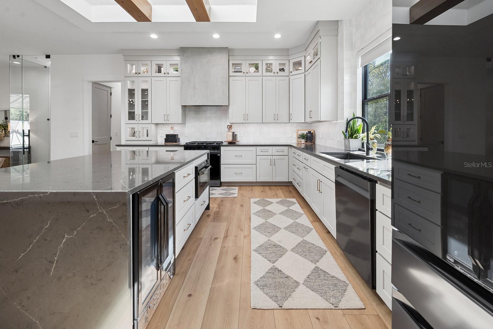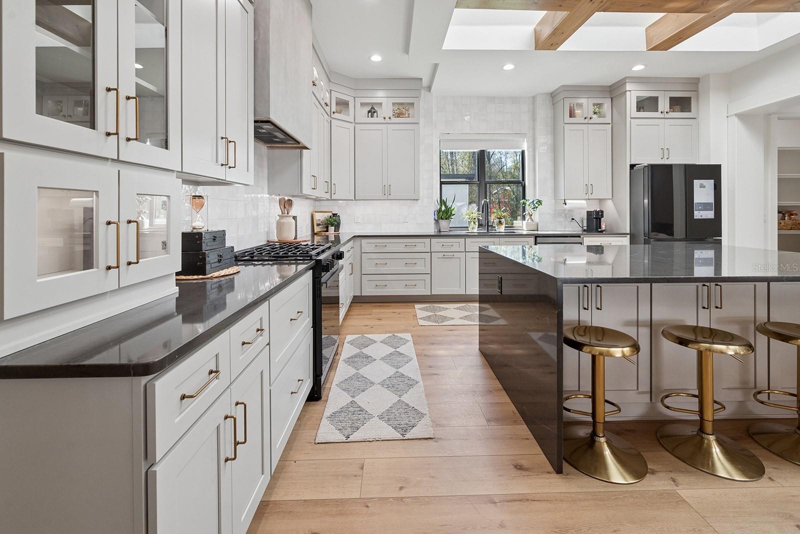 Welcome to your private retreat in High Springs, where modern luxury meets peaceful country living on 5 beautifully maintained acres. This stunning 4-bedroom, 3-bath home is tucked behind a gated entrance, offering both privacy and convenience in a highly desirable location. Step inside to an open-concept floor plan designed for both everyday living and entertaining. Expansive sliding glass doors completely open to the pool area, seamlessly blending indoor and outdoor spaces. The kitchen and dining area are truly the heart of the home, featuring a striking glass-enclosed wine display, a large skylight that fills the space with natural light, and gorgeous exposed beams over the island that add warmth and character. The living room offers a cozy gas fireplace, creating the perfect space to relax and unwind. The outdoor area is nothing short of exceptional. Enjoy a screened-in pool complete with a built-in hot tub, outdoor shower, and a fully equipped summer kitchen featuring its own fireplace and TV—ideal for hosting gatherings year-round. Whether entertaining guests or enjoying a quiet evening, this space is designed to impress. The spacious primary suite is a true sanctuary, featuring a luxurious soaking tub, dual-head walk-in shower, floating vanities, and an oversized walk-in closet with custom built-in shelving and a large center island for additional storage, all conveniently connected to the laundry room. Automatic blinds and a whole-home surround sound system enhance comfort and convenience throughout the home and pool area. Additional upgrades include a whole-house generator, a 500-gallon underground propane tank, and an automatic irrigation system, ensuring both efficiency and peace of mind. Every detail of this home has been thoughtfully designed and upgraded to offer a perfect blend of style, comfort, and functionality. This one-of-a-kind property offers the best of Florida living—space, privacy, and high-end finishes—all in a prime location