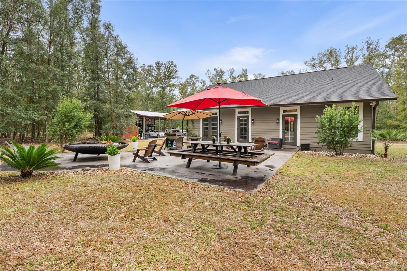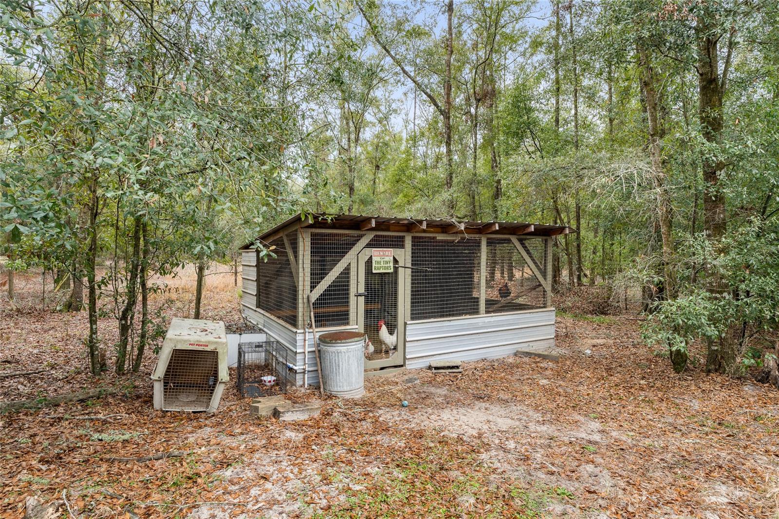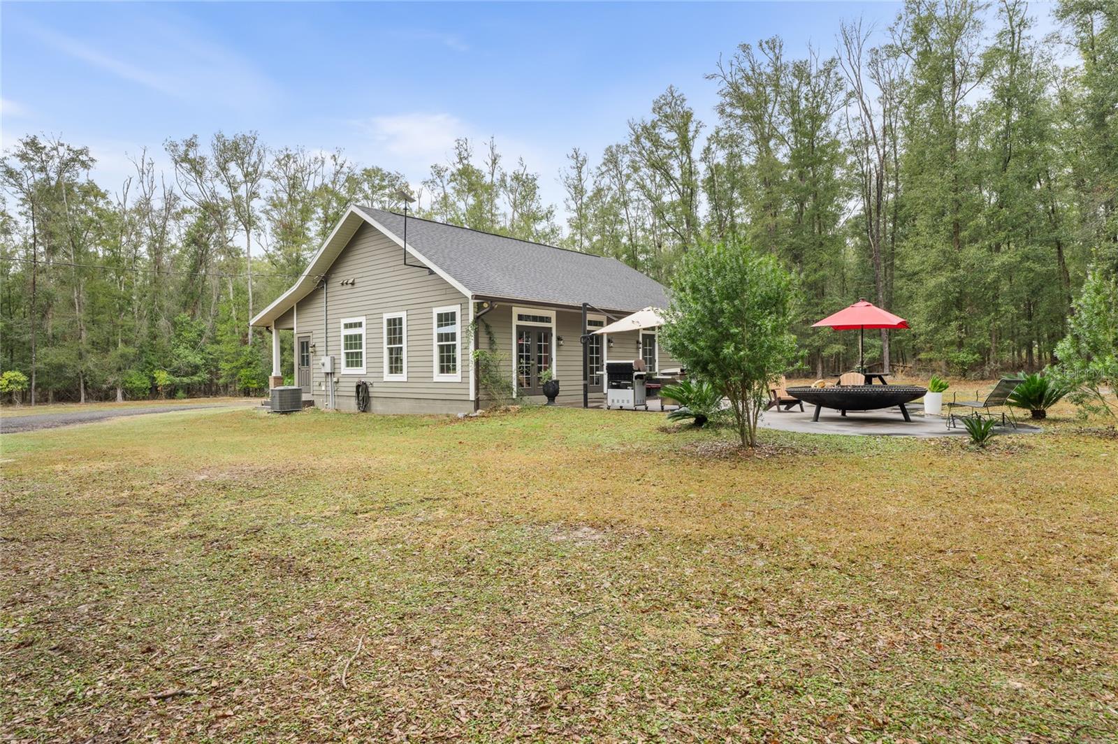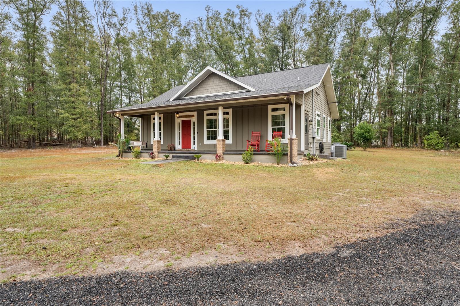 Beautiful 3 bedroom 2 bathroom home, pole barn with workshop potential, chicken coop, dog kennel/run all on a fully fenced 5 acre private piece of land. Located at the end of a quaint cul-de-sac, you're first greeted with an electric powered gate for added security and an asphalt driveway. Perfect location that is less than 15 minutes to i75 and less than 5 minutes to downtown High Springs! Kitchen features upgraded quartz countertops, new sink, and induction cooktop. Continuous laminate wood flooring and interior painted makes this house feel fresh and modern. Most furniture can be conveyed, please ask for more details if interested. Primary bathroom features a large tub, walk-in shower, and dual sinks. Wonderful back patio for entertaining and cozy bonfires as well as a front porch to drink your morning coffee on.