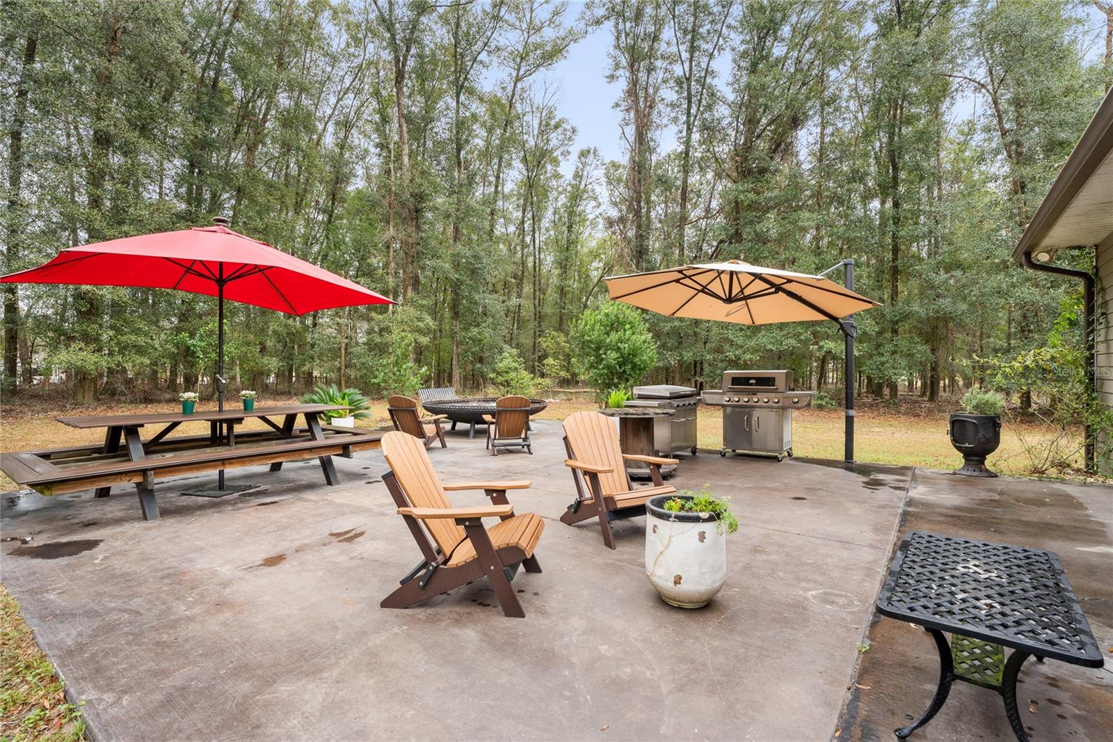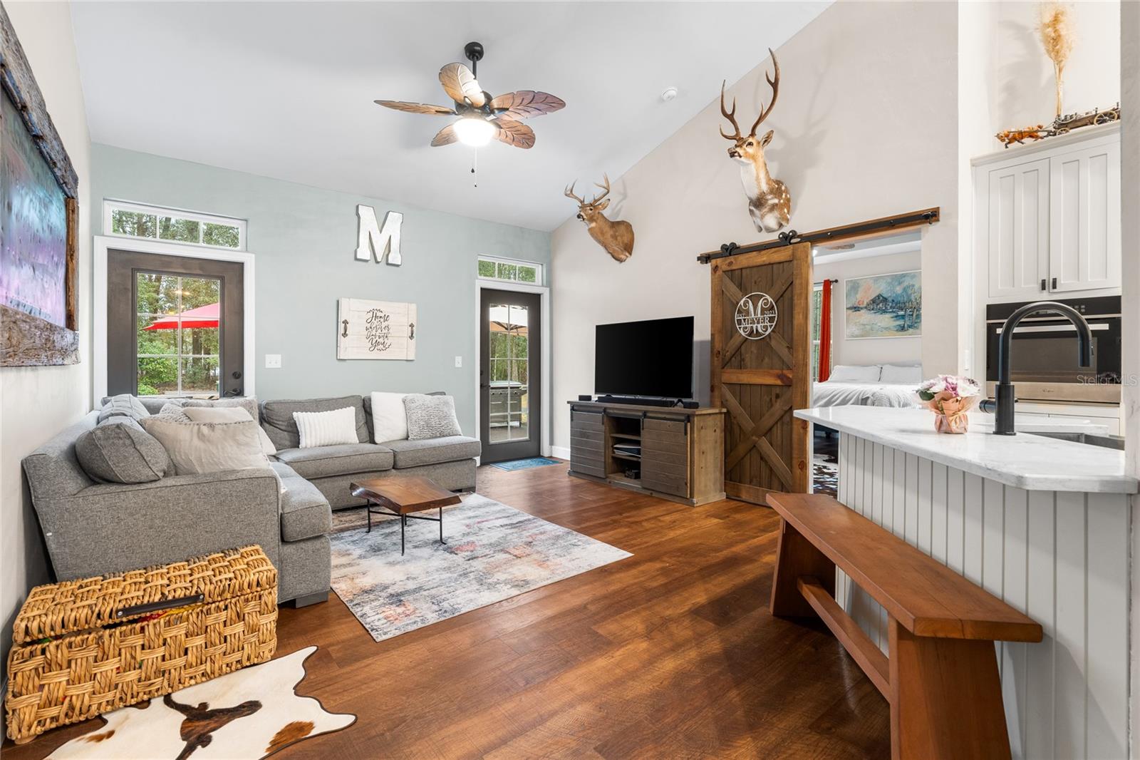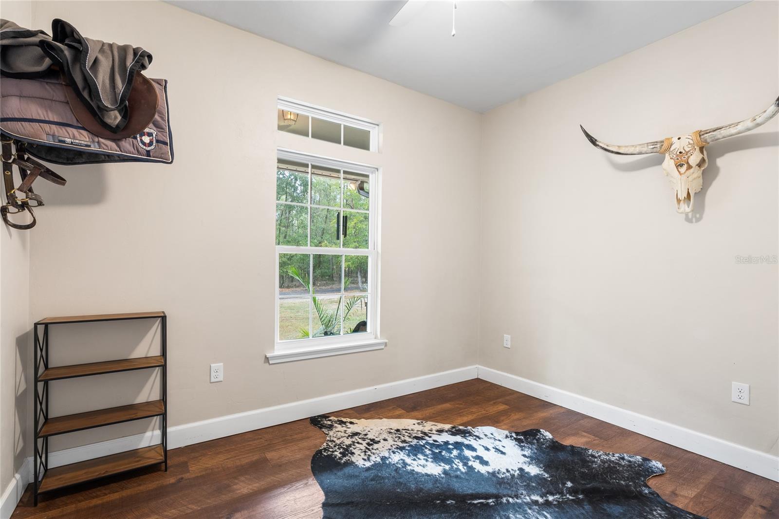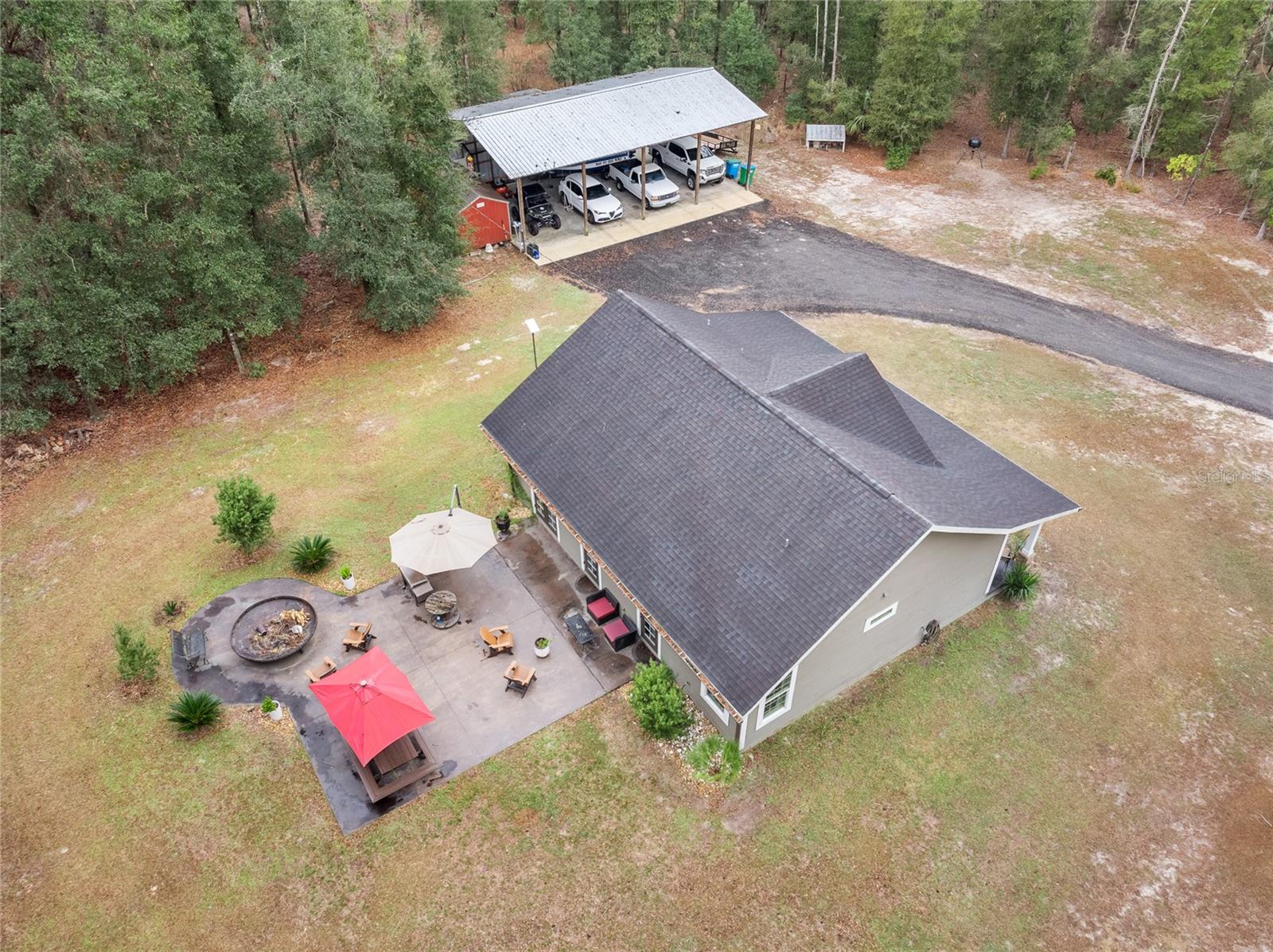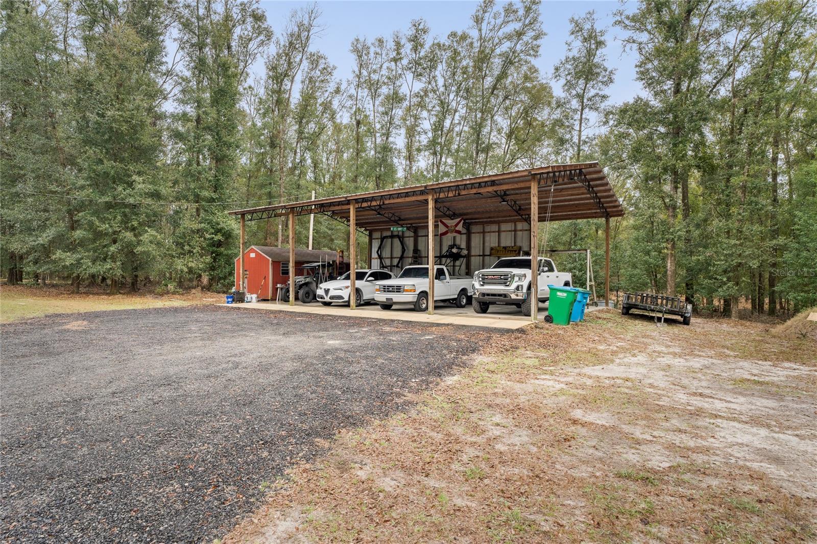 Beautiful 3 bedroom 2 bathroom home, pole barn with workshop potential, chicken coop, dog kennel/run all on a fully fenced 5 acre private piece of land. Located at the end of a quaint cul-de-sac, you're first greeted with an electric powered gate for added security and an asphalt driveway. Perfect location that is less than 15 minutes to i75 and less than 5 minutes to downtown High Springs! Kitchen features upgraded quartz countertops, new sink, and induction cooktop. Continuous laminate wood flooring and interior painted makes this house feel fresh and modern. Most furniture can be conveyed, please ask for more details if interested. Primary bathroom features a large tub, walk-in shower, and dual sinks. Wonderful back patio for entertaining and cozy bonfires as well as a front porch to drink your morning coffee on.