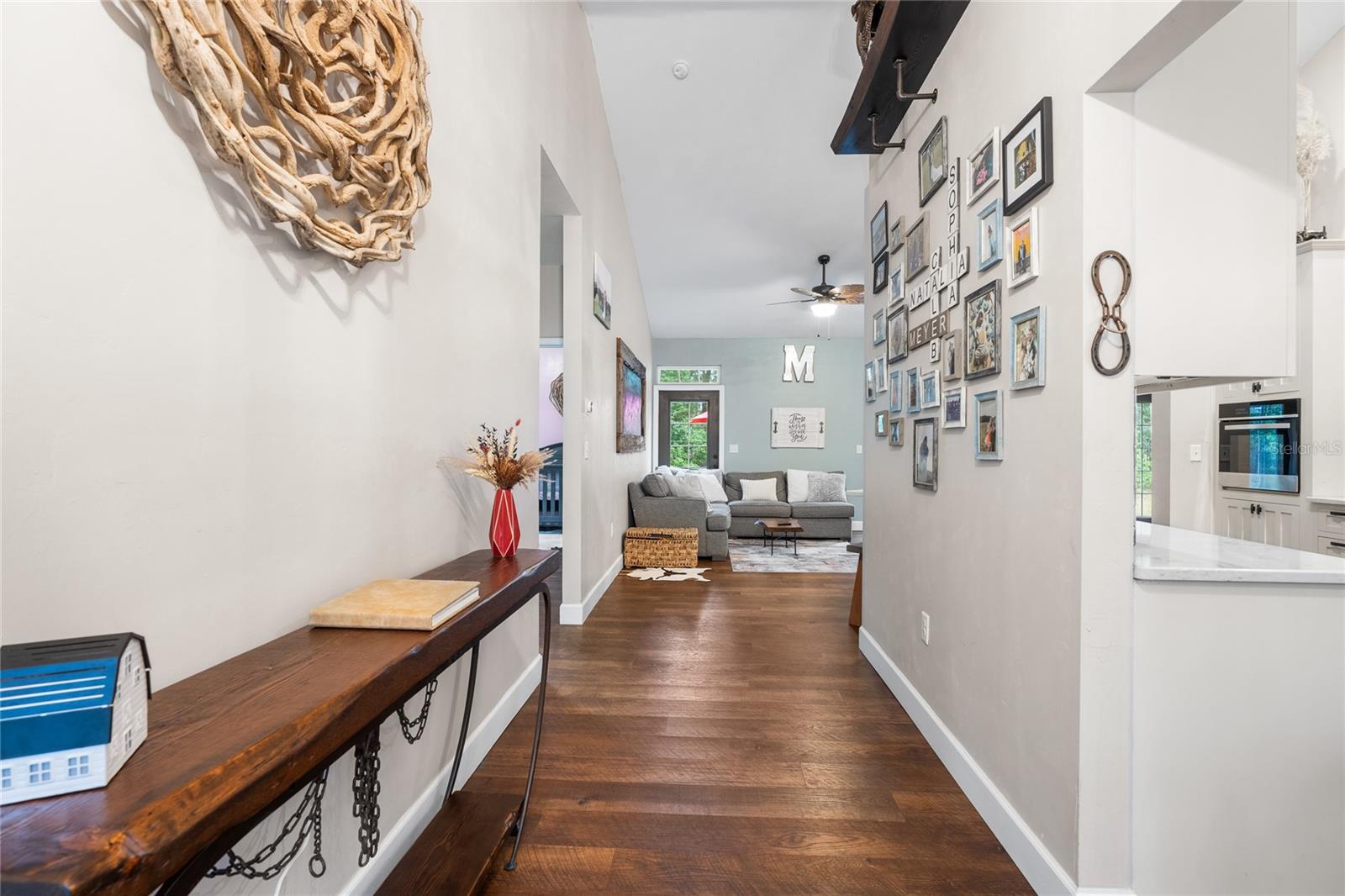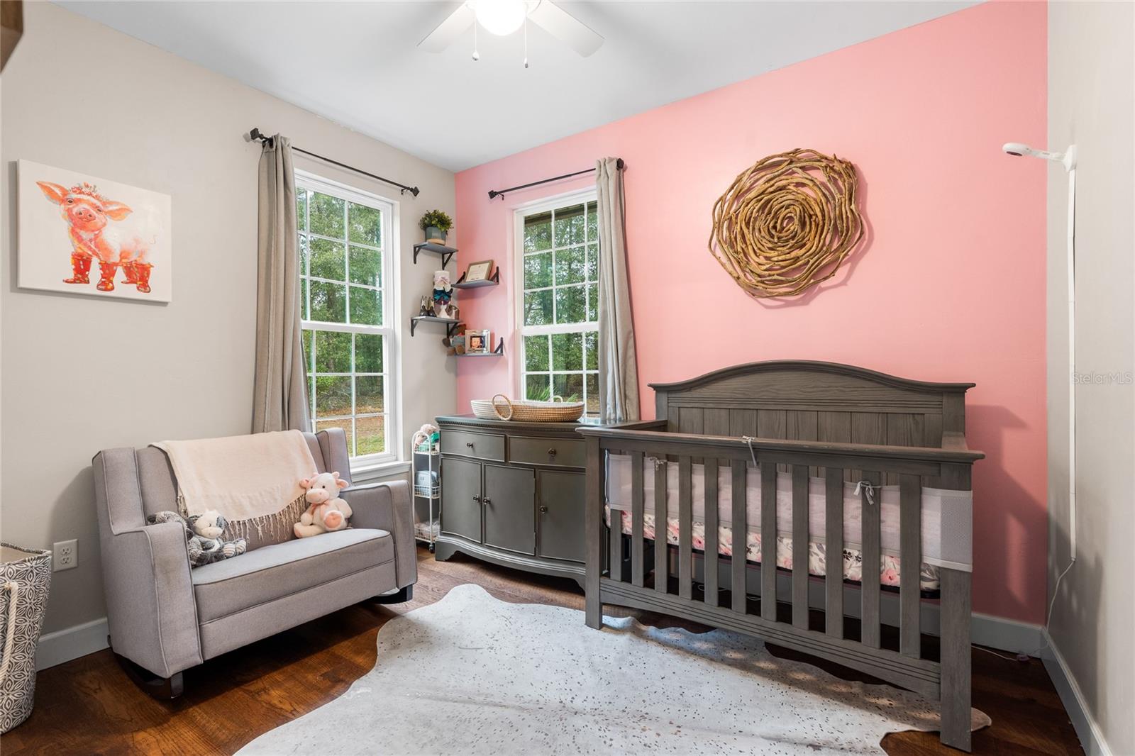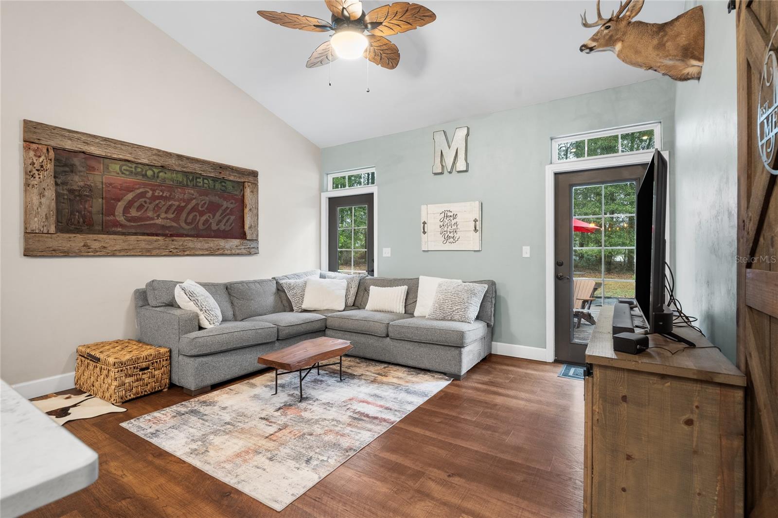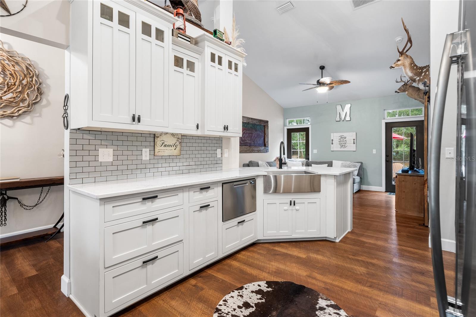 Beautiful 3 bedroom 2 bathroom home, pole barn with workshop potential, chicken coop, dog kennel/run all on a fully fenced 5 acre private piece of land. Located at the end of a quaint cul-de-sac, you're first greeted with an electric powered gate for added security and an asphalt driveway. Perfect location that is less than 15 minutes to i75 and less than 5 minutes to downtown High Springs! Kitchen features upgraded quartz countertops, new sink, and induction cooktop. Continuous laminate wood flooring and interior painted makes this house feel fresh and modern. Most furniture can be conveyed, please ask for more details if interested. Primary bathroom features a large tub, walk-in shower, and dual sinks. Wonderful back patio for entertaining and cozy bonfires as well as a front porch to drink your morning coffee on.