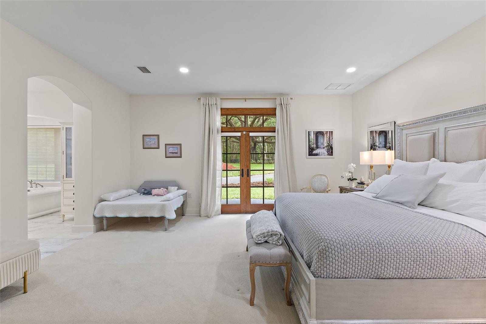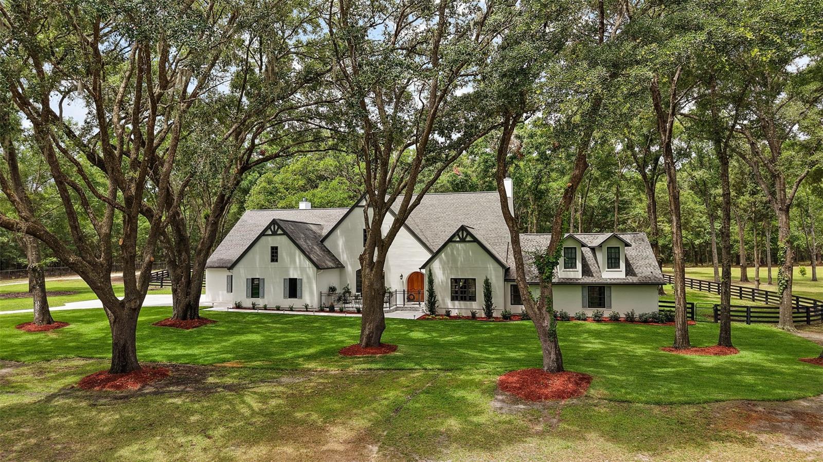 Where Nature and Culture Meet! Modern French Farmhouse Retreat tucked away in the serene landscape of North Florida, this home offers a stunning fusion of luxurious charm and contemporary elegance. Set on a picturesque 13-acre estate, the property is graced with towering oak trees and sweeping lawns that create an enchanting, timeless backdrop. A formal entry gate, and long winding, tree-lined, driveway leads to the residence—a beautifully crafted home with a classic stucco façade, steep gabled roof, and charming dormer windows. The french courtyard (porche avant) welcomes you to sit and enjoy the breathtaking landscape before entering through the custom front door of the home. Once inside, the design balances warmth with sleek, modern finishes. The open-concept layout includes a sun-drenched living room with a fireplace, spacious dining area with extraordinary lighting, and a gourmet kitchen outfitted with premium stainless steel appliances, granite countertops, custom cabinetry, walk-in custom designed pantry, and a generous center island—perfect for both everyday living and entertaining. Even the meticulous, newly designed laundry/mud room will delight you! The home features four well-appointed bedrooms, three and a half bathrooms and an office.The first-floor primary suite with fireplace and french doors serves as a private retreat, offering serene views, a luxurious en-suite bathroom with porcelain tile floors and dual vanities, an elegant tub, detailed walk-in closet, and a roman walk-in spa shower. A separate, first floor area of the home also provides an in-law suite that adds flexibility and comfort for guests or extended family, complete with bedrooms, an exquisite bathroom, and private living and eating area. Perfect for an art studio or creative corner - you will be awed by the design and aesthetics of this lovely area of the home. A spacious laundry room with 15 ft counters, detailed closets and cabinets; an exquisite 1/2 bath for guests, as well as walk-in custom designed pantry are all on the first floor. The upstairs is equally magnificent with two bedrooms, a classic and neutral bath, an oversized bonus room for storage or work out room, and a library/reading nook. The spacious three car garage has epoxy floors, and has been meticulously maintained, as well as all new HVAC systems, hot water heaters, and service areas. Outdoors, the property invites relaxation and recreation. From the moment you lay eyes on the beautiful landscaping and aerated pond with fountain, you will be mesmerized with this estate. Enjoy alfresco dining on the screened rear lanai while enjoying the fireplace, explore the expansive grounds, or take advantage of the wooden outbuilding for storage, equestrian pursuits or farming. The ancient 300 year old oaks that frame the estate offer a tranquil setting ideal for walks, picnics, and peaceful reflection. New fencing around the entire perimeter of the 13+ acre estate allows pets and livestock to roam the majestic setting with privacy and security. This exceptional North Florida retreat seamlessly combines French-inspired sophistication with the natural beauty of its surroundings—an idyllic haven for those seeking luxury, privacy, and a connection to nature. Convenient to shopping in Newberry and Gainesville, or for events at the University of Florida and local museums and gardens, this home will perfectly align with your lifestyle and needs.