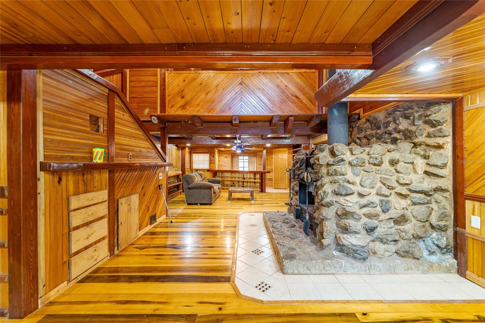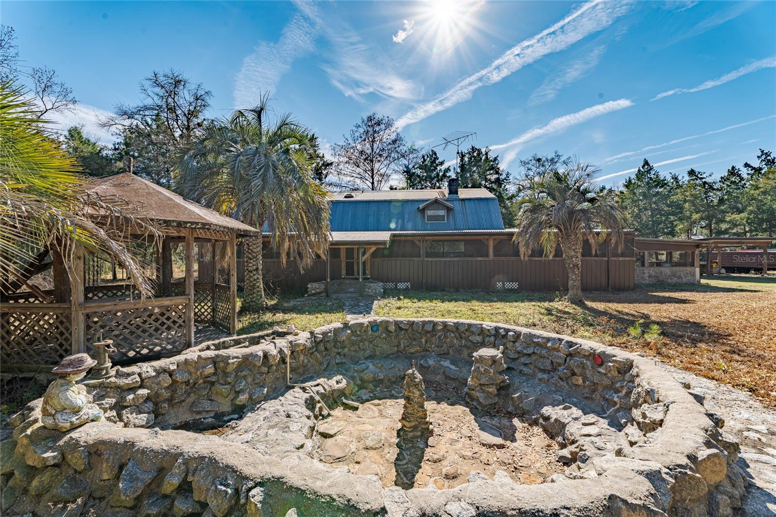 Welcome to 11053 Mulberry Landing Annex in Hilliard, a truly one-of-a-kind property offering unmatched versatility, space, and functionality—ideal for multigenerational living, hobbyists, small business owners, or anyone seeking room to live, work, and entertain. The main residence offers approximately 2,860 square feet of thoughtfully designed living space featuring 4 bedrooms and 3 full bathrooms, a full kitchen, and an interior laundry room. Anchoring the main living area is an oversized river rock fireplace, creating a striking focal point and a warm, inviting atmosphere. The home also features a custom river rock waterfall in the florida room and a jacuzzi, delivering a spa-like retreat right inside the home. Attached to the main home by the carport is a separate additional living unit totaling approximately 588 square feet, complete with 1 bedroom, 1 full bathroom, its own kitchen, and laundry—ideal for extended family, guests, rental income, or a private in-law suite. Vehicle and workspace capacity are exceptional. In addition to the 2-car attached carport, the property features a massive detached 4-car garage and workshop totaling approximately 3,419 square feet. This impressive structure includes vehicle lifts, a bathroom, a laundry room, and extensive storage, making it perfect for mechanics, collectors, contractors, or serious hobbyists. Designed for entertaining and outdoor living, the property boasts a fully equipped outdoor kitchen featuring four large industrial-size grills and smokers, along with seating for eight, creating the perfect setup for gatherings, events, or weekend cookouts. The outdoor experience continues with a private pond, complete with a dock featuring a spacious seating area for eight people and stairs providing direct access for launching or enjoying a boat on the pondan ideal setting for relaxing, fishing, or unwinding at the end of the day. Additional highlights include three RV hookups for guests or recreational use, as well as a separate two-story structure currently used as a chicken coop, offering even more flexibility for agricultural use, storage, or creative repurposing. This property delivers a rare combination of residential comfort, multigenerational or income potential, expansive utility space, and outdoor amenities, all in one remarkable setting. Opportunities like this are seldom availableschedule your private showing to fully appreciate everything this unique property has to offer.