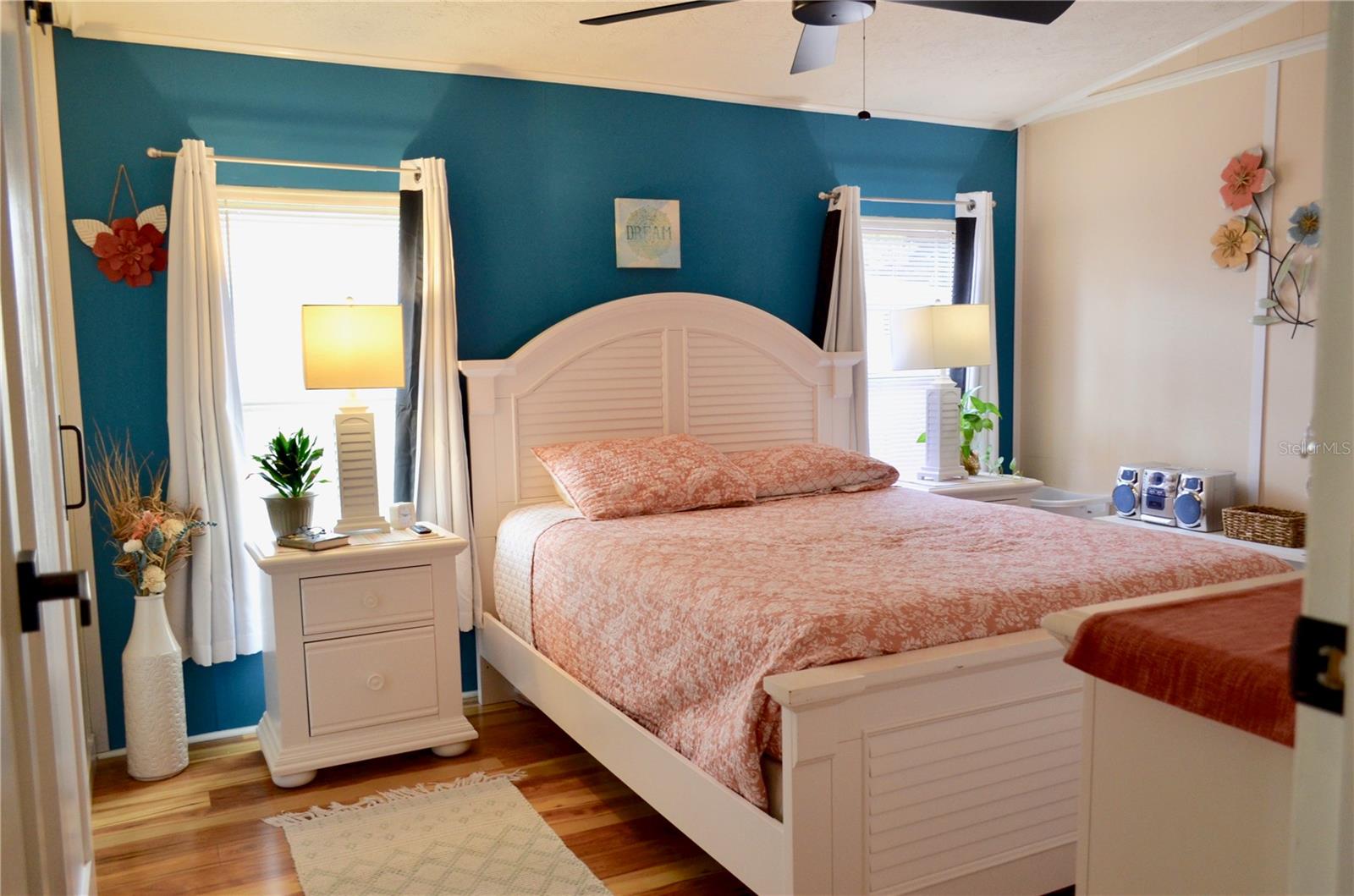 Welcome to this beautiful home in the established 55+ Cambridge community! This home has many updates throughout including HVAC (2023), water heater (2024), tie downs (2019), interior and exterior paint (2022), interior door, fixtures, ceiling fans, laminate flooring, metal roof (2014) and so much more!! This section of the community even allows RVs and boats - retirement at it's finest! You're nestled away in a quiet community, yet just minutes away from your beautiful dog-friendly beach and Scooters... best neighborhood restaurant and bar in town!!