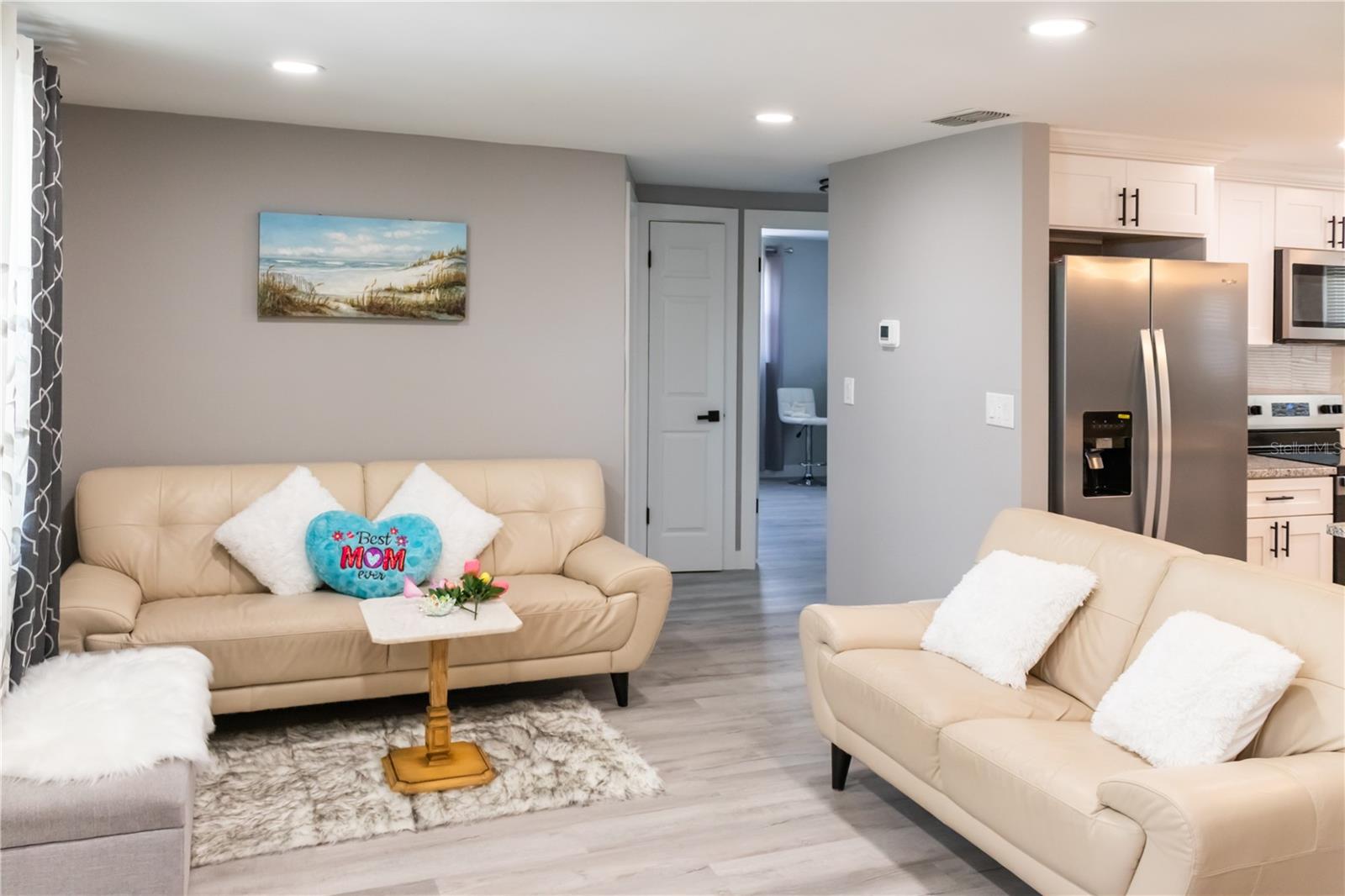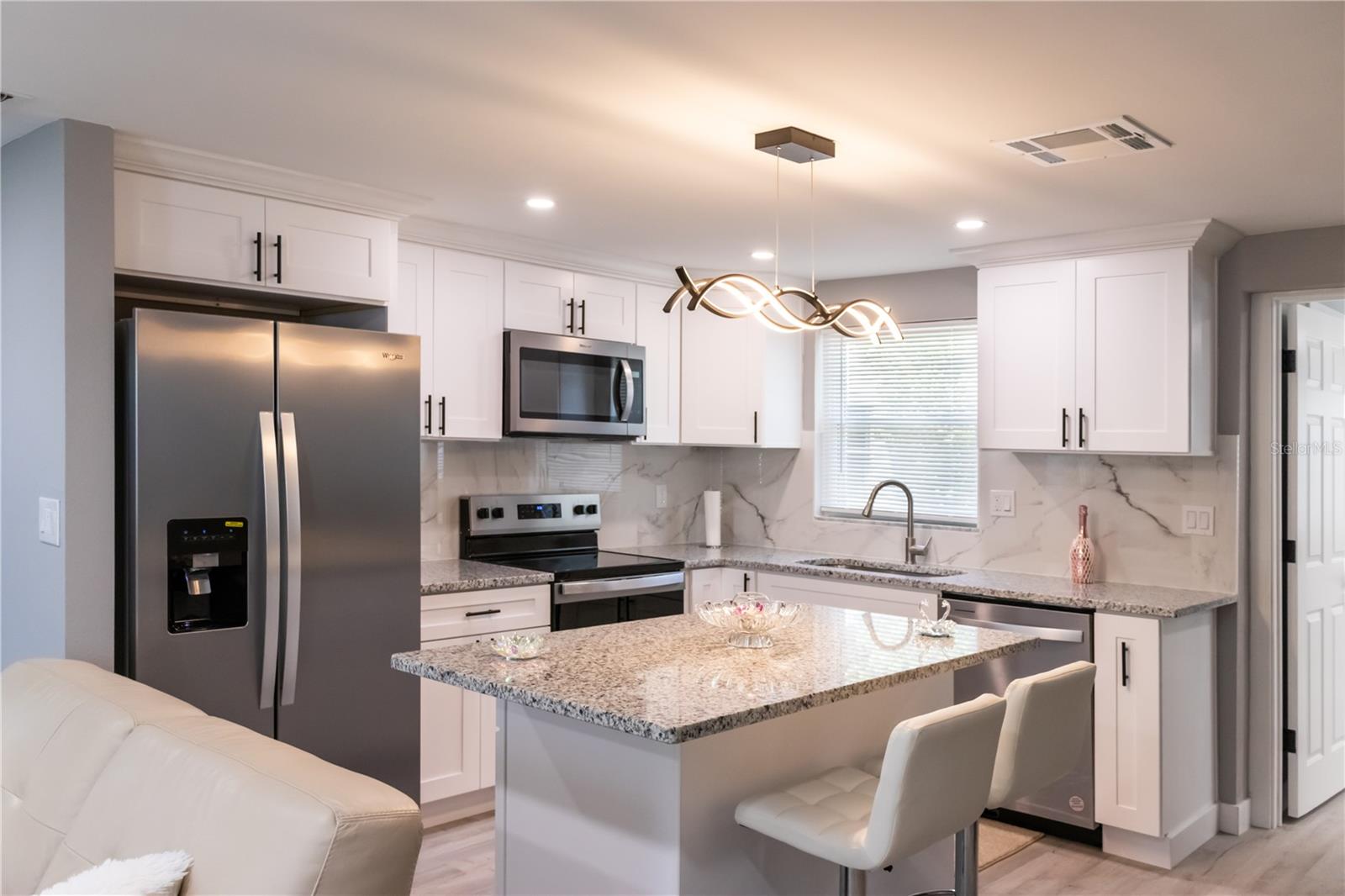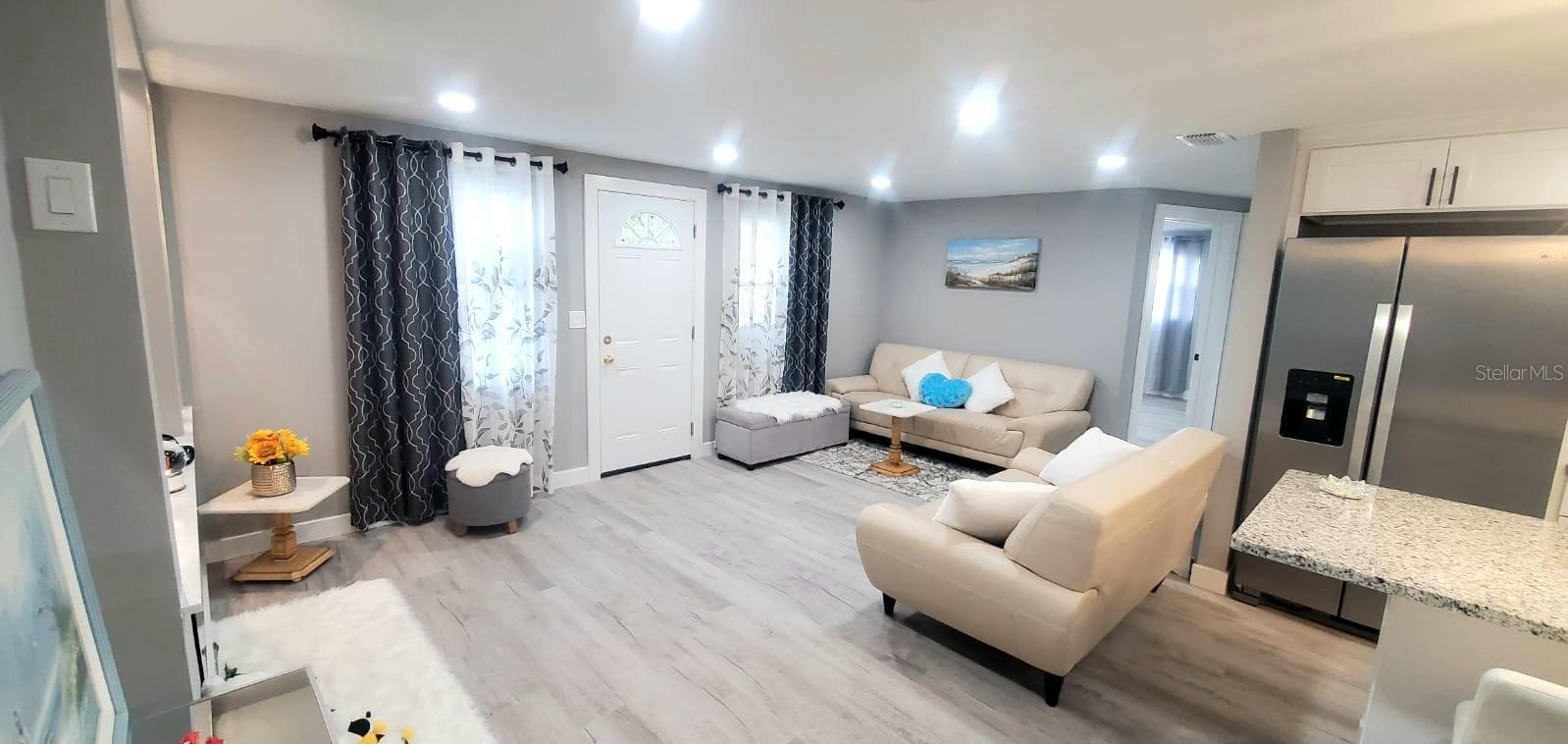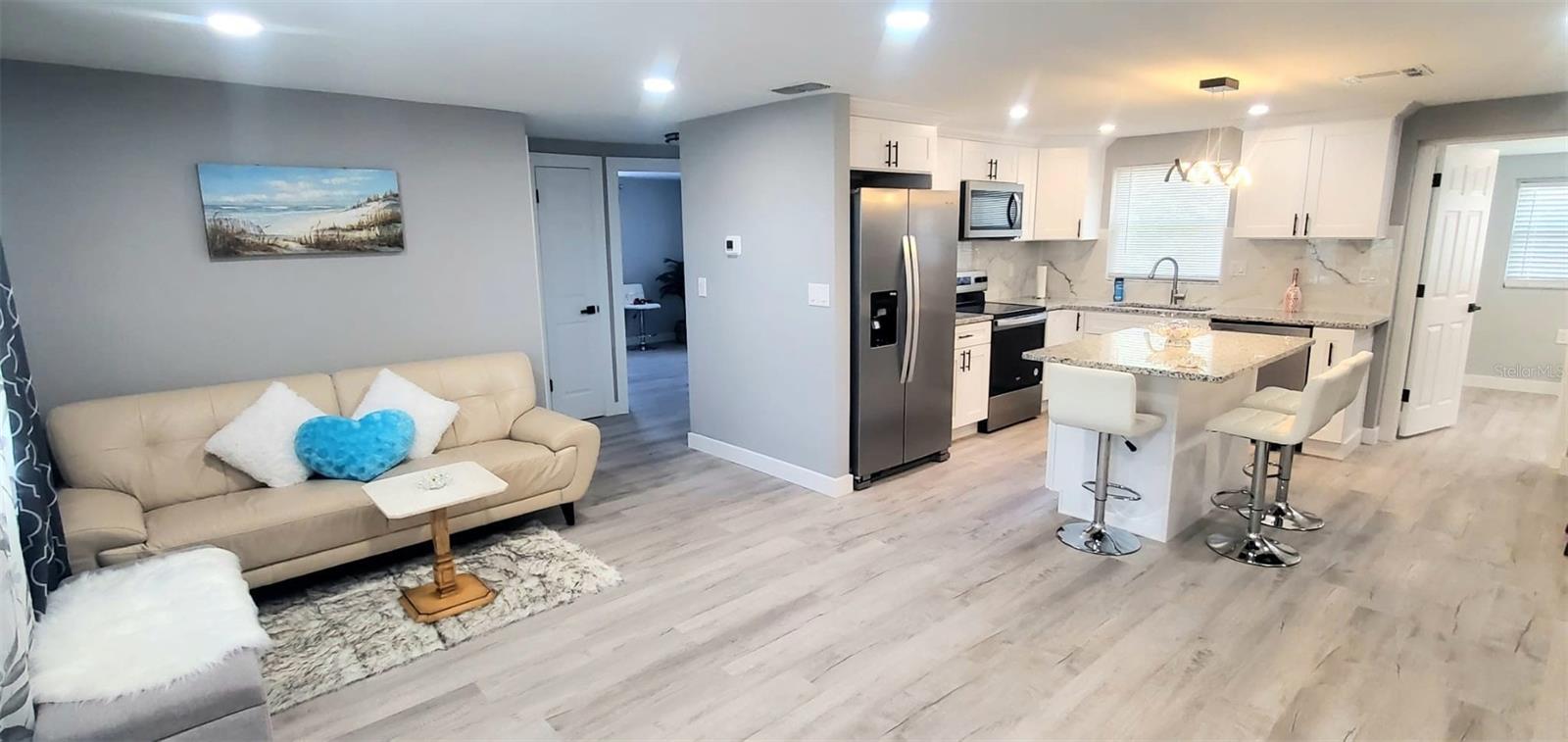 Welcome to your dream home ! This newly remodeled 3- bedroom, 2 bathroom ,block home is centrally located right off highway US-19 , and just 15 minutes from the closest beach. Enjoy peace of mind with a new roof , electrical panel and water heater all installed in 2024 plus recently maintained HVAC system . The septic tank has been professionally cleaned and report can be provided . All windows come with storm shutters and pre-installed shutter spikes. The NEW Kitchen is the central focus of the home ,with crown molding large tiled backsplash, granite countertop recessed light , soft-close cabinets and brand new Whirlpool appliances under warranty. The open floor plan offers an open dining /living combo with a decorative fireplace entertainment wall. Primary bedroom suite is split from the other two bedrooms , making it ideal for privacy. All new flooring throughout the home . This home is move-in ready . Several financing options acceted .