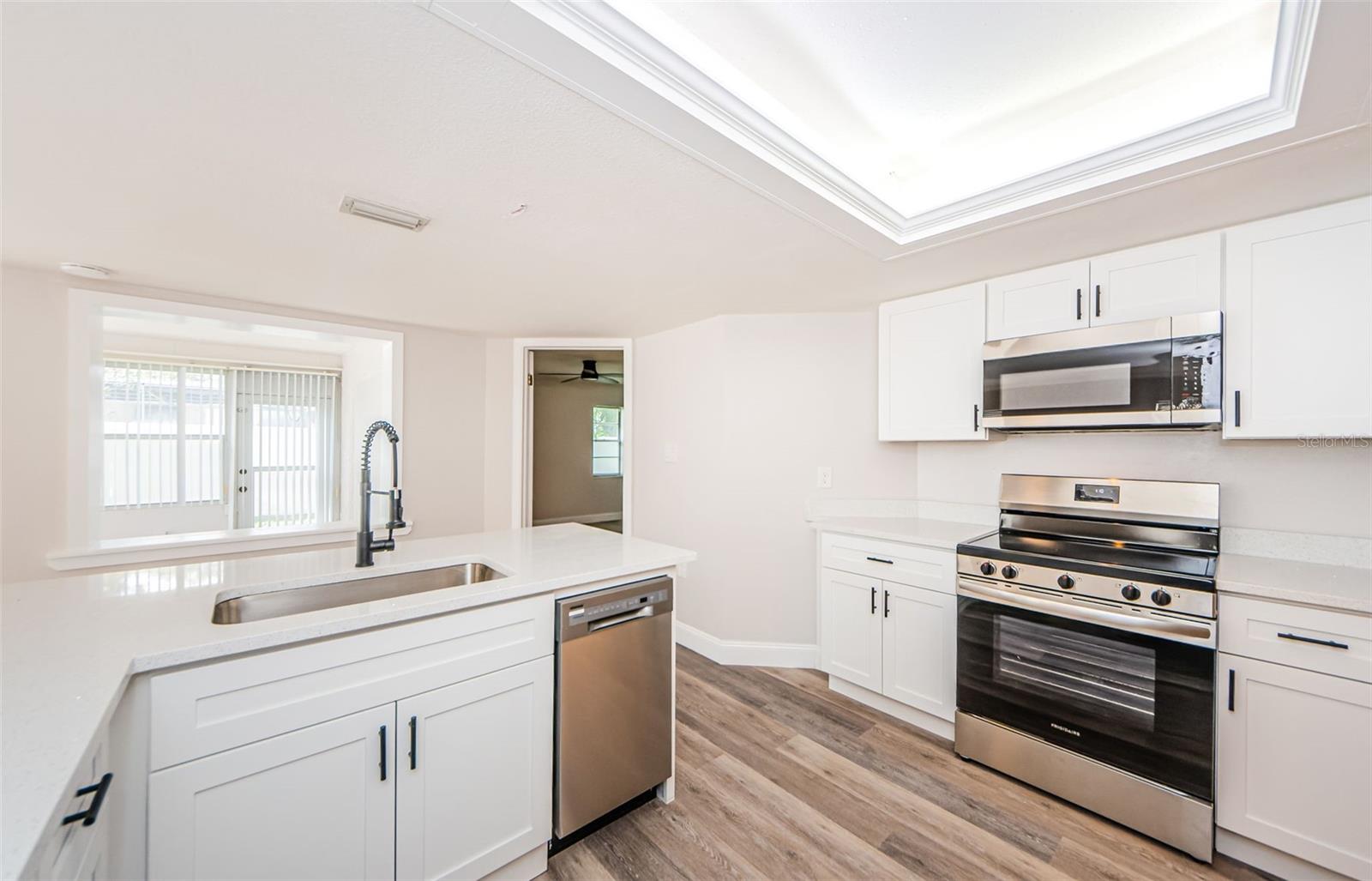 Beautifully updated 2-bedroom, 2-bathroom villa featuring a modern split floorplan. The home boasts brand-new vinyl flooring throughout, new light fixtures, a stunning kitchen with stainless steel appliances, solid-surface countertops, and soft-close wood cabinets. Both bathrooms have been fully renovated, including a double vanity in the primary bath, upgraded solid-surface counters, new cabinets, and modern lighting. The spacious primary bedroom offers a walk-in closet for added convenience. The oversized sunroom provides direct access to a large backyard, perfect for relaxation and outdoor enjoyment. The expansive living room completes this move-in-ready home, perfect for comfortable living and hosting guests. Beautiful clubhouse with heated pool. Maintenance fee includes cable. Internet, water, trash, lawn maintenance, grounds care, pool, clubhouse, building exterior, roof insurance on the buildings and common elements. Allowed 2 pets up to 20 lbs each. Spacious kitchen with pantry, vaulted ceiling, everything has been updated. Close by is Tarpon Springs for shopping, great restaurants, pubs and breweries or First Friday events. Enjoy world famous Sponge docks, with multiple Greek food restaurants, distilleries, plenty of shopping, quaint boutiques, bakery, visit the aquarium, or attend festivals and events throughout the year along the Sponge docks. Or you could take a bike ride to the beautiful nearby Sunset beach, Fred Howard Park beach or take the Pinellas trail to downtown Palm Harbor, Crystal beach pier, Dunedin causeway, Honeymoon Island and Clearwater beach. Close to hospitals, centrally located to all amenities with easy access to St Petersburg and Tampa international airport.