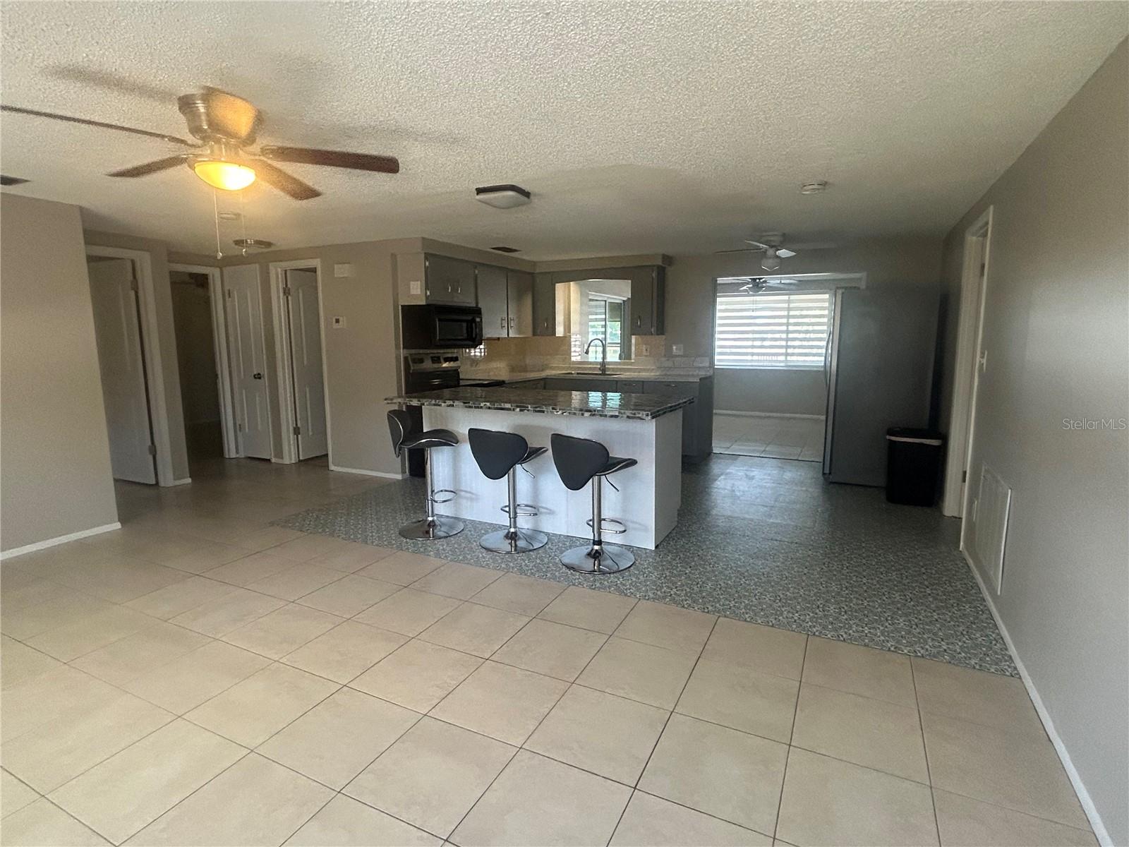 Discover your own private paradise amidst the serene beauty and stunning vistas of Lake Conley! This charming 3-bedroom, 2-bathroom home features a split floor plan and offers a generous 1,200 sq ft of comfortable living space. Enjoy breathtaking sunsets and observe local wildlife right from your backyard while fishing or exploring by boat or kayak. As you enter, you’ll be welcomed by a warm atmosphere enhanced by the elegant tile flooring that flows seamlessly throughout. The inviting family room, highlighted by a brick accent wall, adds a unique character to the space. Sliding doors lead to a screened patio that opens up to a spacious backyard, which includes a handy storage shed. The heart of this home is its beautifully updated kitchen, complete with stainless steel appliances and a large center island—ideal for meal prep or casual dining. Step outside to the covered patio, where you can take in the peaceful views of the water. Don’t miss your chance to claim this waterfront retreat as your own! Ideally situated near shopping, restaurants, and more, schedule a viewing today to see this waterfront gem before it’s gone. It’s a must-see to fully appreciate its charm!