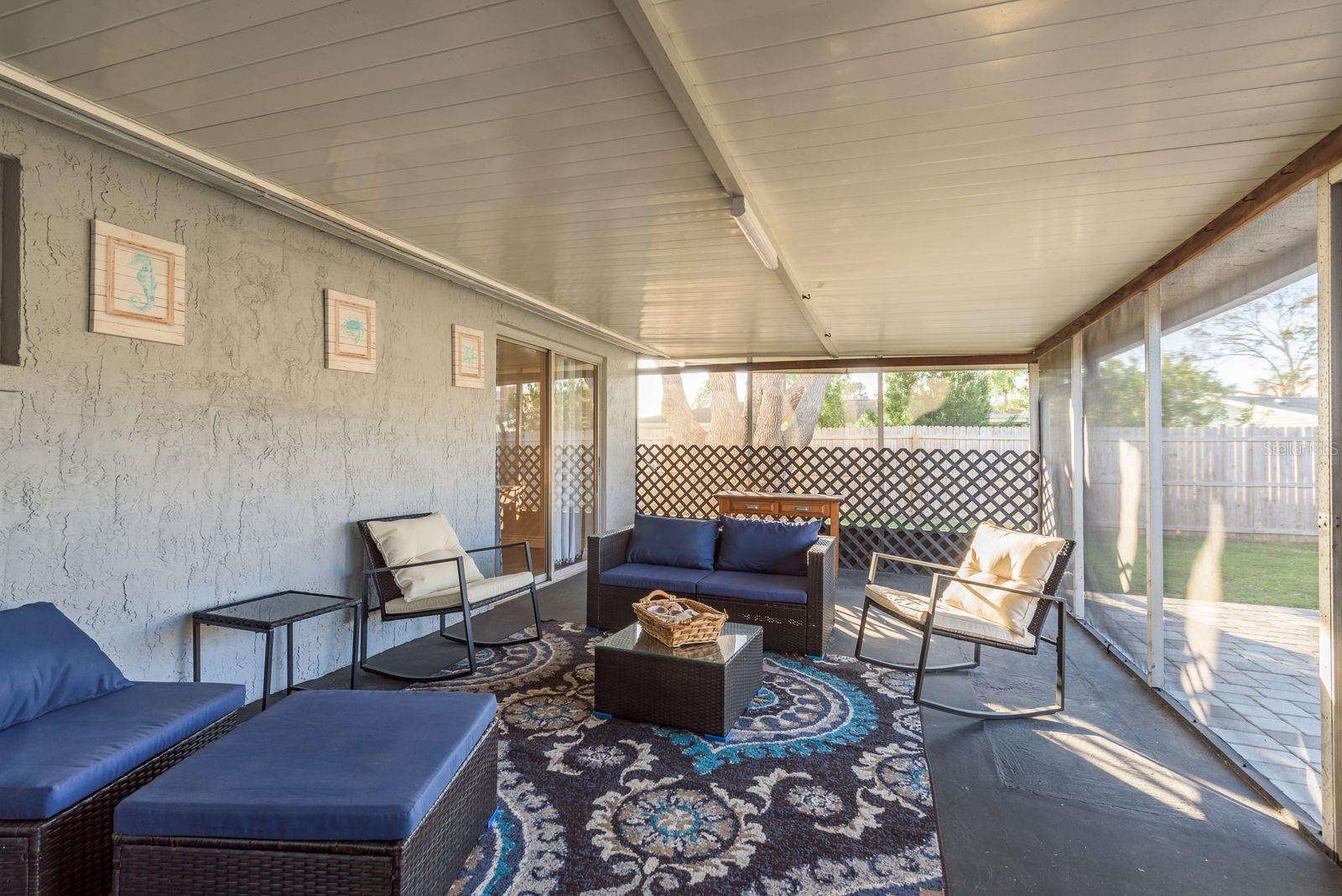 The spacious layout also provides an office/den or make it a 3rd bedroom to suit your needs. Nestled on a cul-de-sac, this charming move-in-ready single-family home offers the perfect blend of comfort and convenience. Seller informs, NO known flooding from storms including 2024's Helene and Milton. Featuring 2 bedrooms and 2 bathrooms, this home boasts thoughtful updates, including a roof replaced in 2019 and new HVAC system in 2023. The standout feature is the expansive screened lanai with a pavered outdoor patio, ideal for relaxing or entertaining while overlooking the large, fenced backyard adorned with beautiful, mature trees. Located within walking distance to restaurants and grocery stores, this home combines a serene setting with unbeatable accessibility. Don’t miss the opportunity to make this gem your own!