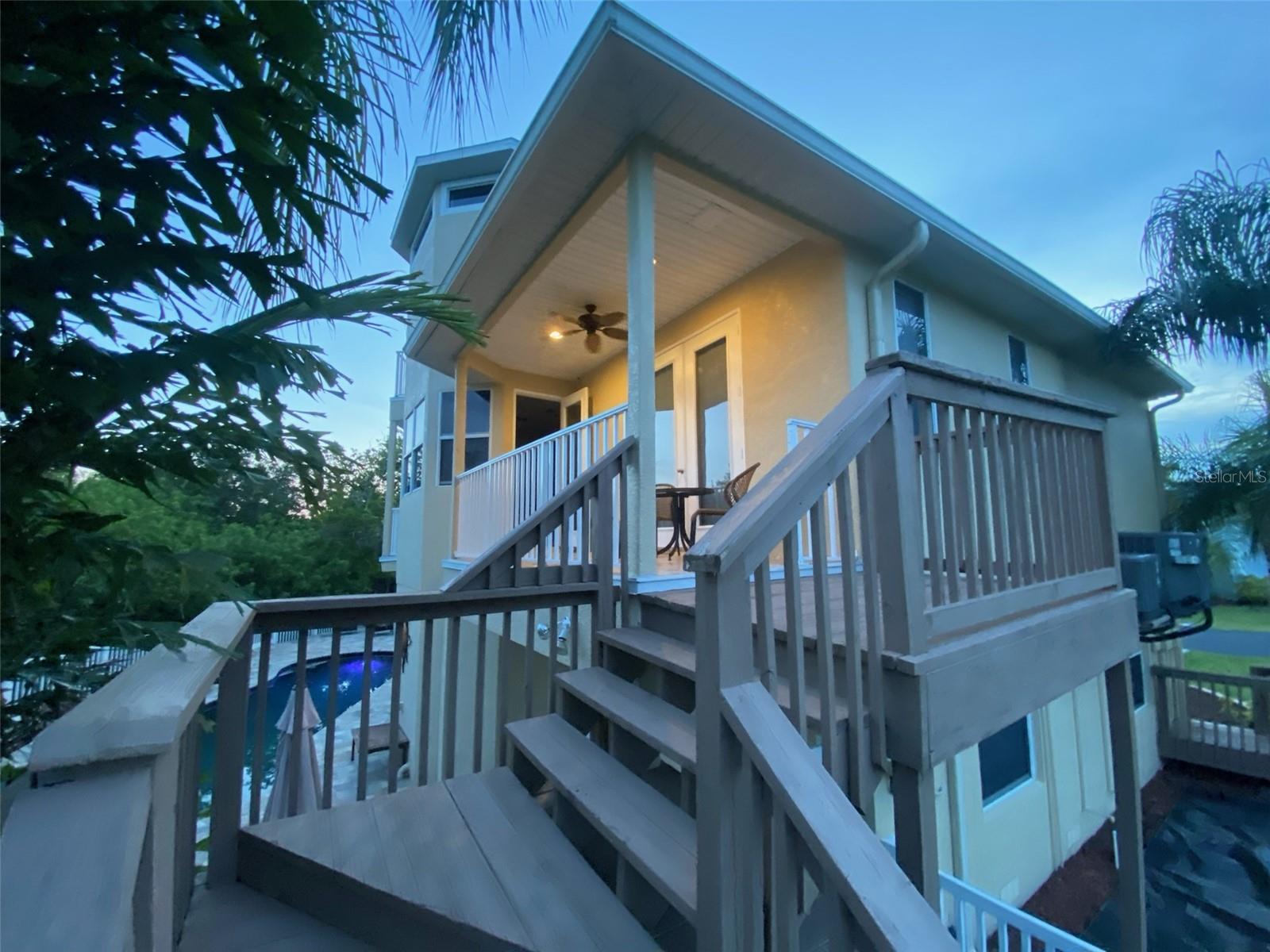 Executive Style Custom-Built home in Private Gated Community will impress all of your friends and associates! Massive curb appeal! Gorgeous stamped concrete driveways, three story home with 4 travertine balconies and oversized 3 car garage with workshop and full bath. This offers a perfect blend of modern elegance and timeless appeal. and meticulously maintained, this home is ready to welcome its new owners with warmth and sophistication. Step into a spacious haven featuring high ceilings, 8-foot custom doors, crown molding, rich tones of large plank wood flooring complement the travertine tile in the kitchen and bathrooms, ensuring beauty and practicality throughout the home. With no carpet in sight, this home offers a clean, fresh feel which is easy to maintain along with a central vacuum system in the home. Wonderful views of the Gulf of America aka Gulf of Mexico from the 3rd level. Master bedroom is 32 x 16 with an amazing master bath with large shower, jacuzzi tub, separate toilet and large double vanity. Practicality meets peace of mind with recent upgrades, including a new two zone AC system, new kitchen appliances, new roof installed in 2022, massive paver patio around a large in-ground pool. The ground level features an oversized 5-car garage, a workshop and private full bathroom. Located just minutes from Anclote Gulf Park, Anclote Boat Ramp and the Coastal Anclote bike trail, the location is perfect to enjoy Florida outdoor land and water activities. Local shopping, dining, and renowned attractions in Tarpon Springs are a short drive away. Only qualified or cash buyers and 24-hour notice required for showing. From its move-in-ready condition and furniture is available for additional fee.