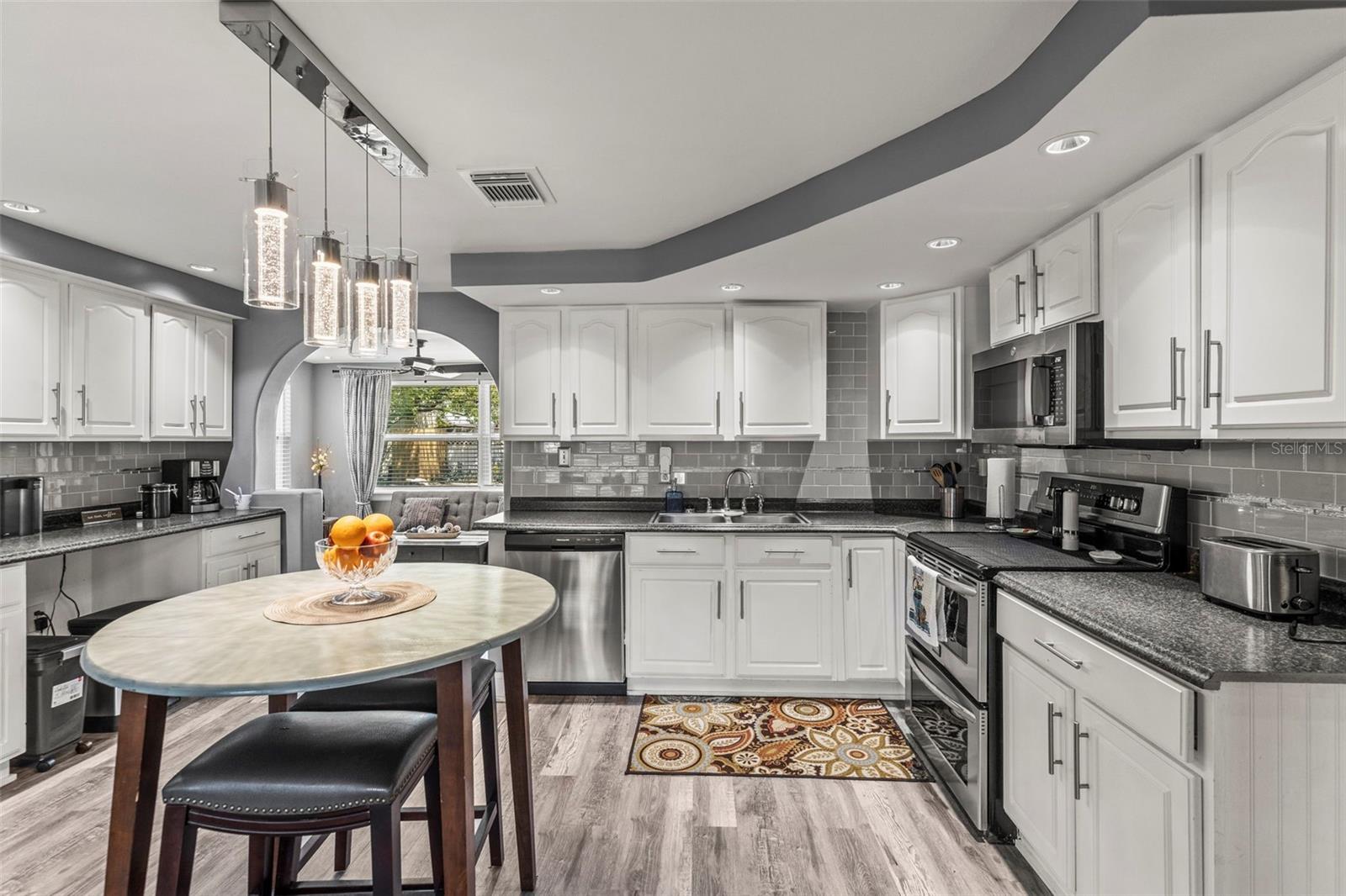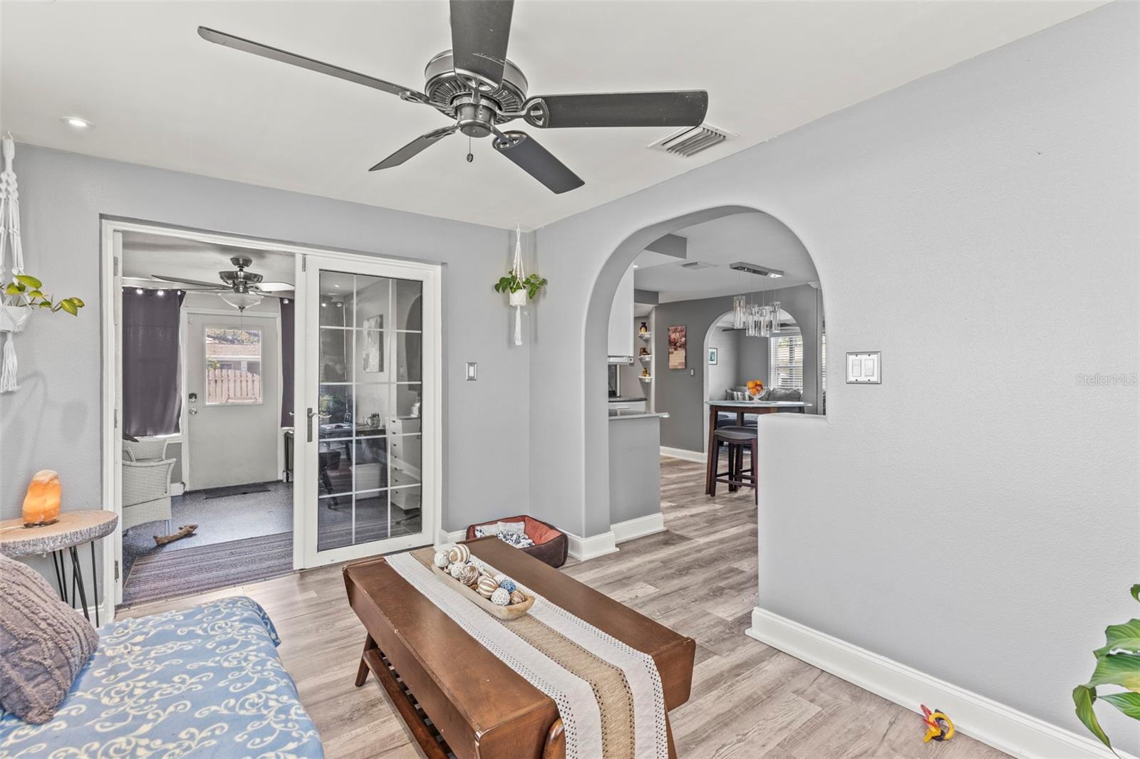 $10,000 PRICE REDUCTION. MOTIVATED SELLER! This recently renovated home has many features for a house in this price range. Primary bedroom can easily accommodate a king size bed with plenty of room to spare and has two separate closets. The main living space is bright and open with a kitchen that offers plenty of prep space and ample cabinets for storage and a coffee bar. The home also has an additional family room and Florida room that is currently used as an office. Garage used to have a second bathroom and it can be easily added back. Windows were replaced in 2023, A/C and tankless water heater in 2024. This home sits on a 0.16 corner lot and you could easily put in a gate to access the back to store a boat, jet ski or other toys you might have. Ample space for dogs to run and family barbecues. No HOA, CDD or flood insurance required. The location offers plenty of opportunity for entertainment, Sponge Docks and downtown Tarpon Spring are less than a 10 minute drive. You are closed to many restaurants, grocery stores and medical facilities. Spend a day at the Beach at Fred Howard Park or sip a drink and enjoy life music nearby.