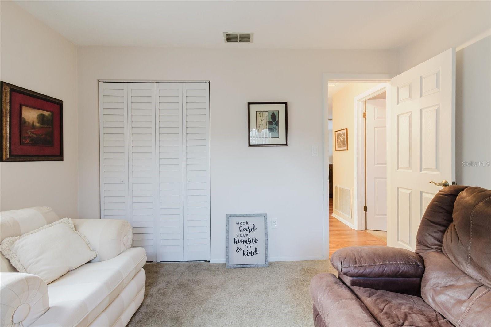 Welcome to your new home in sunny Holiday, Florida! This charming 3-bedroom, 2-bathroom residence is move-in ready and full of character. From the moment you arrive, you'll be impressed by the eye-catching stone exterior, abundant windows, and a spacious yard that offers great curb appeal. Step inside to find warm, wood-look laminate flooring that flows seamlessly throughout the main living areas. The bright and airy living room is filled with natural light, creating a welcoming space to relax or entertain. The dining area is ideally situated between the living room and kitchen—perfect for everyday meals or hosting guests. The kitchen features classic wood cabinetry and a sleek stainless steel refrigerator, with easy access to the outdoor patio through sliding glass doors—ideal for enjoying Florida’s sunshine and hosting BBQs or outdoor gatherings. The primary suite offers a generous walk-in closet and an en-suite bath with a cheerful tropical vibe. Two additional bedrooms provide plenty of space for family, guests, or a home office. The garage, complete with carpet, is a versatile bonus space—ready to become your playroom, gym, or creative studio. It also houses the washer and dryer for added convenience. The backyard is fully fenced and ready for your personal touch—garden, playground, or even a future pool! Don’t miss this opportunity to own a beautiful home in a great location. Schedule your showing today and make this Holiday haven yours!