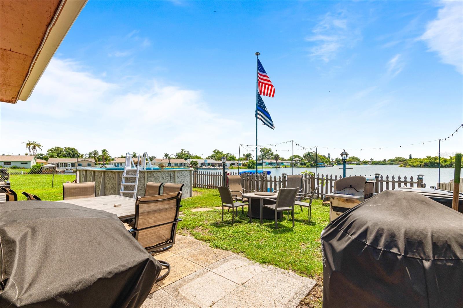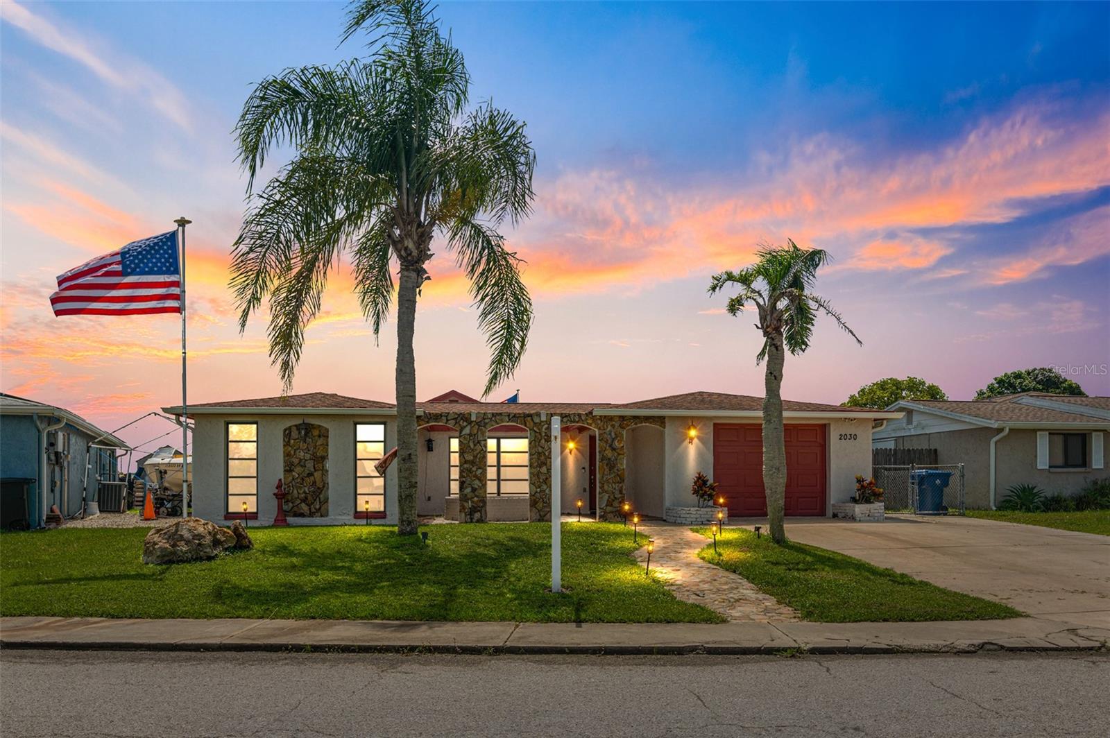Lakefront Living at Its Finest Spacious & Updated Home on Lake Conley. Enjoy peaceful waterfront living in this beautifully maintained expansive ten room home featuring 4-bedroom, 2 bath + great room, offering 2, 869 sq ft of upgraded comfort in the desirable community of Holiday Lake Estates. Step inside to discover a bright and open layout featuring tile flooring throughout (2021), vaulted ceilings, and an oversized wood-burning fireplace perfect for cozy nights. The fully renovated large chefs kitchen boasts real wood cabinetry, endless granite countertops, an oversized granite island with 2 touchless faucets and garbage disposals, 2 full-size refrigerators, wine fridge, all appliances replaced between 2022-2023 an entertainers dream. Enjoy stunning lake views from the expansive great room, complete with large tinted sliding glass doors, seamless access to outdoor spaces. Major Upgrades & Features Include: Dual A/C units (2.5T & 3T, 2021) with two thermostats Tankless water heater (2021) Interior & exterior paint (2021) Roof with approx. 10 years of life expectancy Water treatment system (2023) + Reverse osmosis by LeafHome. Gutters installed 2023 Above-ground pool (2023) with 10-year warranty, approximately 60x10 concrete seawall with 16x16 wooden Dock with dock box. Fully fenced backyard (2021) with undated solar and electric enchanting lighting An oversized one-car garage offers plenty of room for storage, hobbies, or a workshop. This home with WiFi thermostat, and smart home touches make daily living effortless. Located minutes from Tarpon Springs, the world-famous Sponge Docks, Howard Park Beach, Anclote River Park, and top-rated restaurants, shops, and recreation. Whether you are seeking a full-time residence or a peaceful Florida getaway, this lakefront gem delivers space, serenity, and style truly a rare find.