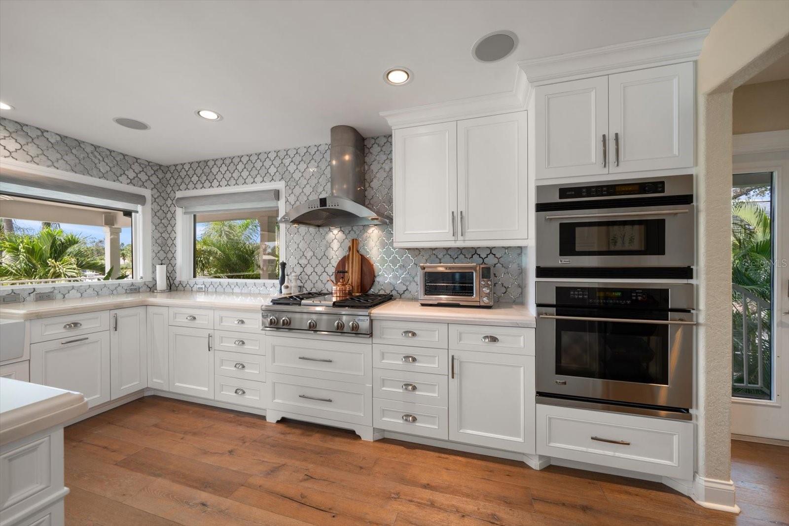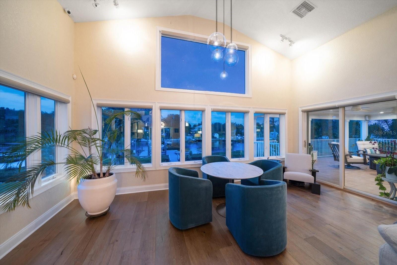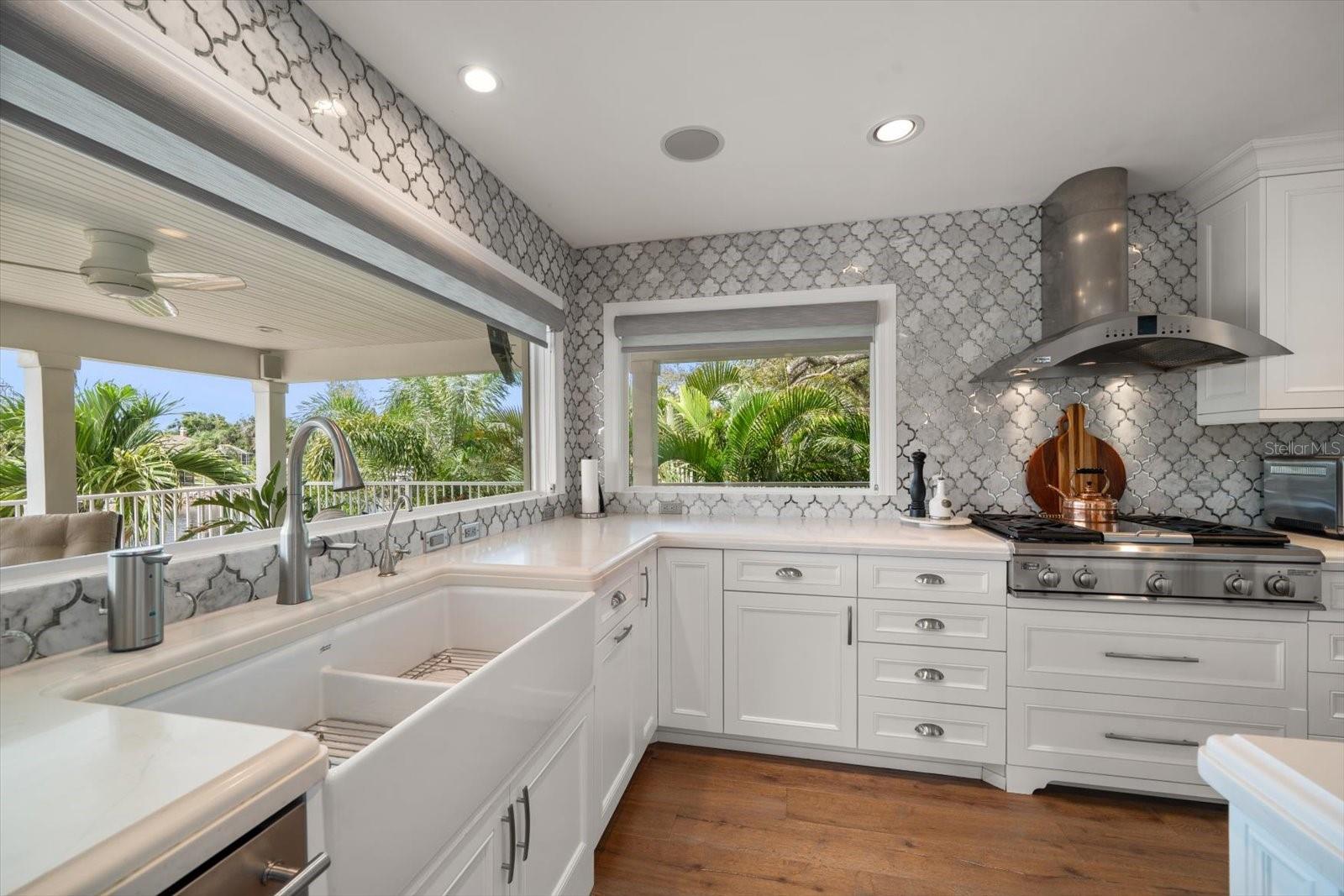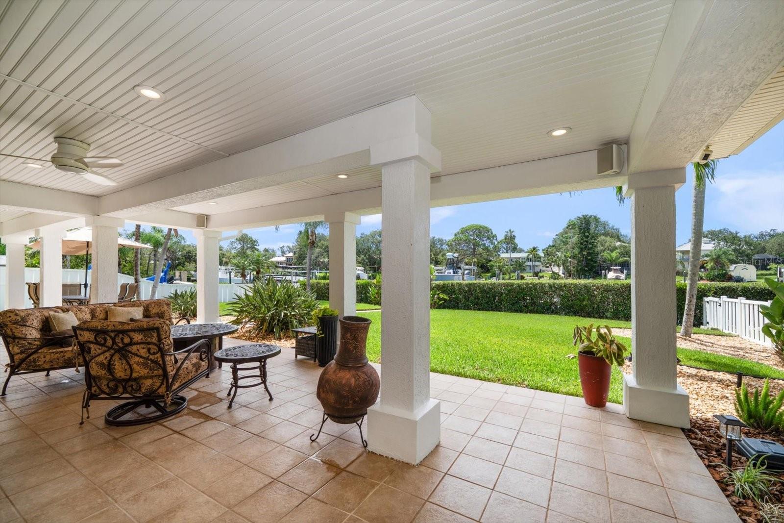 Spectacular waterfront living in the highly sought-after Bailey’s Bluff community! REMODELED in 2020, this stunning 3-bedroom, 2-bath elevated home offers 2,723 square feet of refined coastal living with panoramic water views throughout and 75 feet of deep-water frontage with direct access to the Gulf. This property embraces the ultimate boating lifestyle with a large private composite dock, a 16,000 lb Neptune boat lift, jet ski dock with lift, and quick access to world-class fishing, and open Gulf waters. From the moment you arrive, the elegant paver drive flanked by lighted pillars welcomes you home, with lush manicured landscaping, &stunning curb appeal. Step up to the charming covered front balcony and through double glass doors into the stunning open-concept living space. Soaring 21’ vaulted ceilings with wood beams, a wood-burning fireplace, gorgeous hardwood floors, crown molding, 5 1/2" baseboards, and abundant natural light create a warm and elevated coastal aesthetic. The living areas flow seamlessly, with sliding glass doors opening to a covered balcony overlooking lush landscaping and sparkling waters. The kitchen is a true showpiece, featuring GE Monogram stainless steel appliances, a gas cooktop with stainless hood, quartz countertops, soft-close custom cabinetry, and an impressive 13-foot island with bar seating, pendant lighting, and wine refrigerator, a tile backsplash, and a farm sink positioned under a picture window with endless water views make this a dream for both entertaining and everyday living. A split floor plan provides privacy and functionality. On the main level, two generously sized bedrooms include custom closets, and one features 10-foot vaulted ceilings. They share a beautifully remodeled hall bath with granite countertops, wood cabinetry, and a tile-and-glass step-in shower with bench seating. A spacious laundry room with granite counters and soft-close cabinetry offers additional storage Upstairs, the cozy loft overlooks the main level & opens to a private balcony. The primary suite is a private sanctuary with a glass door leading to an expansive L-shaped wraparound balcony. From here, a spiral staircase leads to an upper observation deck offering breathtaking panoramic water views. The en suite bath is a spa-like retreat with granite counters, dual sinks, a built-in vanity, a jetted soaking tub with ocean views, and a luxurious shower room with body jets. A custom walk-in closet/dressing room, accessed through a pocket door, provides exceptional storage and organization. The ground level features a 3-car garage with space for all your toys, tools, and storage needs. A bonus room at the rear of the garage is perfect for a home gym, office, or family room with French doors leading out to the covered lanai. This home offers expansive outdoor living spaces at every turn. The fully fenced backyard is lush, tropical, and tranquil, with a private walkway leading to the dock and boat lift. The lot offers ample room for a future pool, expanding your outdoor living potential. Located just a short drive to nearby parks, Gulf beaches, and the charming town of Tarpon Springs with its vibrant shops and dining, this home delivers the very best of the Florida lifestyle. This spectacular home blends comfort, craftsmanship, and waterborne adventure into one unforgettable property. An optional Baileys Bluff Civic Assoc. membership is just $100 year, providing to a private beach, boat ramp, & clubhouse.