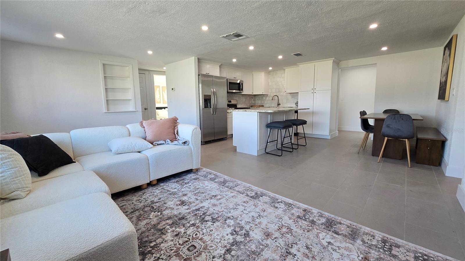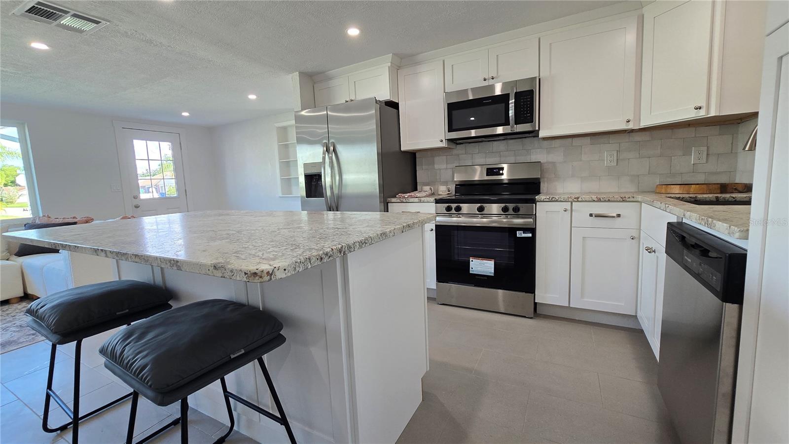 Furnished! Welcome to your fully renovated retreat in Holiday, Florida! This thoughtfully remodeled 3-bedroom, 2-bath home has been completely transformed inside and out, blending modern design with everyday comfort. This is not your basic reno. Step inside to an open, light-filled floor plan featuring brand-new porcelain flooring throughout, fresh paint, and designer touches. The brand-new kitchen boasts granite countertops with a leather finish, shaker cabinets with upgraded plywood construction (not builder-grade laminate, particle board), stainless steel appliances, including a family size refrigerator, an easy to clean granite sink and a central island with counter-height seating that flows seamlessly into the living and dining areas — perfect for entertaining family and friends. Both bathrooms have been fully remodeled, including the clever expansion of the former half bath into a full second bath, giving the home a desirable split-bedroom layout. The master has a new second closet because there is never enough storage. A versatile flex space has been enclosed and upgraded with a full closet, creating a true third bedroom that’s ideal for guests, family, or a home office. Every detail has been considered — premium-grade finishes, lighting, hardware, and a neutral palette that makes the home feel fresh and inviting. Outside, the screened in porch and fenced backyard provides plenty of room for relaxing, barbecuing, or adding a pool. There is also a shed for additional storage. The property’s location makes it a short drive to parks, the Gulf beaches, marinas, shopping, restaurants, and the vibrant towns of Clearwater and Tarpon Springs. The house is being sold with furniture (Sectional, dining table, night stands, rugs, all you see - except mattresses) TV, patio furniture and grill, washer and dryer, all so you can move-in and start enjoying your new home. Whether you’re a first-time buyer, downsizer, or investor seeking a ready-to-go rental, this home is an incredible opportunity to own a stylishly renovated property in a convenient location at a value you won’t want to miss — schedule your private showing today!