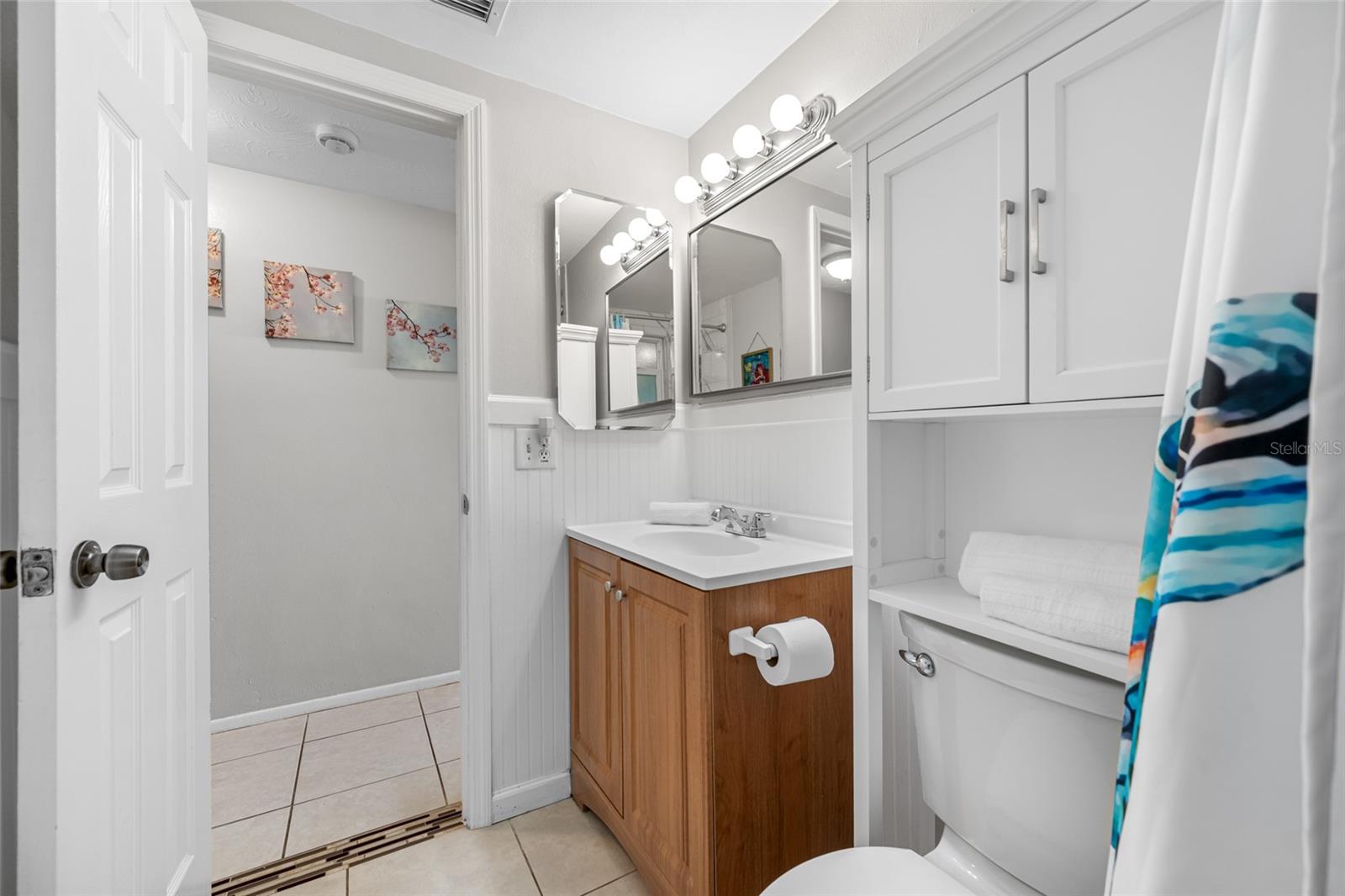 Stunning and thoughtfully updated 3-bedroom, 2-bathroom home with exceptional curb appeal. Fresh exterior paint, lush professional landscaping, and a charming covered front porch create an inviting first impression. Situated on high, dry ground and outside of the flood zone, this home offers peace of mind as well as style. Abundant natural light fills the open living and dining area through expansive windows, highlighting the beautiful neutral tile flooring that flows throughout the home. The tastefully updated kitchen features wood cabinetry, newer stainless steel appliances, and a functional layout ideal for everyday living. The private primary suite is located at the rear of the home and includes its own en-suite bathroom. A generously sized second bedroom easily accommodates a bed plus space for an office, play area, or reading nook. Off the kitchen, a versatile bonus area offers the perfect spot for a breakfast nook or additional workspace. The third bedroom is thoughtfully split from the others, providing comfort and flexibility for guests or family. Step outside to an exceptional backyard designed for relaxation and entertaining. Enjoy both a screened-in porch and an open patio, along with a spacious yard ideal for gatherings, gardening, or play. Additional upgrades include a brand-new roof and updated electrical, offering durability and move-in confidence. Located just minutes from top-rated Gulf beaches, popular shopping, dining, and more! This home offers the perfect blend of comfort, convenience, and coastal living.