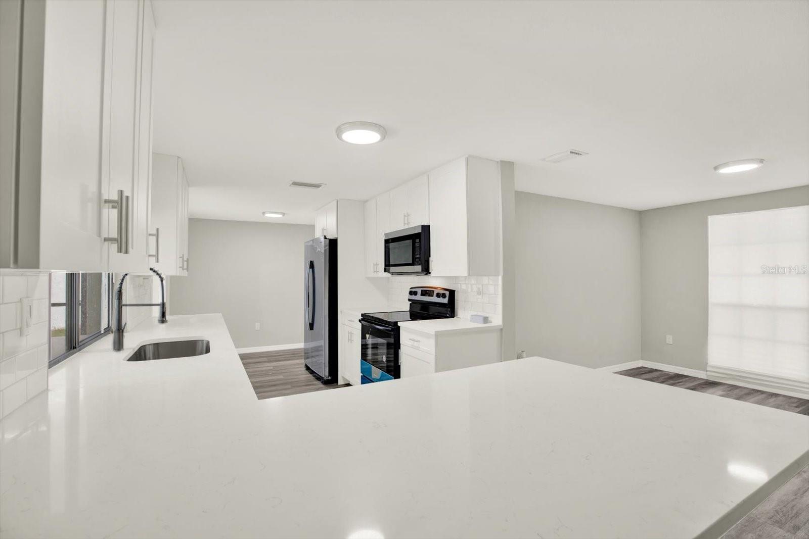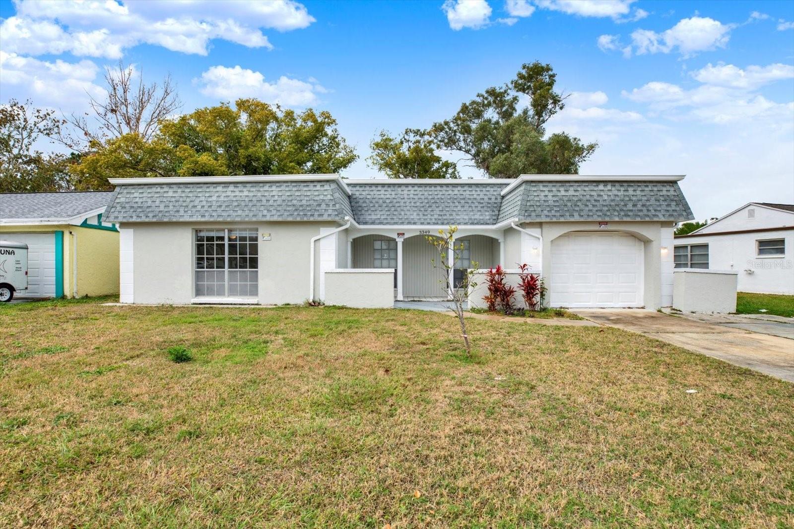 Tropical Pool & Pond Paradise Home featuring a sparkling swimming pool, 3 bedrooms, 2 bathrooms and a large overed lanai and screen enclosed pool deck! New roof, new kitchen, new A/C, new appliances, quartz countertops, new waterproof vinyl, new electrical panel, new pool pump and new cartridge filter! All new interior paint and fixtures. Beautiful curb appeal with a spacious driveway and covered front porch. 22 Ft long garage with side entrance door. Private backyard with pond access and beautiful wildlife views. Perfectly located near great shopping, restaurants, parks and beaches! Enjoy the fun in the sun that a tropical paradise pool home offers!