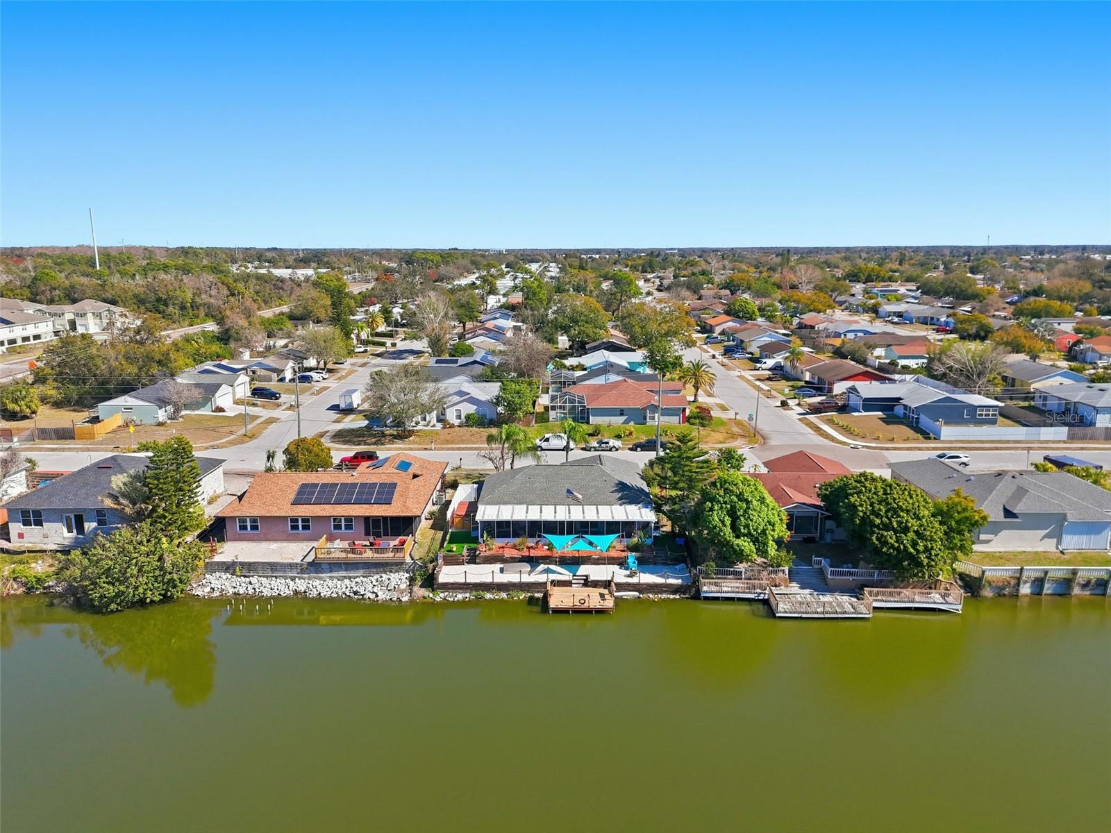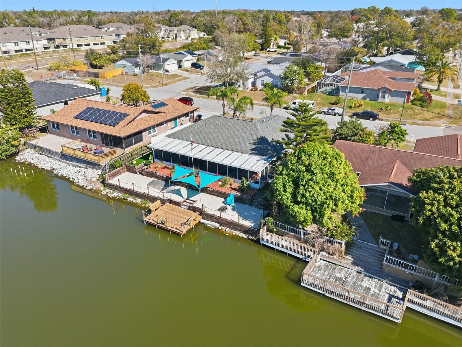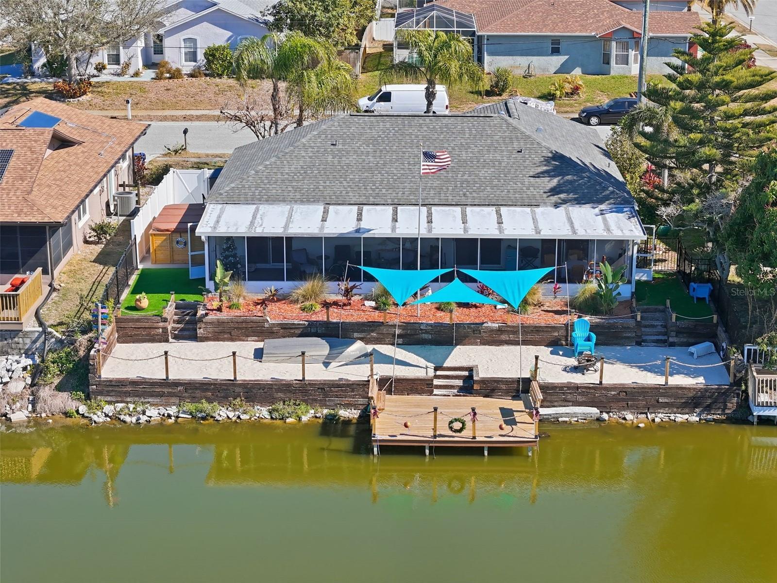 Waterfront living at its finest! Welcome to your private lakefront retreat on Lake Conley. This beautifully updated 3-bedroom, 2-bath residence offers 1,301 square feet of interior living space and an impressive 2,271 square feet of total living area, highlighted by a massive screened lanai with sweeping panoramic water views. The upgraded kitchen is designed for both style and functionality, featuring modern finishes, ample cabinetry, and generous counter space that flows seamlessly into the main living areas, making it ideal for entertaining or everyday living. All three bedrooms are generously sized, including a spacious primary suite with an en-suite bathroom and tranquil water views that greet you each morning. Step outside to your private outdoor oasis and enjoy 70 feet of pristine lake frontage complete with a custom 10x15 composite dock, a rare private sandy beach, and a swim spa, creating the perfect setting for relaxation and resort-style living at home. Ideally located just minutes from US Highway 19 with easy access to shopping, dining, medical facilities, and entertainment, this high-and-dry property offers peace of mind with no HOA, no flooding issues, and no prior home insurance claims. Recent improvements include a 2021 roof, 2016 HVAC system, and a 2020 water heater. Schedule your private tour today to experience elevated Florida waterfront living.