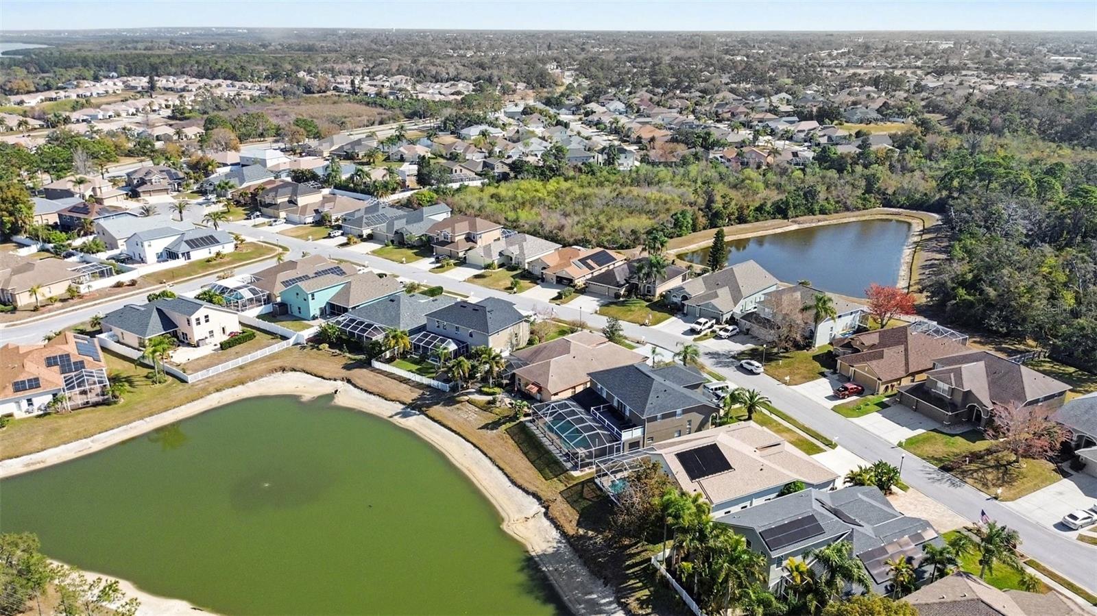 Immaculate and modern home in the pristine Key Vista Subdivision, a gated community. This home features 4 bedrooms, 3 full bathrooms, and an upstairs bonus 5th bedroom. The main living areas has Travertine (stone) flooring, Kitchen has granite counters with 42" Wood Cabinets, new stainless-steel appliances, new glass sliding doors that leads out to the saltwater pool overlooking the lake! Pool is solar heated! Plus there's a 3-car garage! The roof is 4 years old, and the HVAC 2017. The low monthly HOA includes free cable and internet, along with full access to the community's resort-style amenities Clubhouse with fitness center, Heated Olympic-size pool and spa, Tennis and volleyball courts, Playground, Boat and RV storage. Surrounded by natural beauty, Key Vista is ideal for outdoor enthusiasts. Explore the scenic Coastal Anclote Trail, just off Baillies Bluff Road, or Key Vista Nature Park, Anclote Gulf Park, or Anclote River Park all offering beach areas, picnic spots, and access to swimming, fishing, and scalloping. Just minutes away, the famous Tarpon Springs Sponge Docks offers you top dining, Greek bakeries, boutique shopping, and charming coffee shops. Nearby marinas and public boat ramps, including Port Tarpon Marina provide boat storage and rental options.
