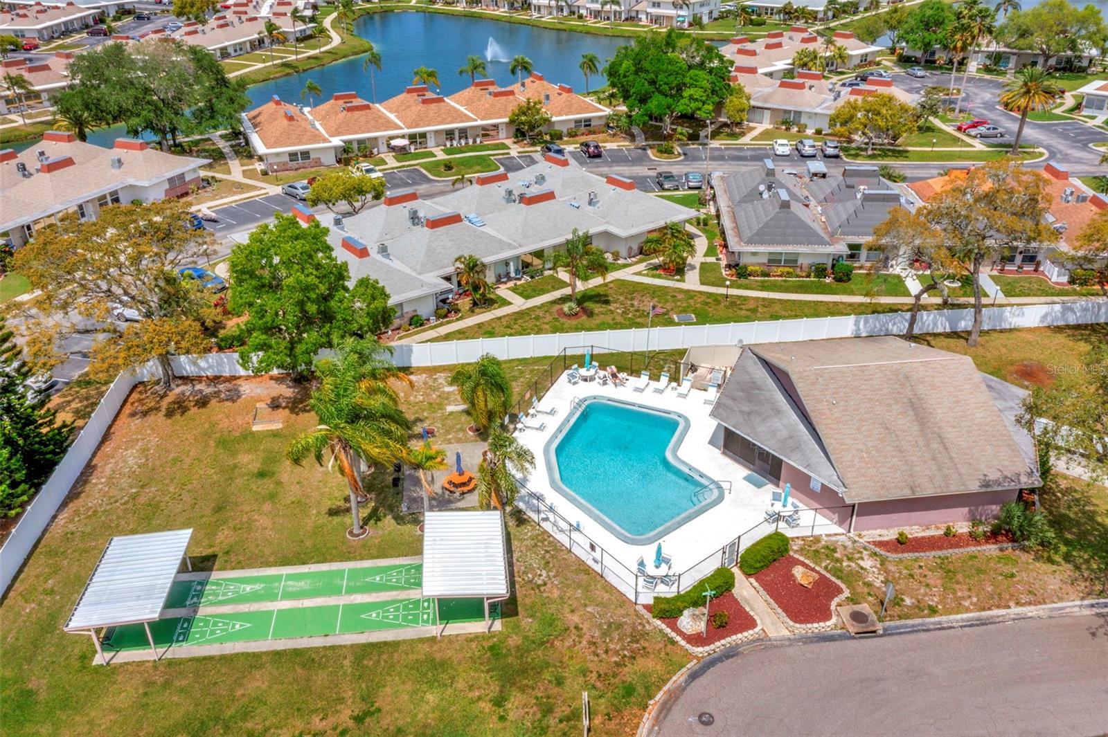 BACK ON THE MARKET! JUST REDUCED! This is your chance to make this villa your own! Experience the ultimate Florida lifestyle in this meticulously maintained END UNIT villa! Entertain effortlessly in the spacious Florida Room, perfect for gatherings. Step out to the expansive fenced backyard, providing unparalleled privacy for you and your four-legged companion, a rare find in villa communities. Settle into tranquility on the generous 0.11-acre lot nestled in this peaceful neighborhood. Inside, bask in the natural light flooding through the cathedral ceiling adorned with skylights in the living room. Retreat to the sizable primary bedroom featuring an ensuite with a luxurious rain showerhead and hand wand. Both bedrooms offer ample storage with walk-in closets. This villa is fully equipped with modern amenities to enhance your lifestyle, including a Nest thermostat, Ring Doorbell, Ring Floodlight Camera, programmable front door lock, and a smart switch for the Living Room ceiling fan. Step outside and explore a plethora of community amenities, including a refreshing pool, clubhouse, serene pond, shuffleboard courts, horseshoe pits, and a delightful grilling area. SELLERS ARE MOTIVATED!! Don't miss out, schedule your showing today! New roof to be installed prior to any closing!!!