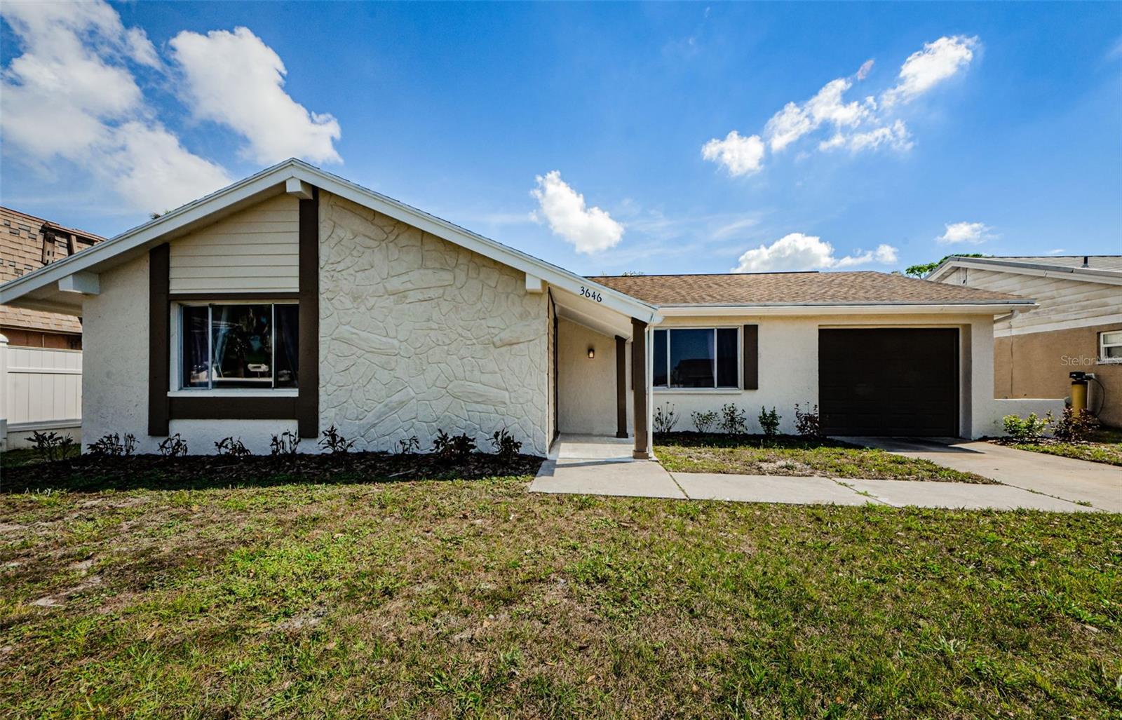 This home needs nothing. Brand new roof installed 7/2023, A/C is new as of November 2022, wiring and electrical panel are BRAND NEW as of 7/2023! Check out this fully renovated 2 bedroom/2 bathroom/1 car garage home in the quiet Beacon Woods community. The space also has a sunroom off the back of the kitchen and a screened in porch that opens up to a spacious backyard. This home has a gorgeous open concept layout with endless opportunities to style the home to your liking. Interior surfaces have all been renovated with ceramic tile (wood-like appearance) throughout which makes it easy to clean and entertain! Bathrooms in the home have been transformed with new tile and fixtures. The kitchen has matching appliances plus range hood and butcher block countertops. No HOA or CDD on a very low traffic street. Do not hesitate, schedule your private tour today!